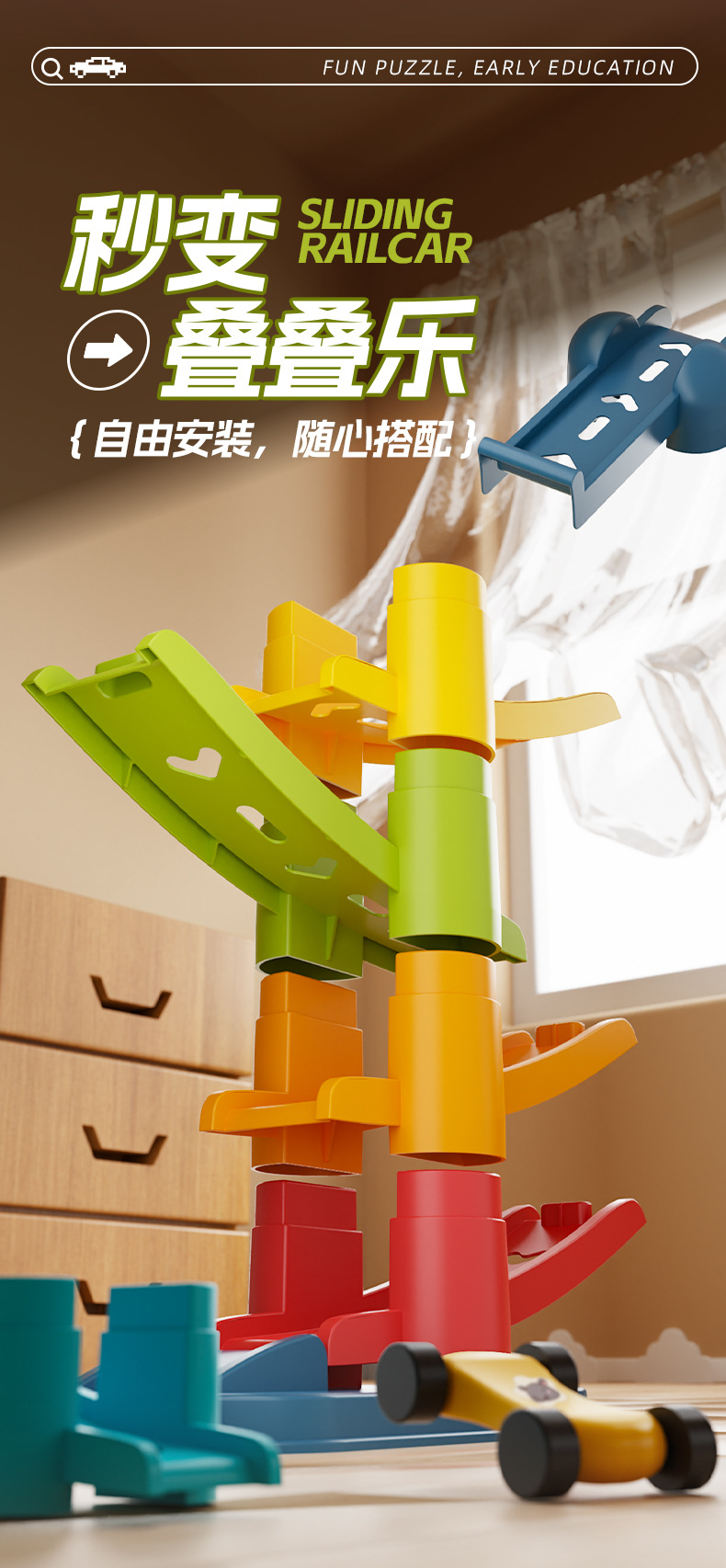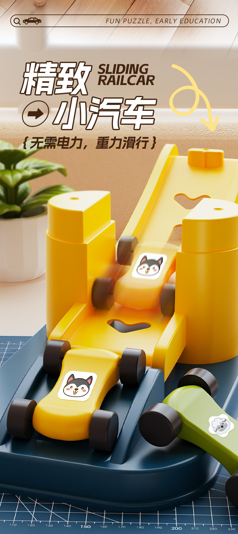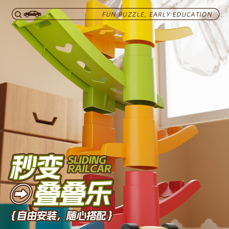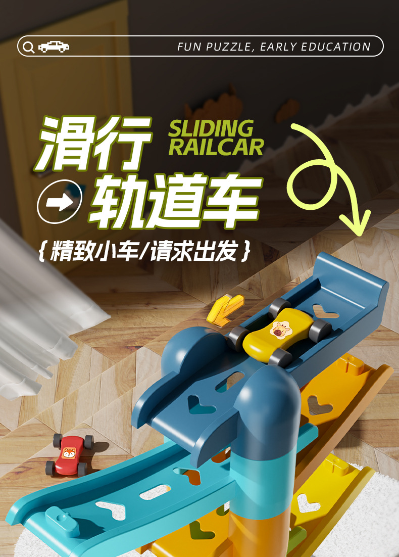 跨境儿童滑翔滑行轨道车小汽车益智玩具男孩女孩停车场套装玩具