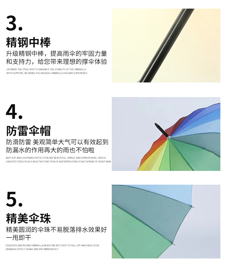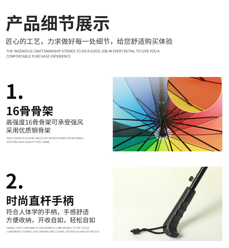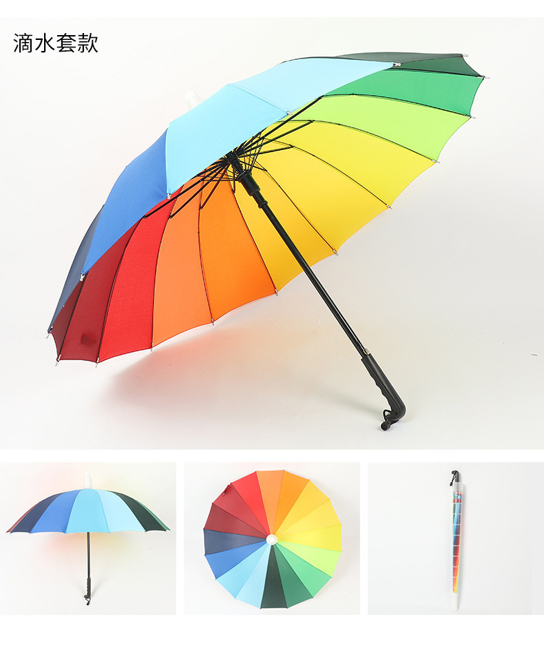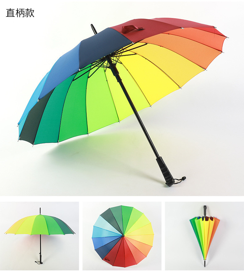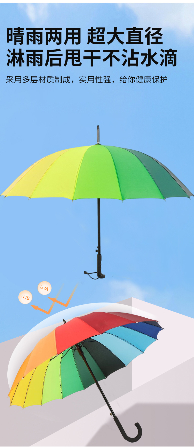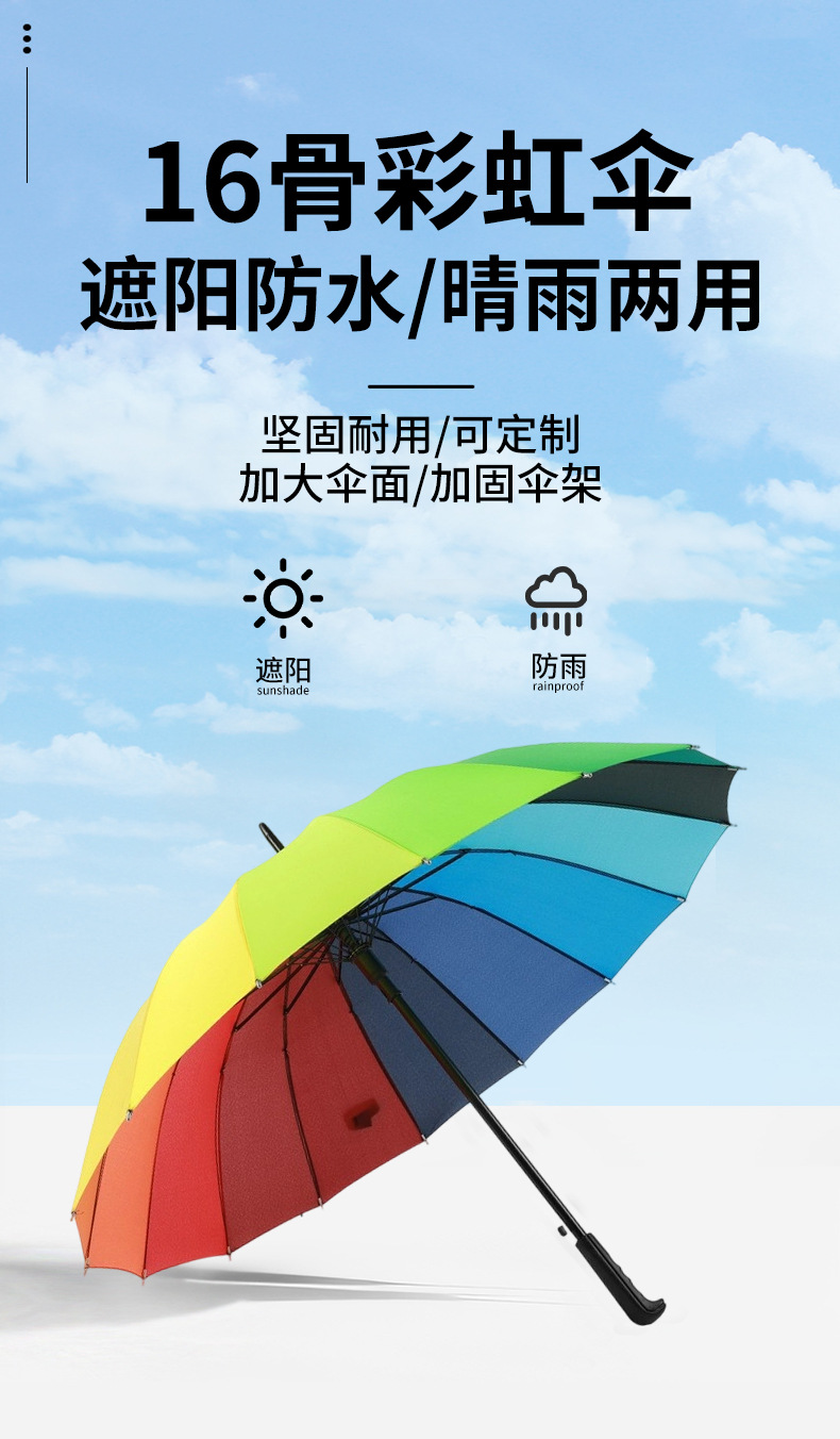 新款16骨直杆彩虹太阳伞防水套长柄车载印字广告logo商务雨伞批发