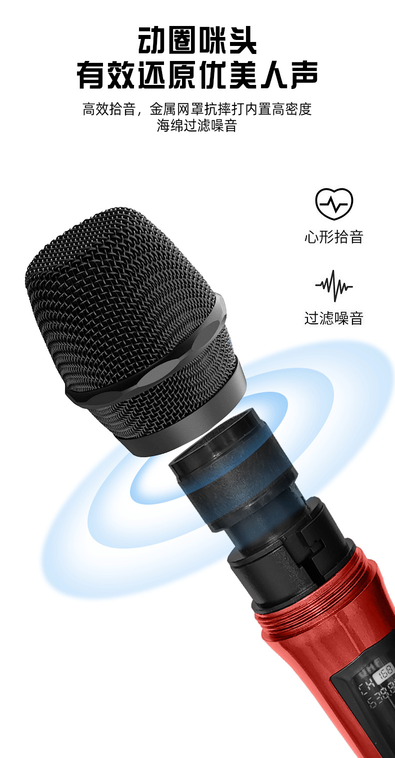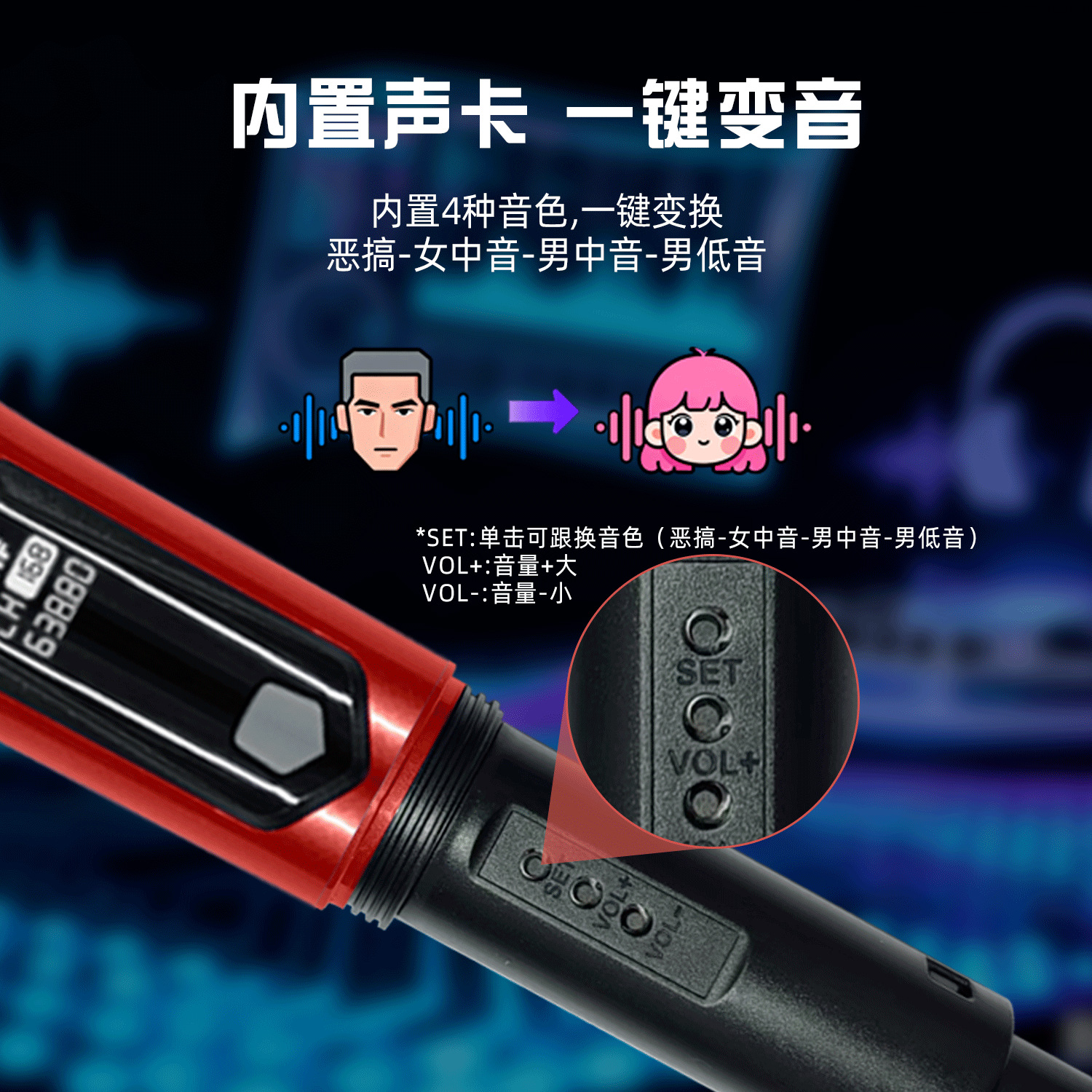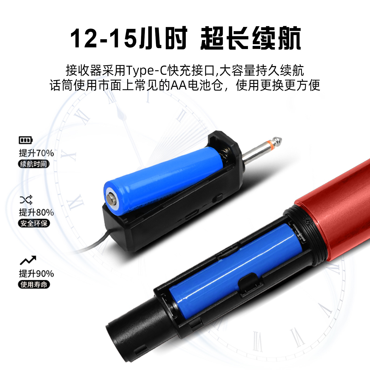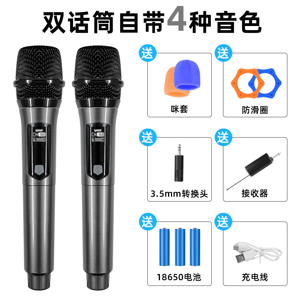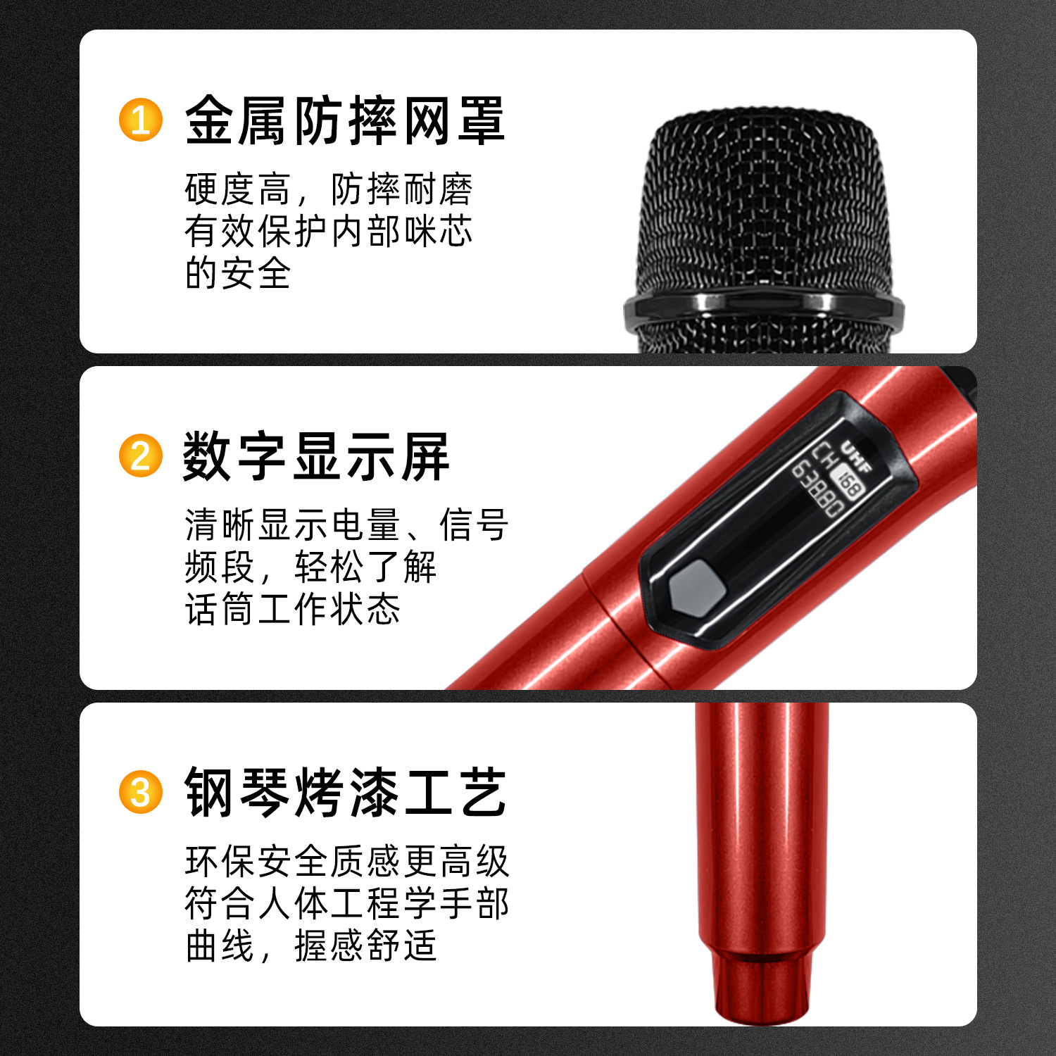 跨境一拖二话筒家用KTV声卡舞台直播话筒电镀金属质感混响