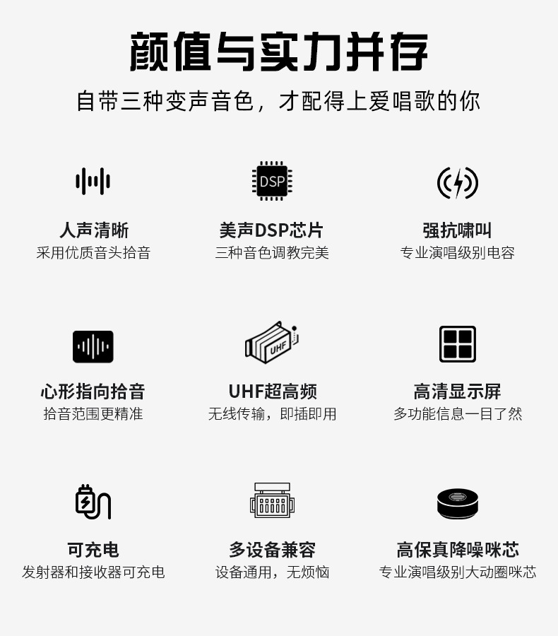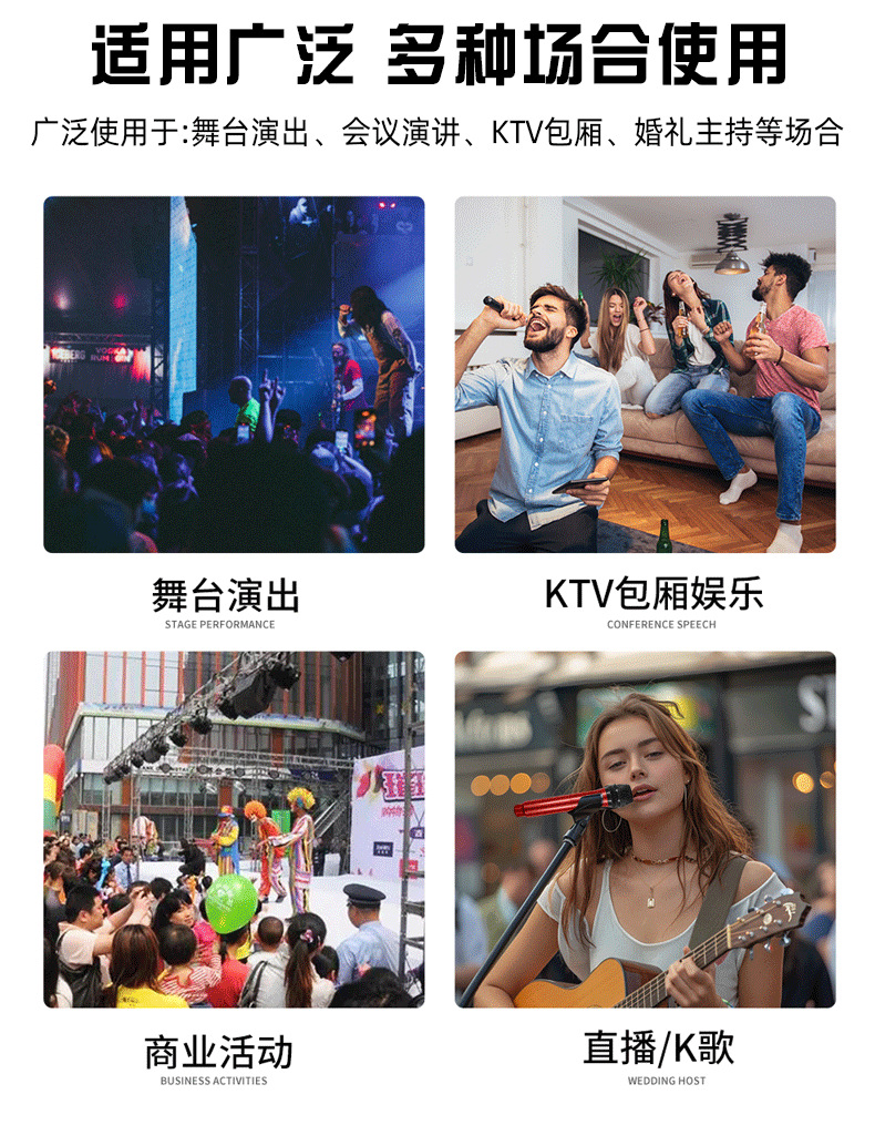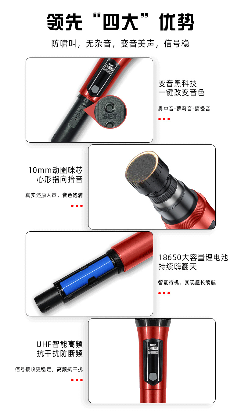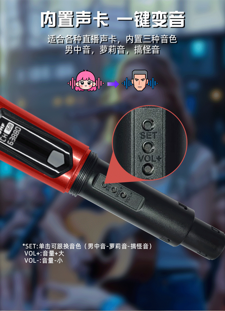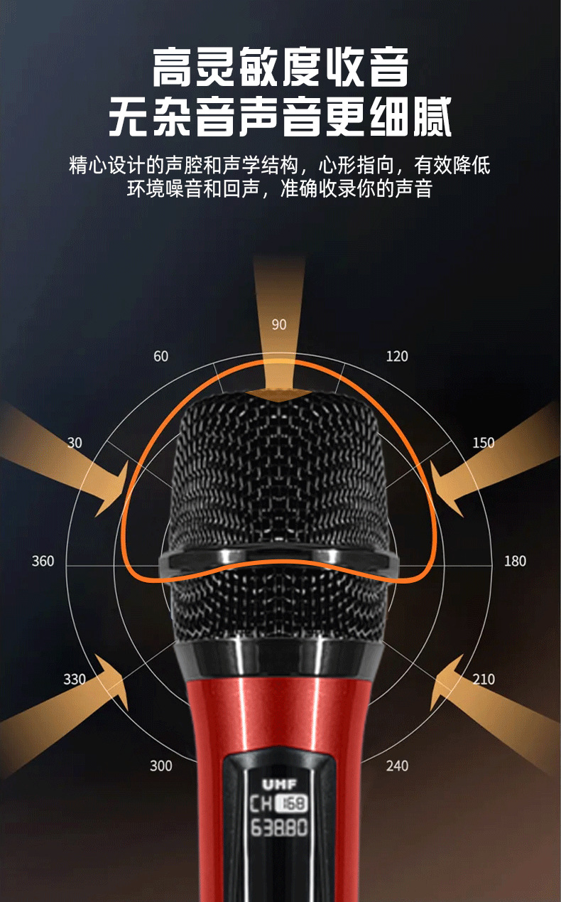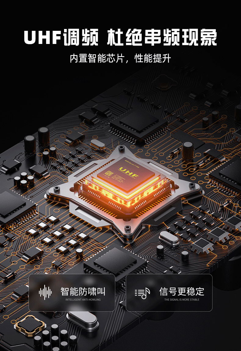 跨境一拖二话筒家用KTV声卡舞台直播话筒电镀金属质感混响