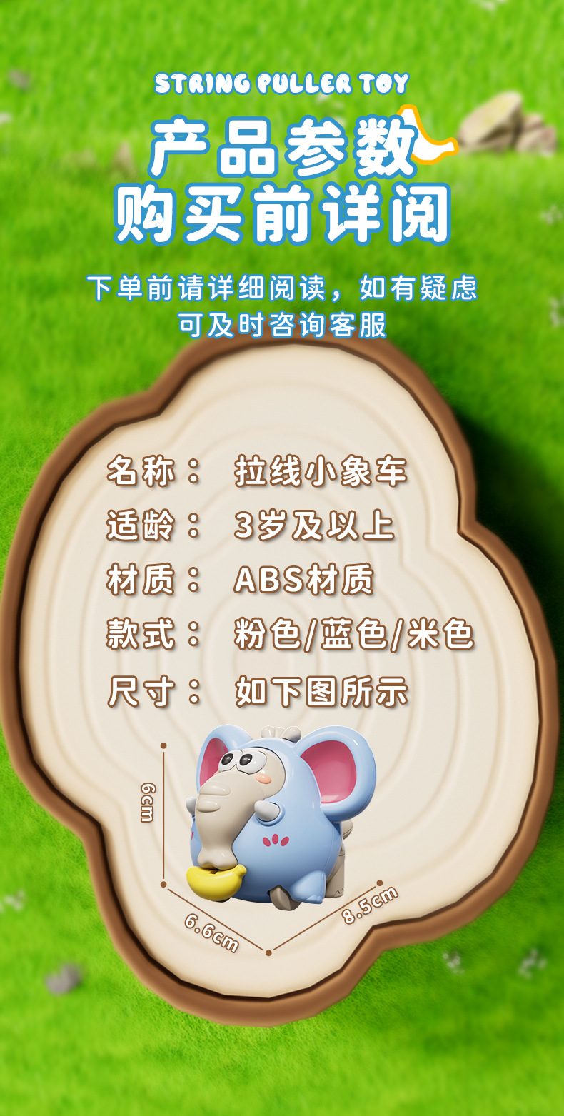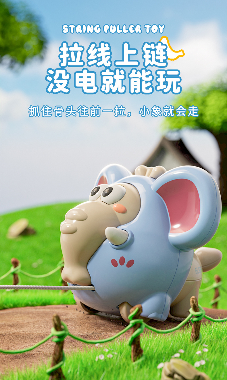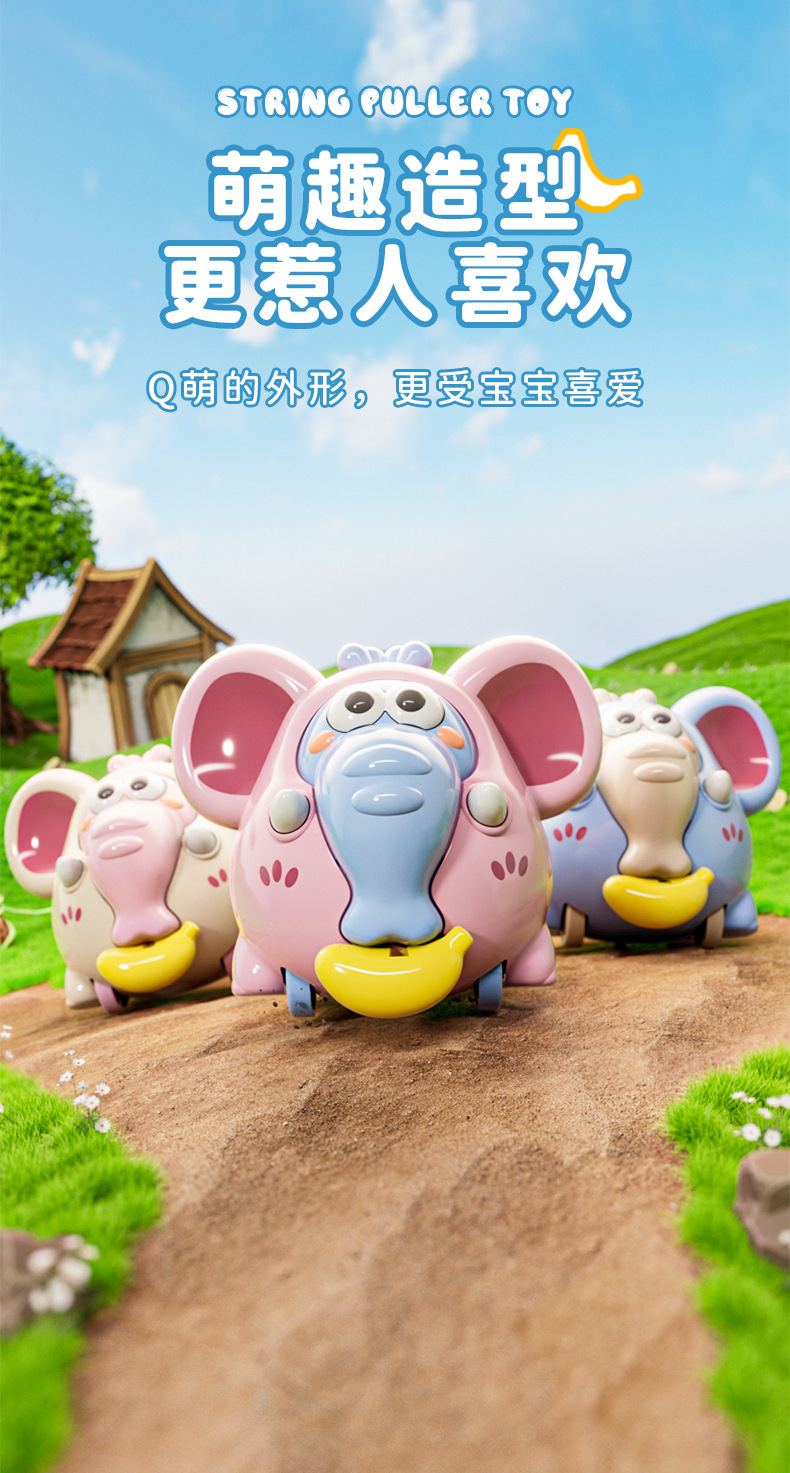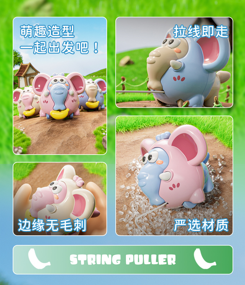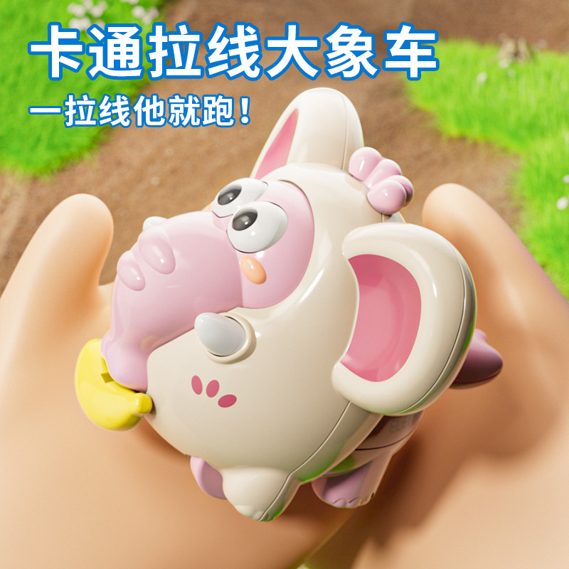 新款拉线大象车萌趣滑行小象玩具车宝宝捉握爬行发条上链创意玩具