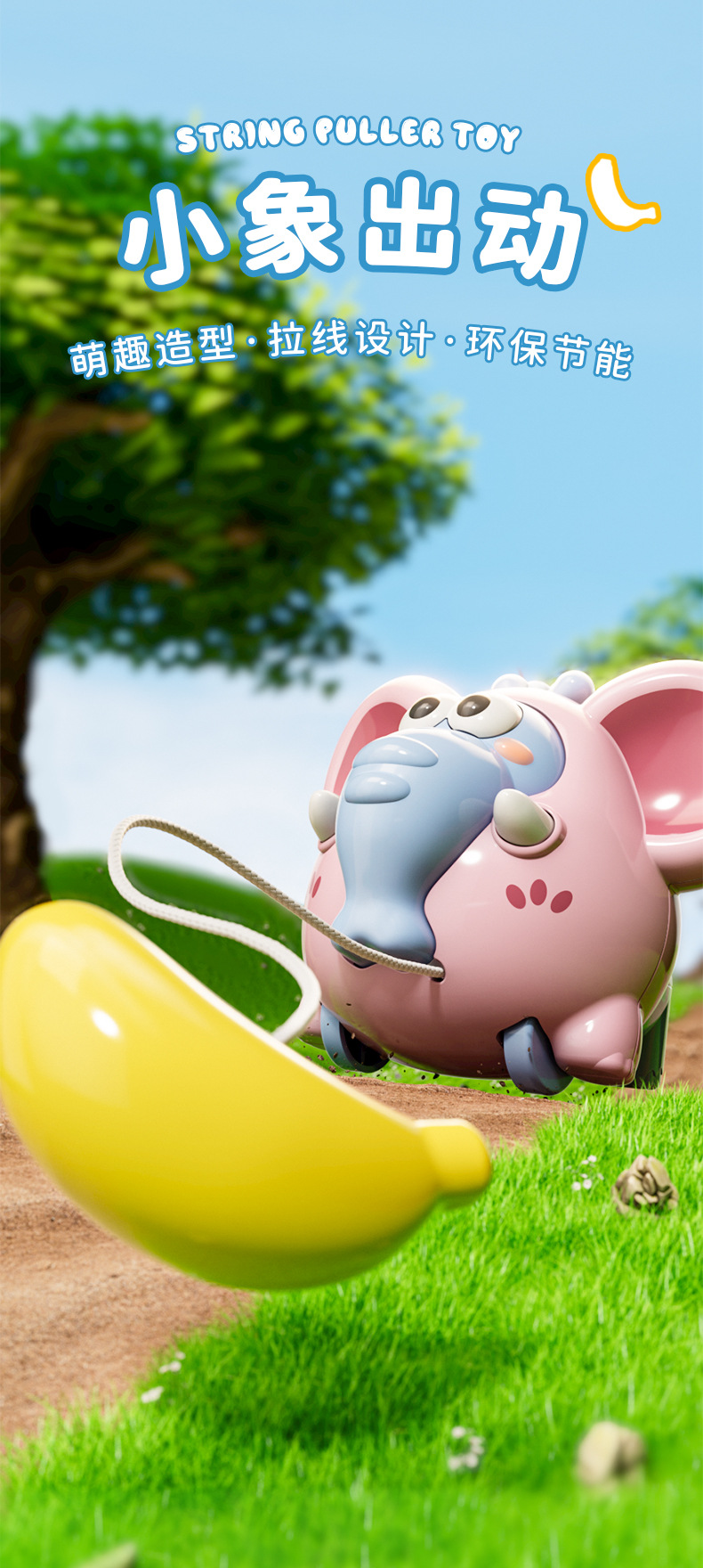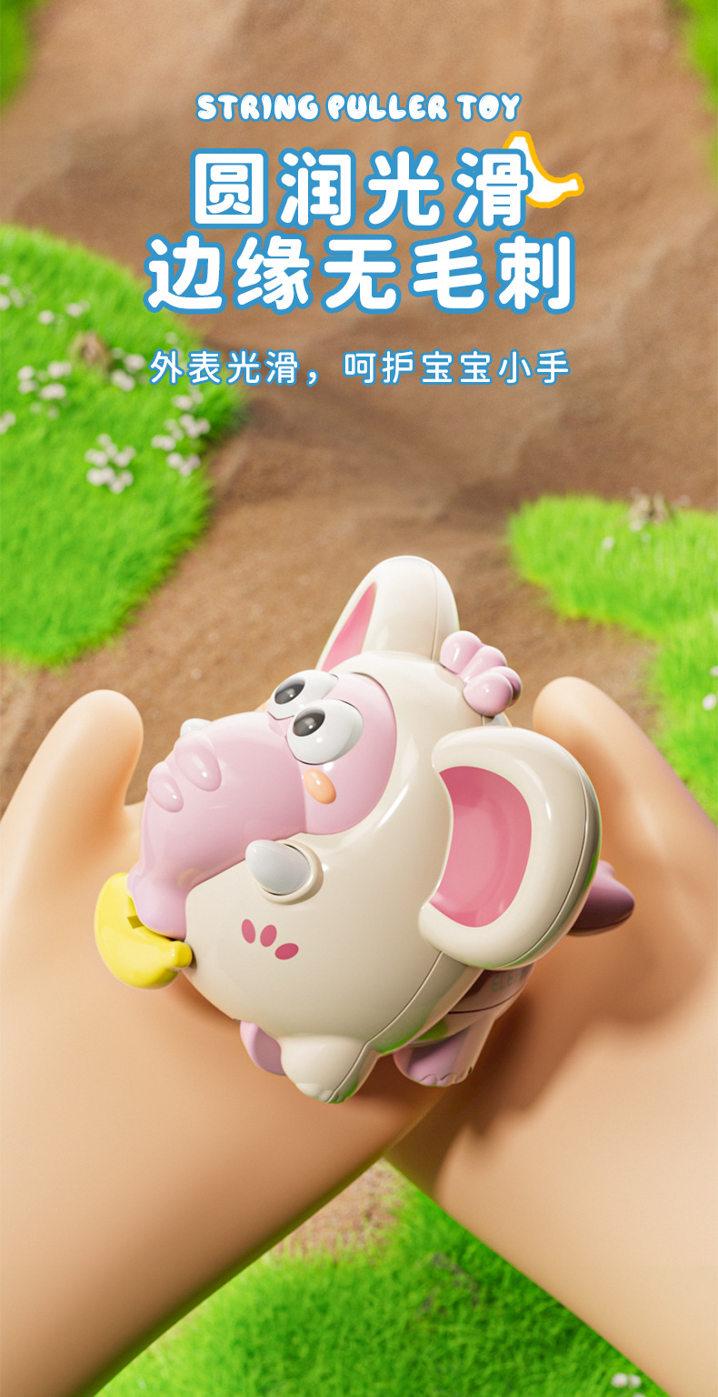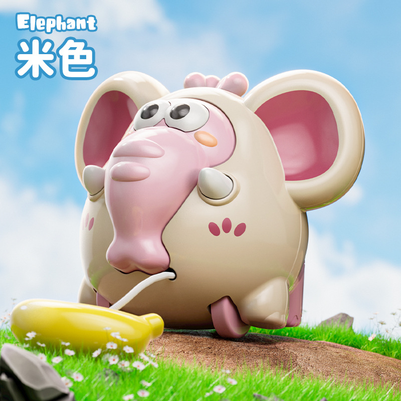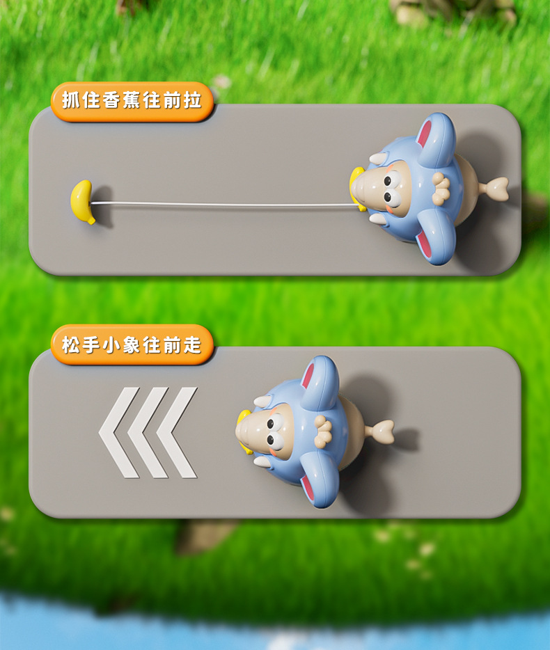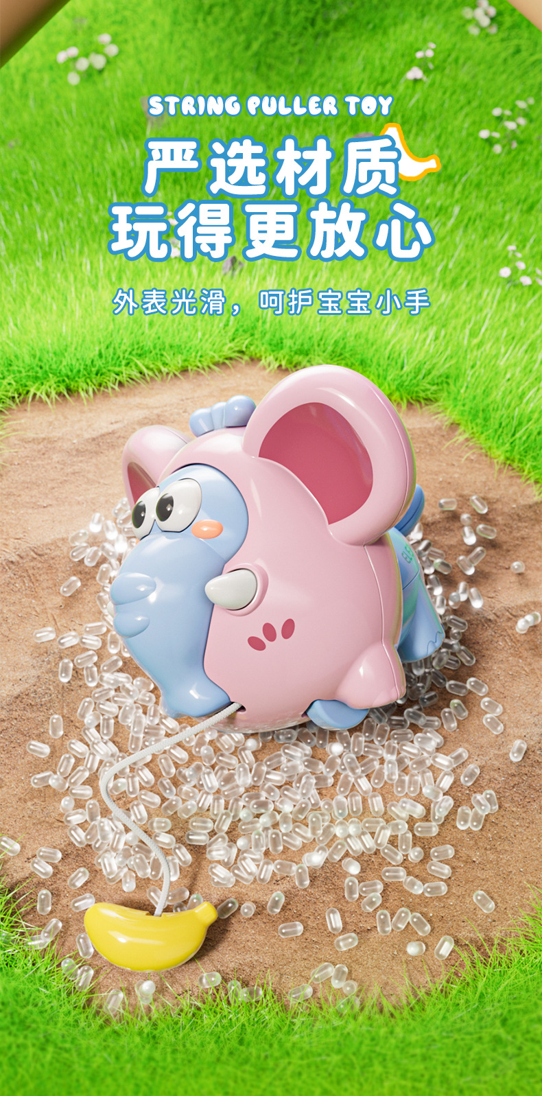 新款拉线大象车萌趣滑行小象玩具车宝宝捉握爬行发条上链创意玩具