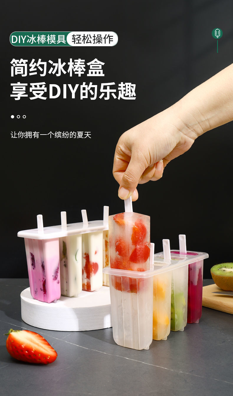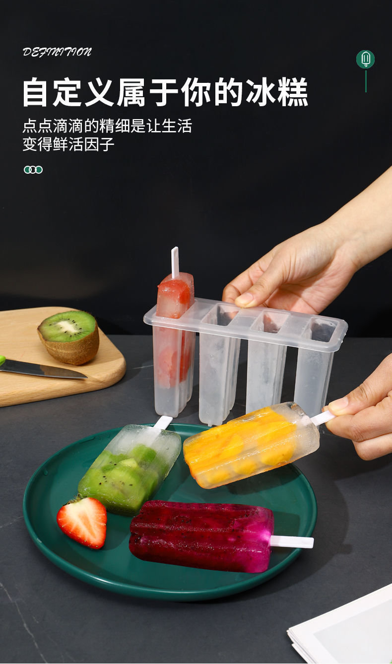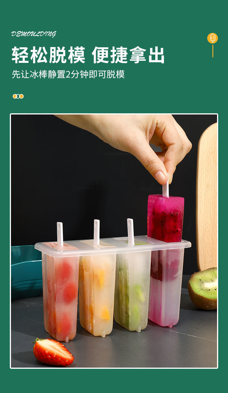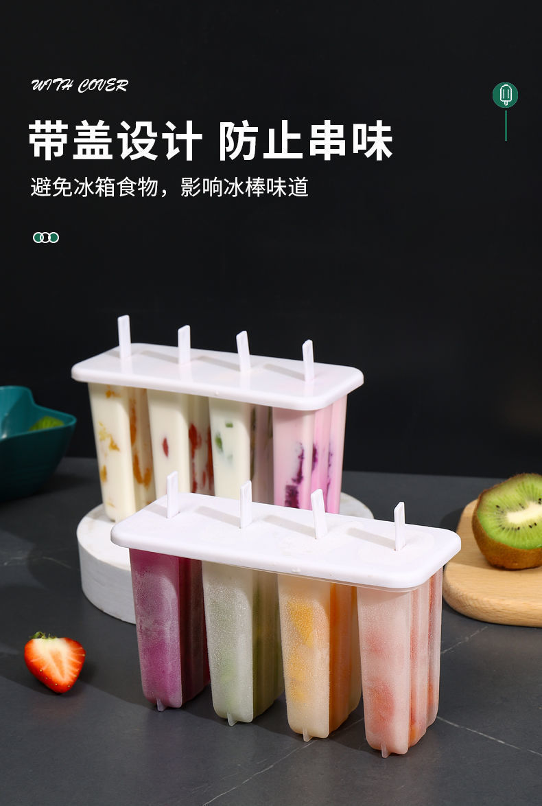 现货4连老冰棍模具带盖家用冰棒雪糕模具diy自制冰淇淋冰糕模