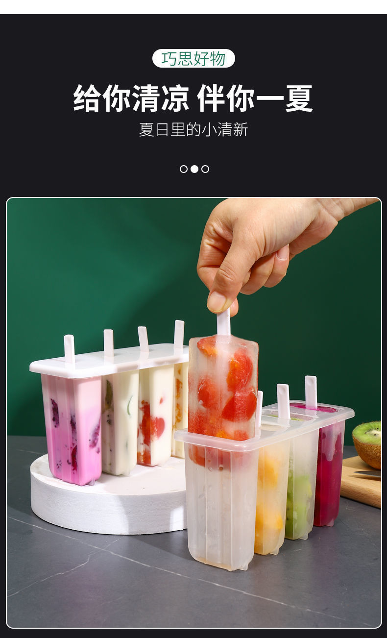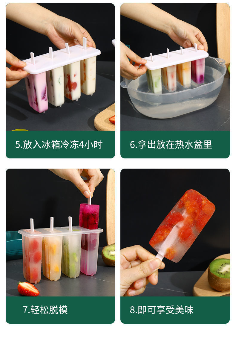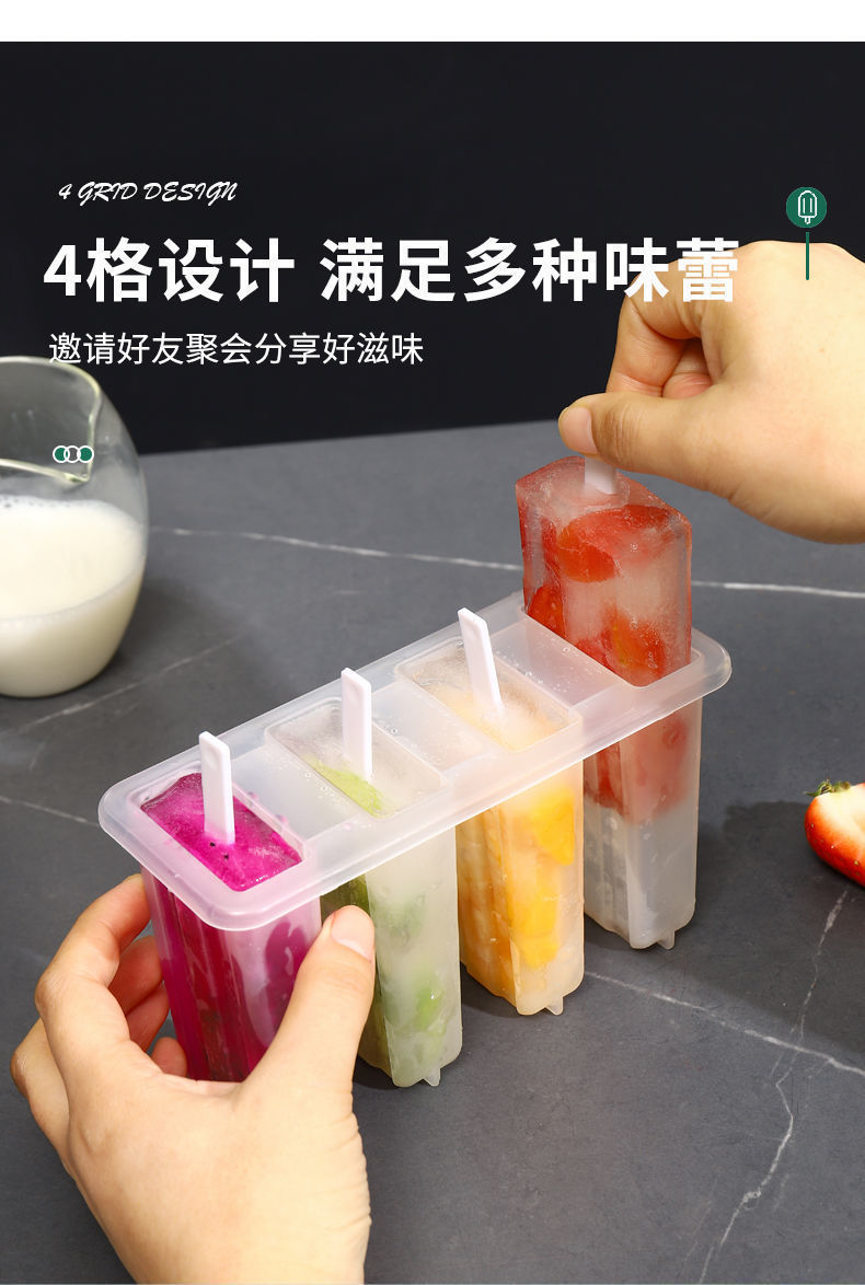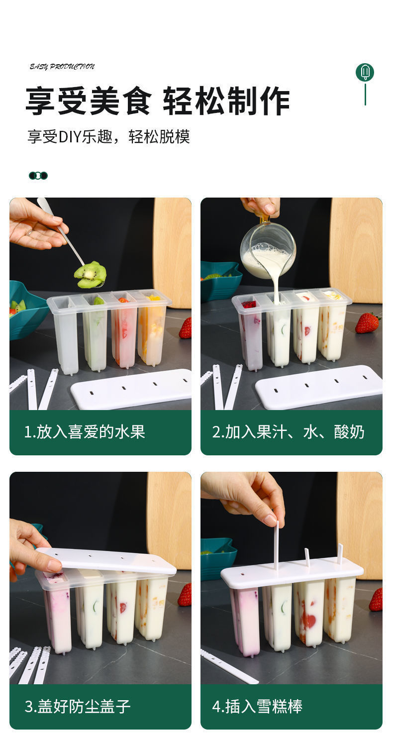 现货4连老冰棍模具带盖家用冰棒雪糕模具diy自制冰淇淋冰糕模