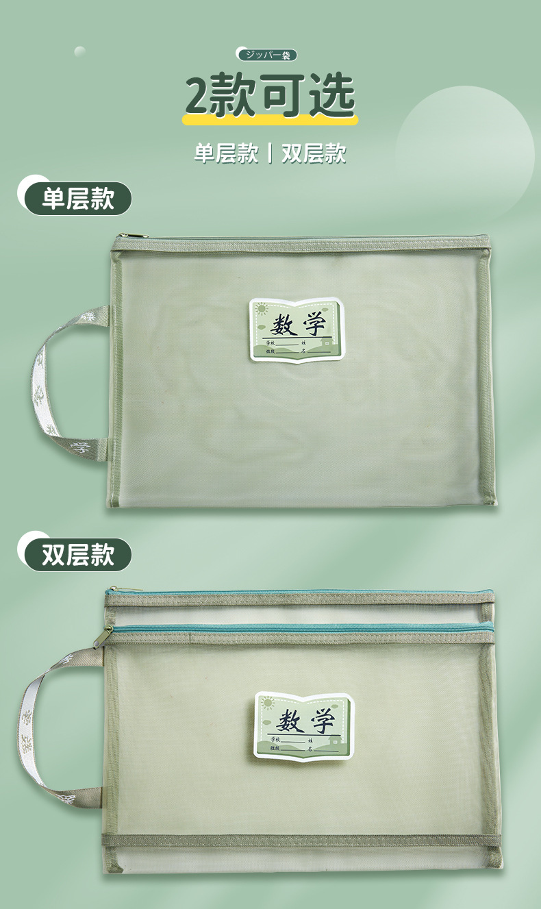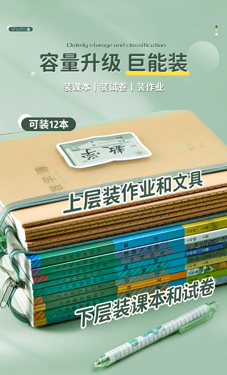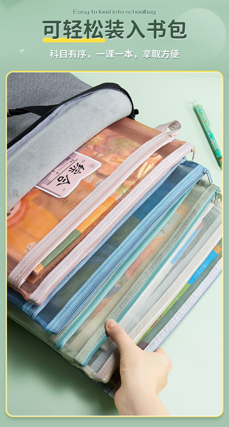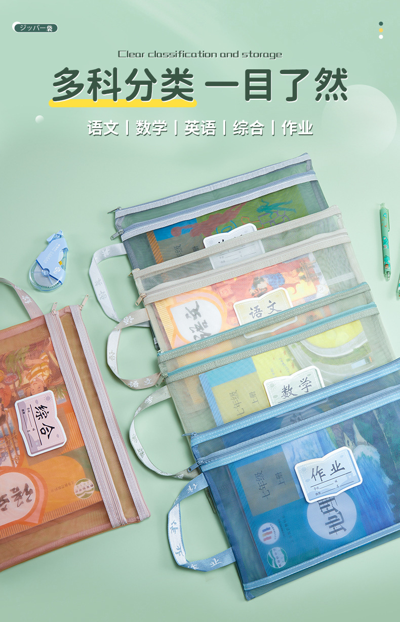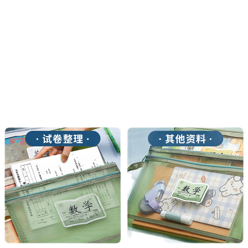 学科科目分类文件袋拉链式大容量小学生用语数英课本分科试卷收纳