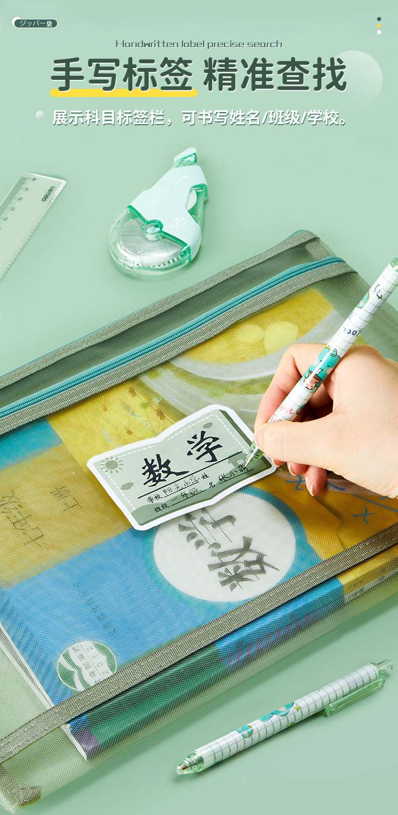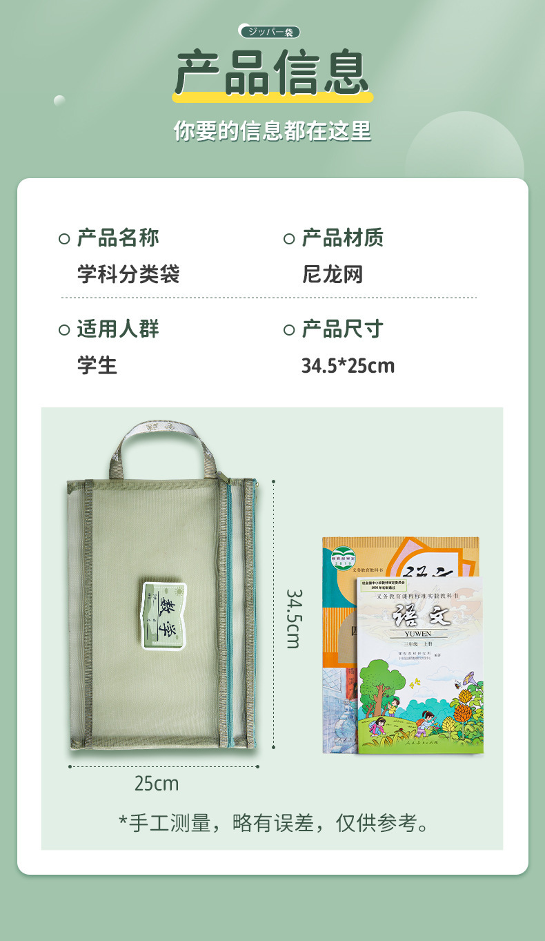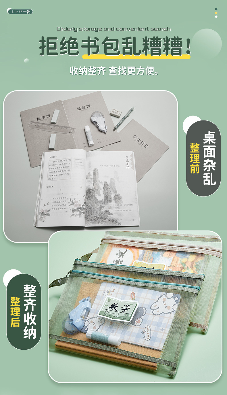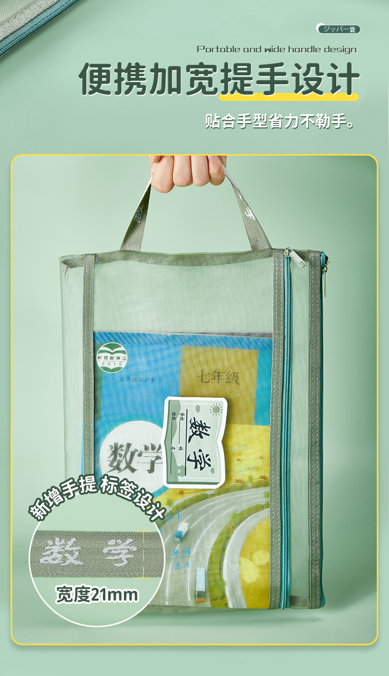 学科科目分类文件袋拉链式大容量小学生用语数英课本分科试卷收纳