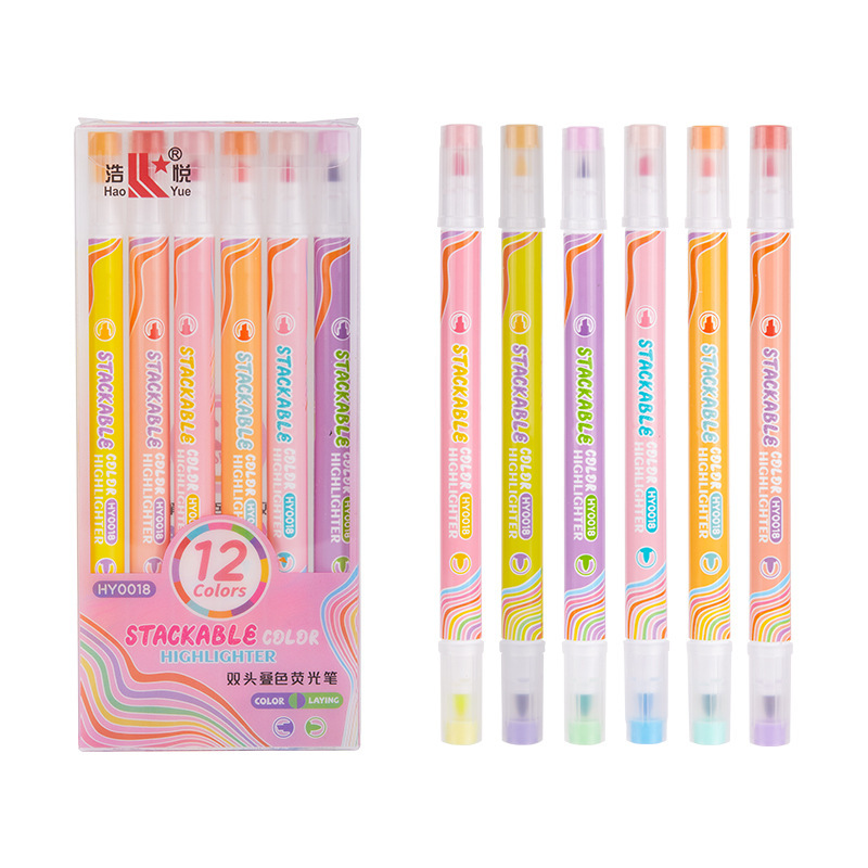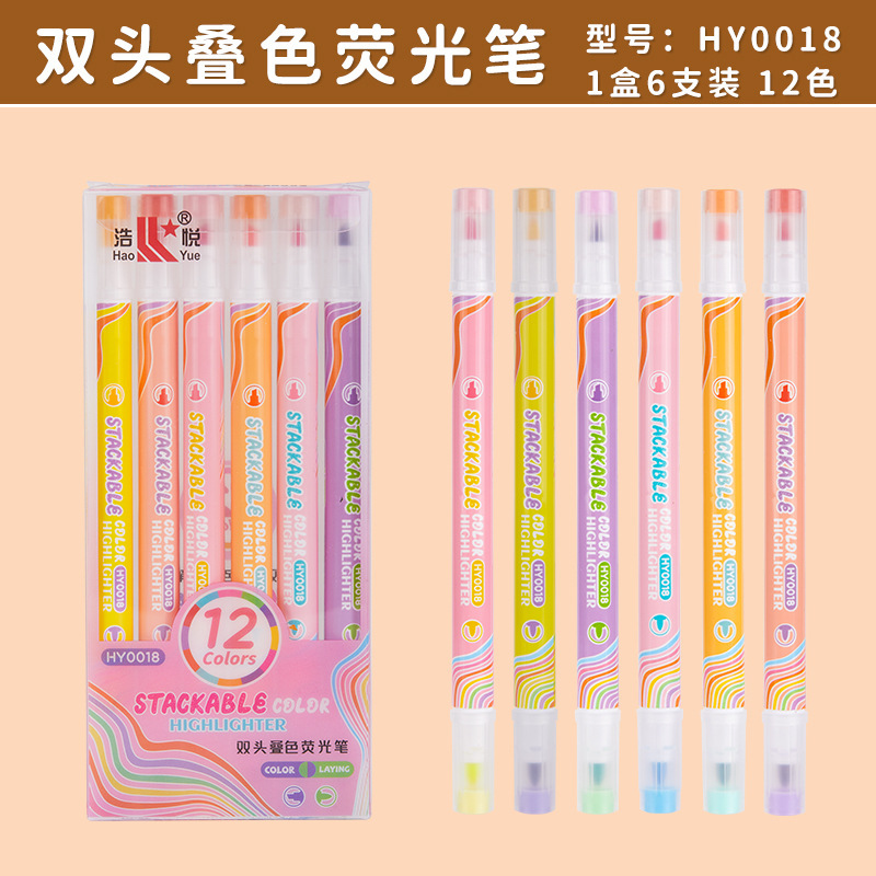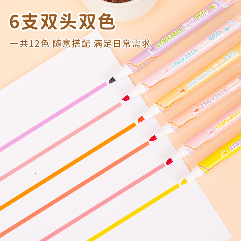 双头叠色荧光笔 学生划重点记号笔高颜值手账彩色涂鸦标记笔套装