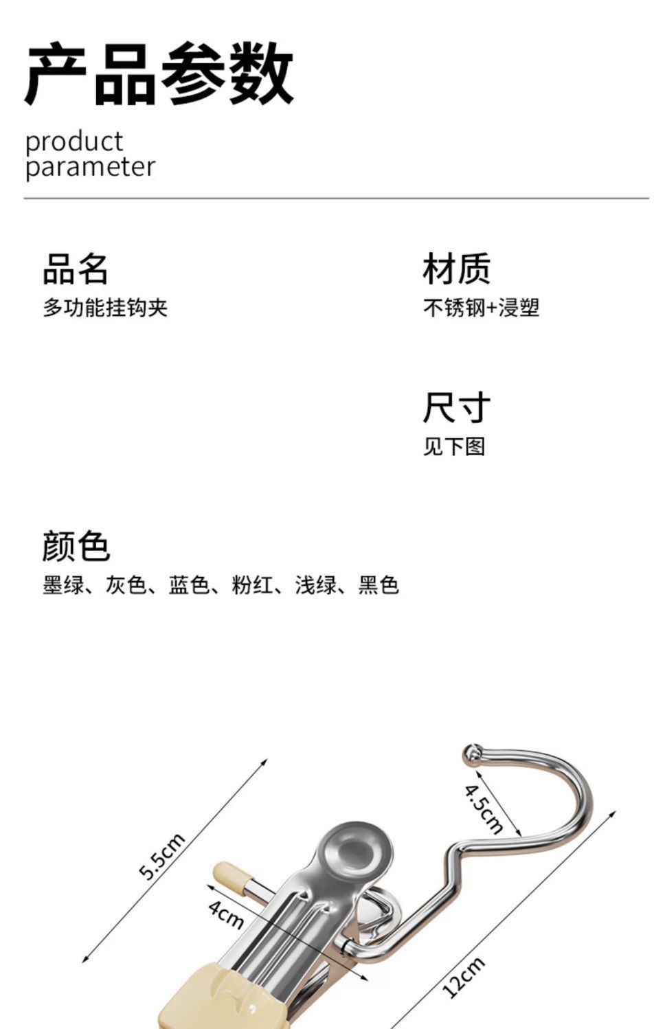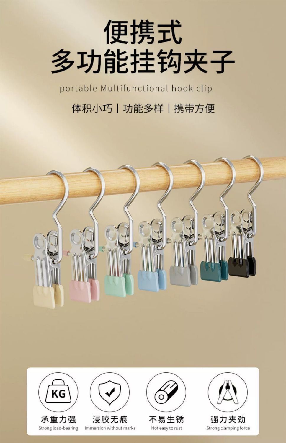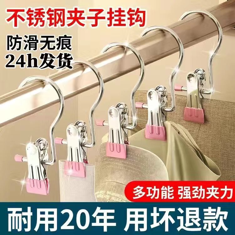 多功能不锈钢3字夹裤夹裙夹袜子夹带挂钩无痕晾衣夹帽子夹晾晒夹