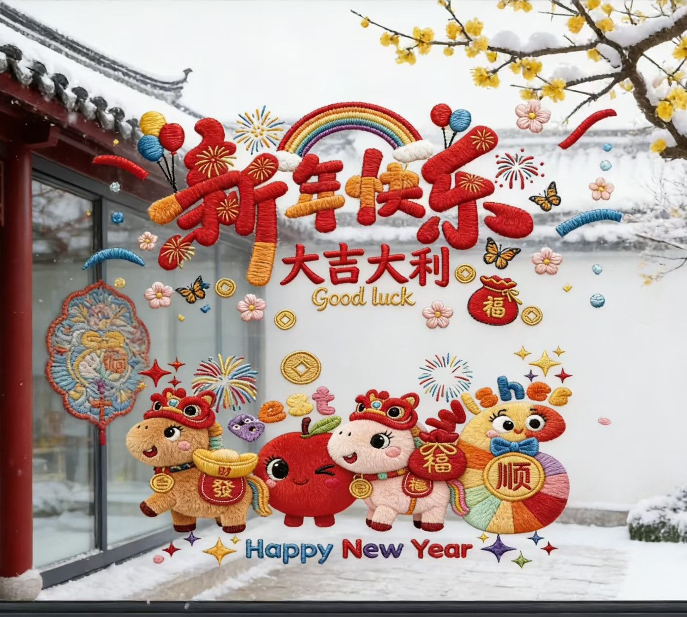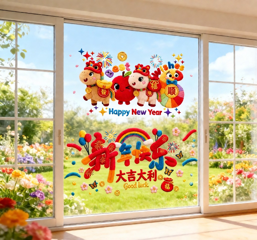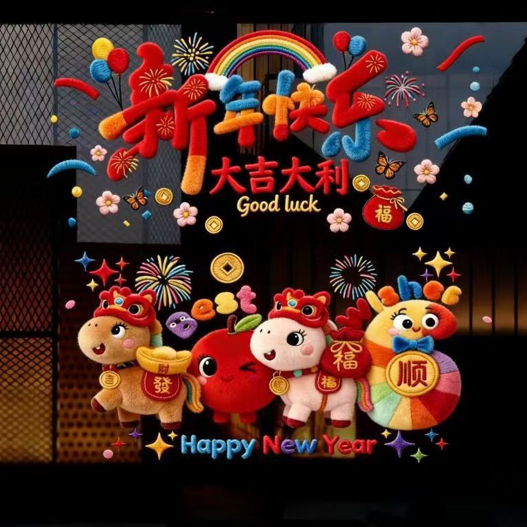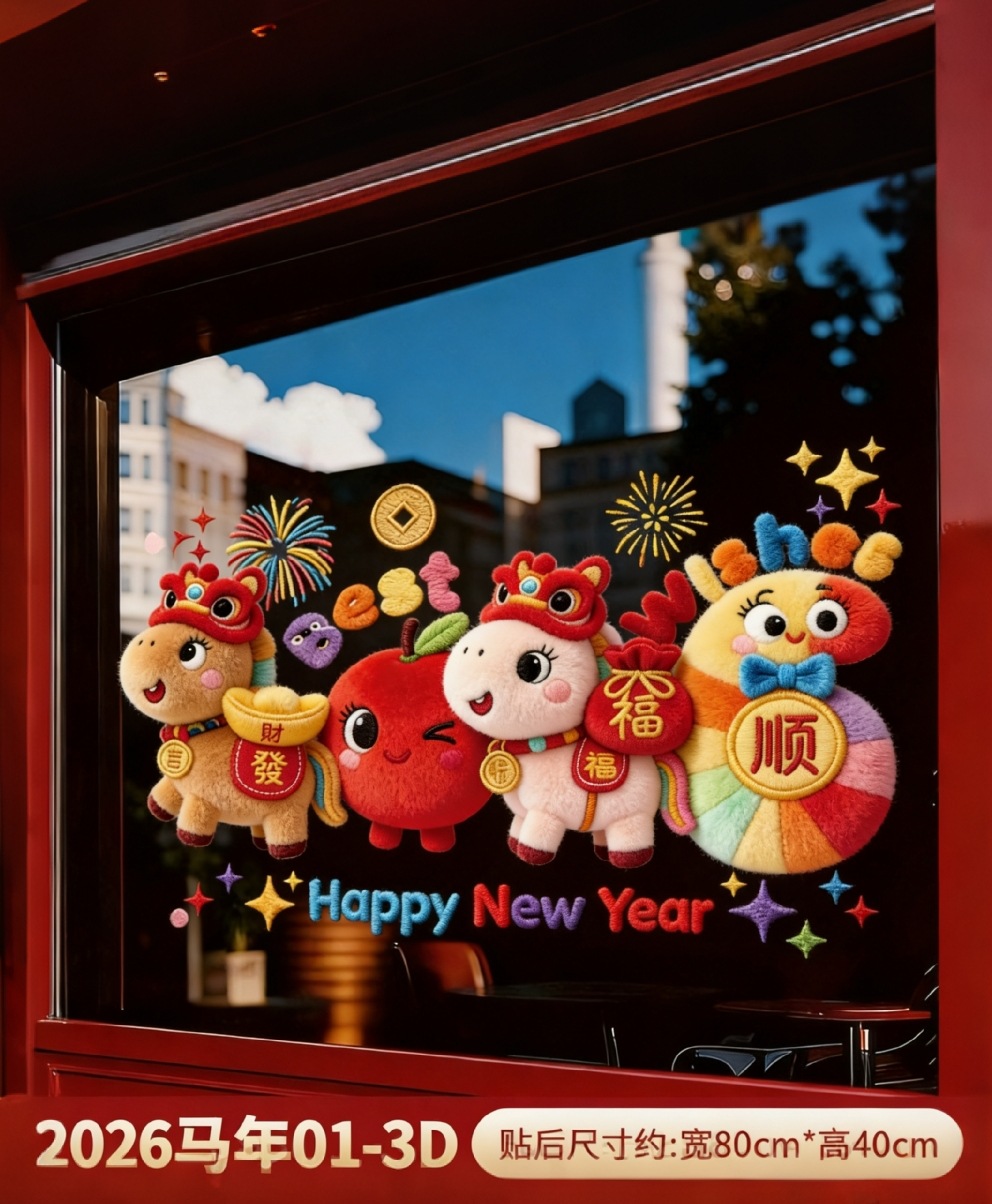 新年窗花2026马年过年橱窗贴装饰品静电贴窗户玻璃门贴纸春节用品