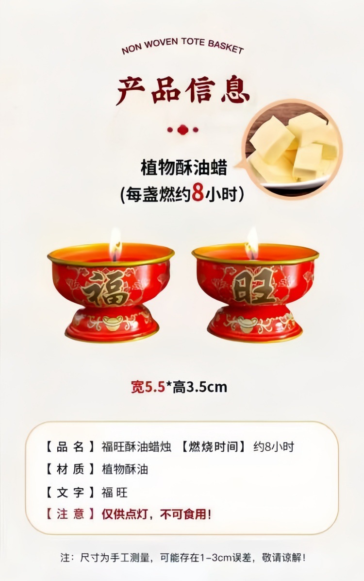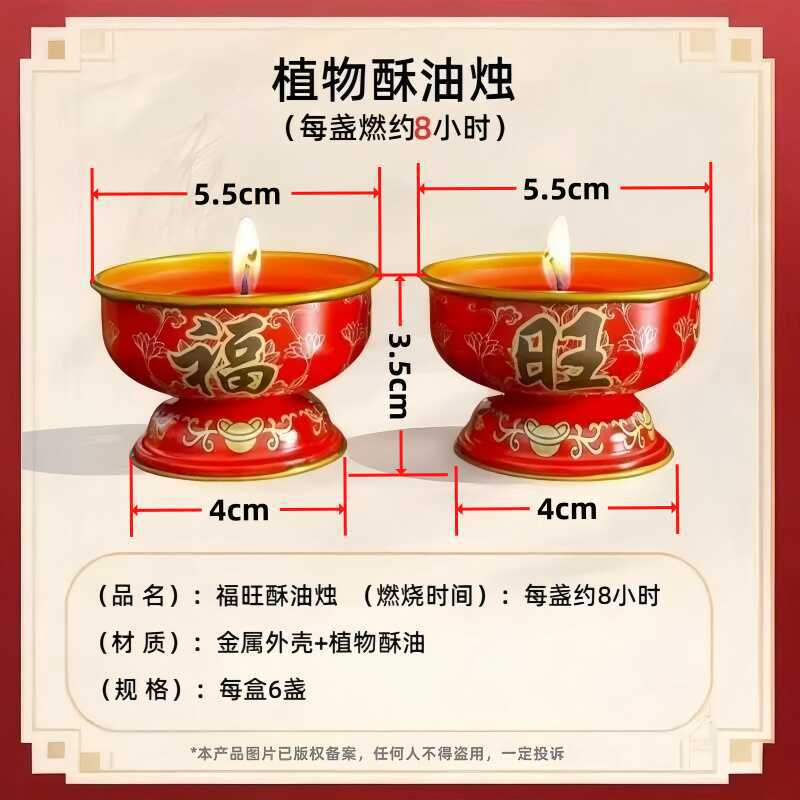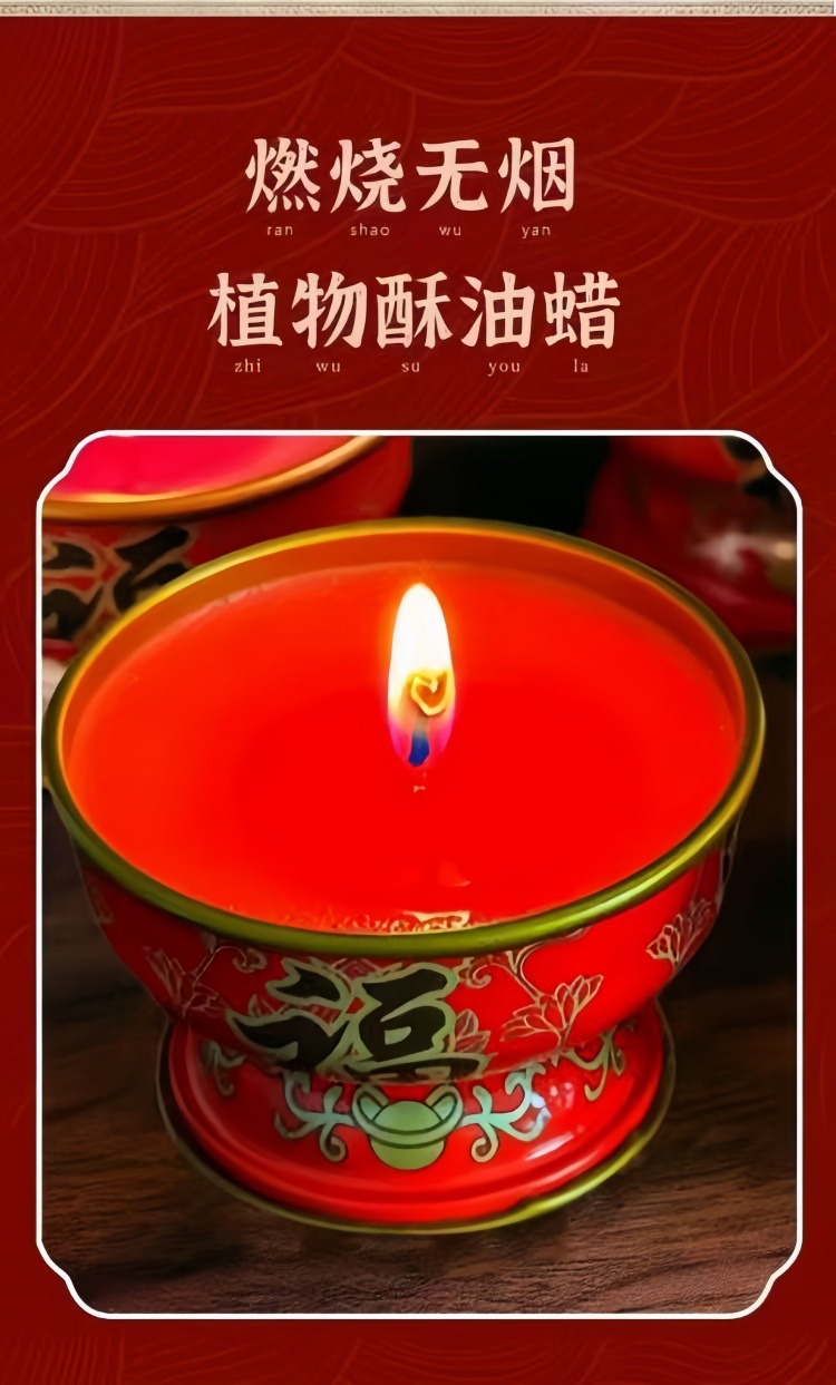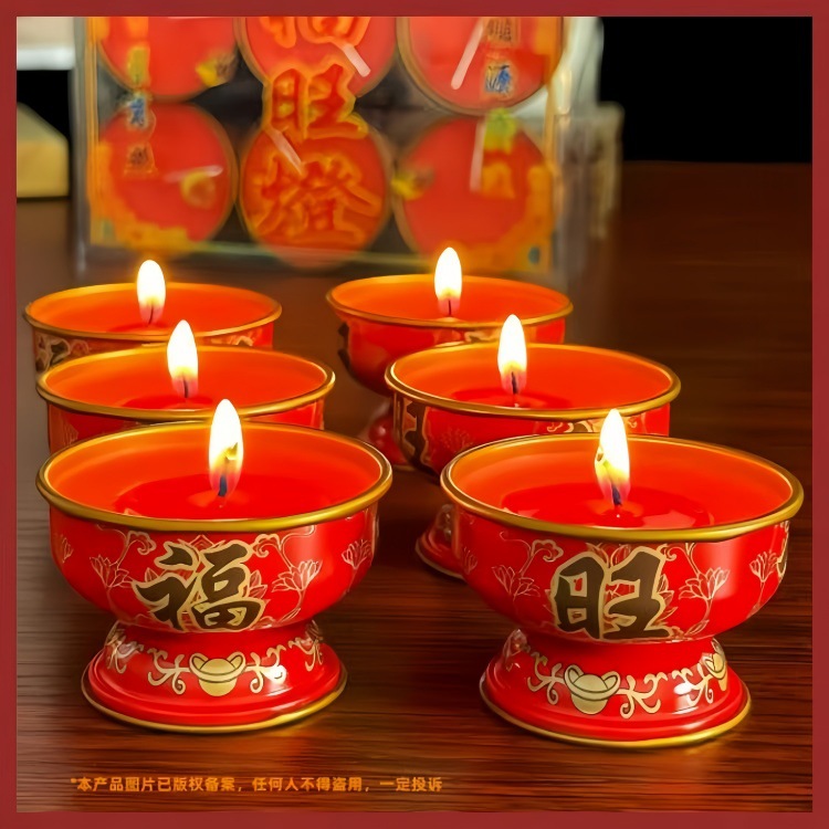 福旺酥油灯蜡烛金属灯座家用无烟酥油烛过年喜庆佛堂长明供灯