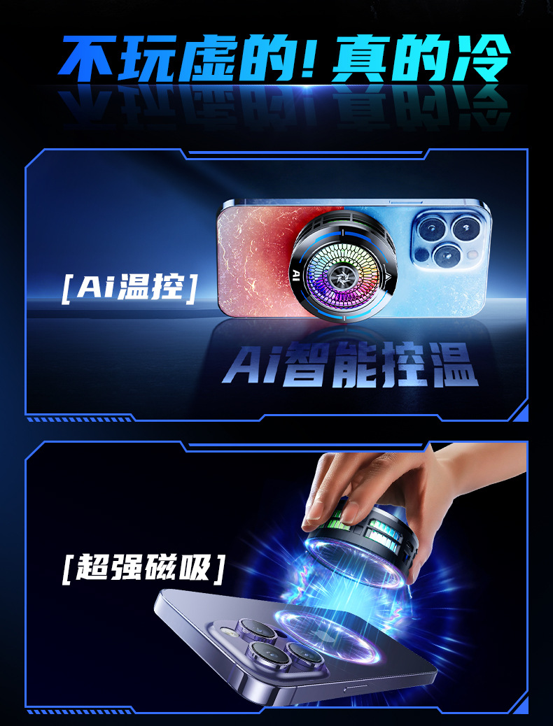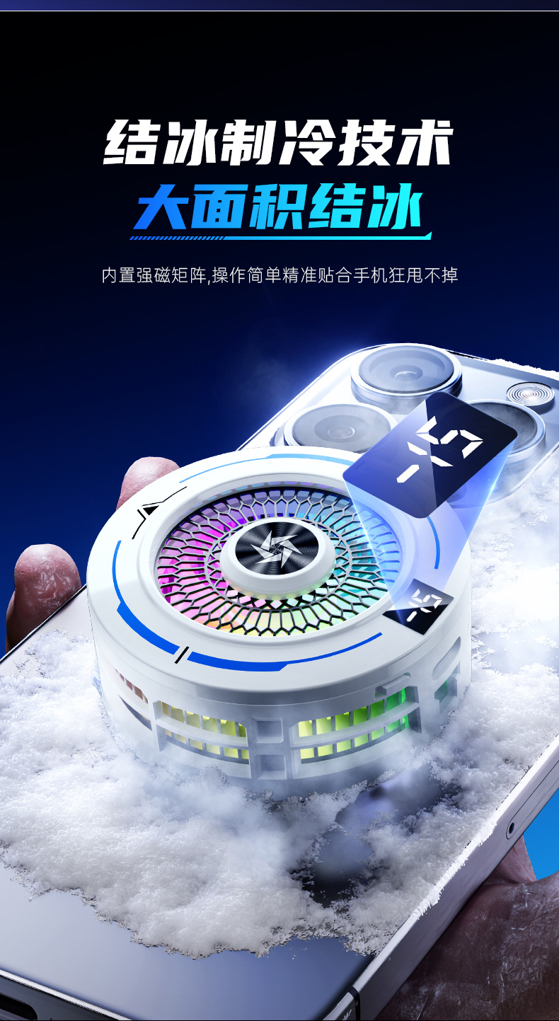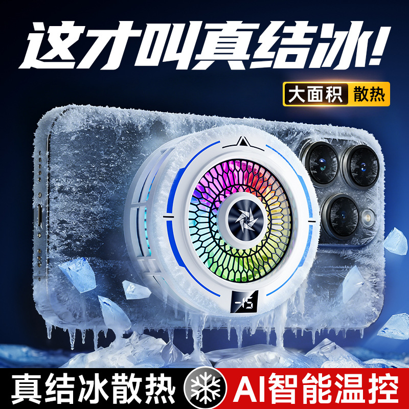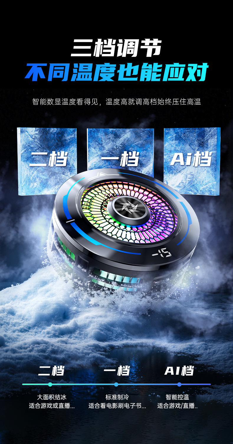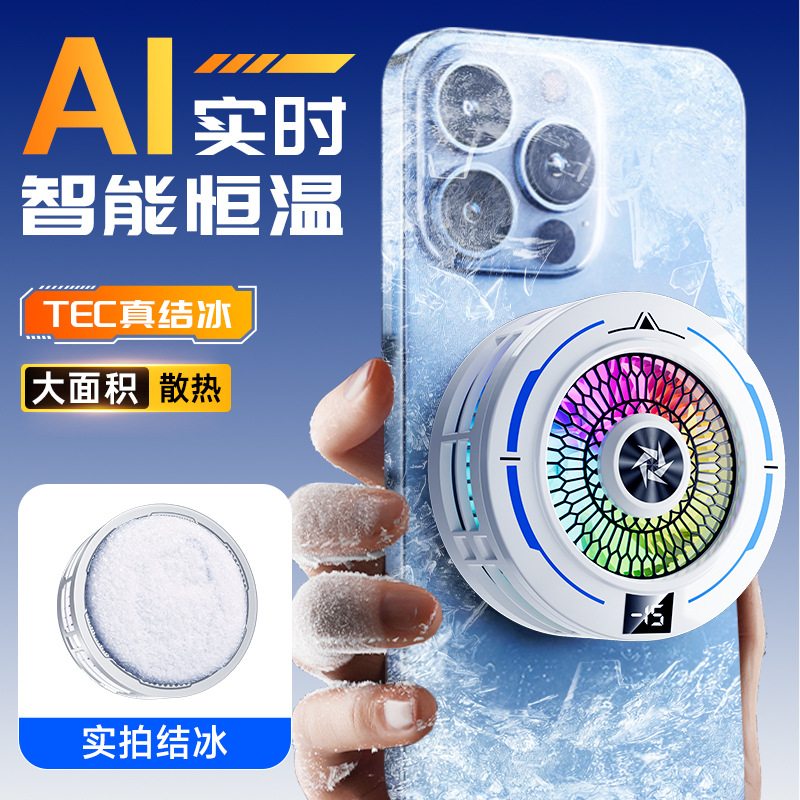 AI智能数显磁吸散热器 吸附降温灯光风冷直播游戏电竞手机扇热器
