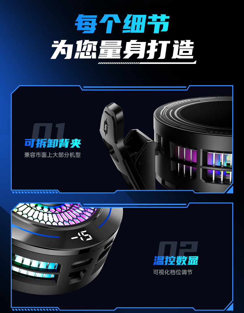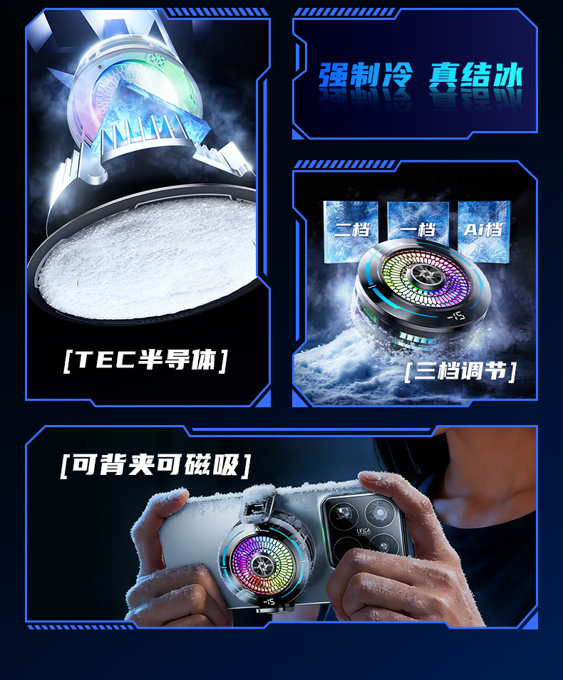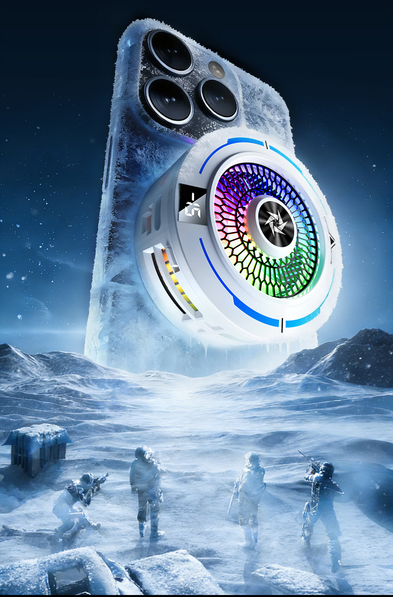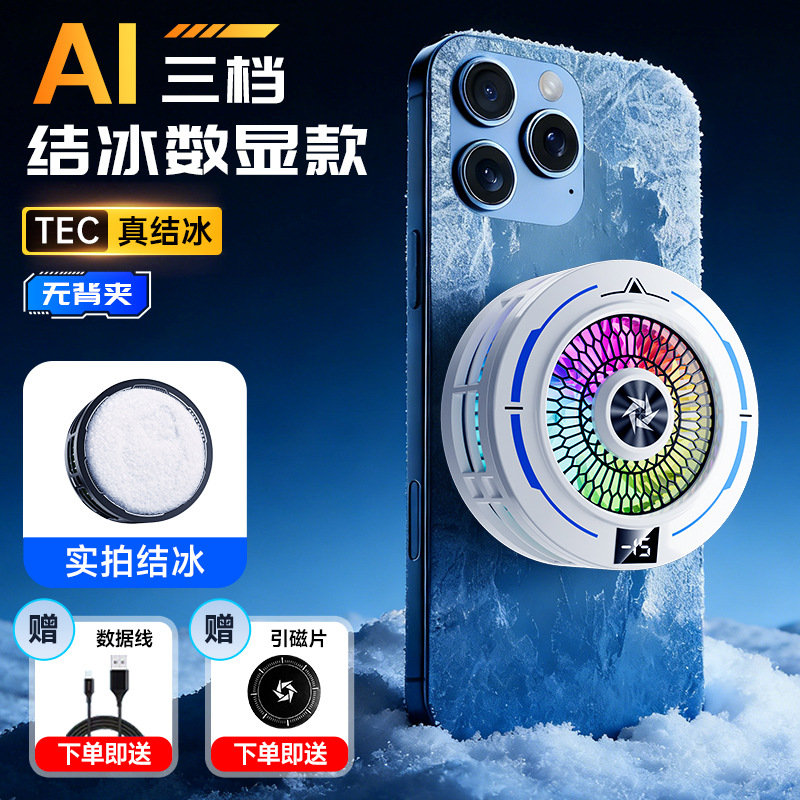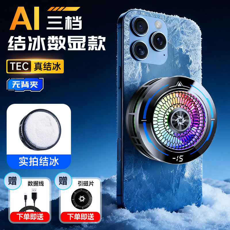 AI智能数显磁吸散热器 吸附降温灯光风冷直播游戏电竞手机扇热器