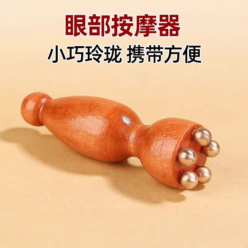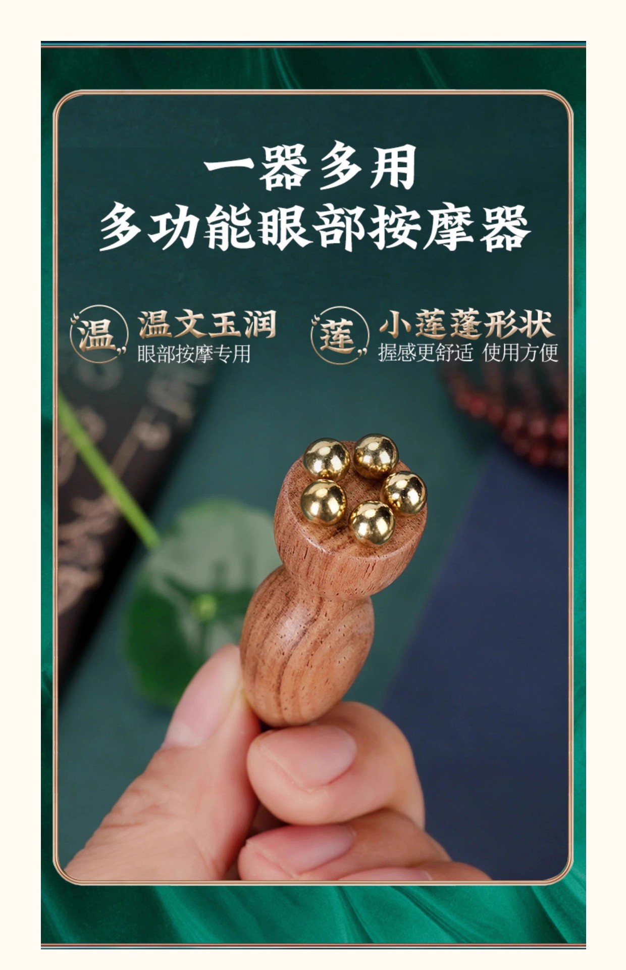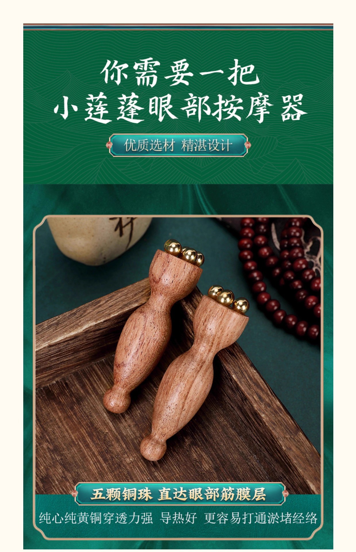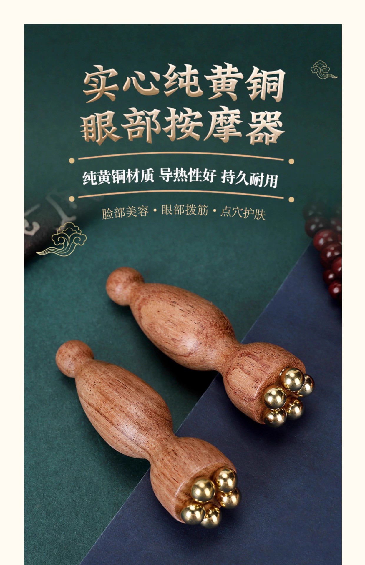 眼部按摩器小莲蓬珠按摩器铜脸部美容点穴护肤拨筋棒花梨木疏通器