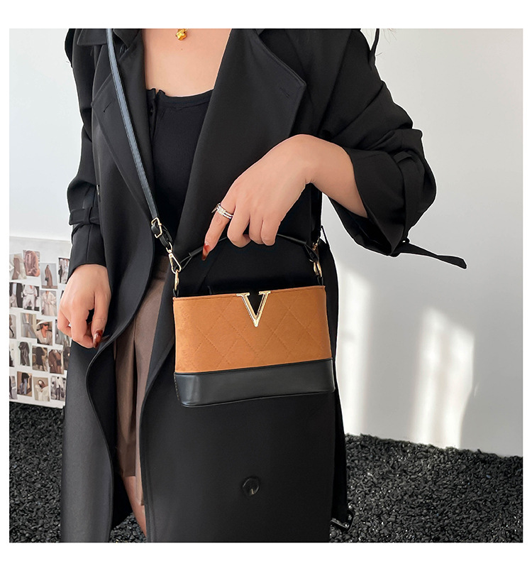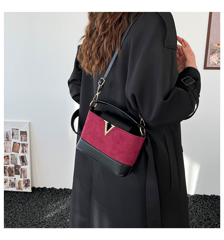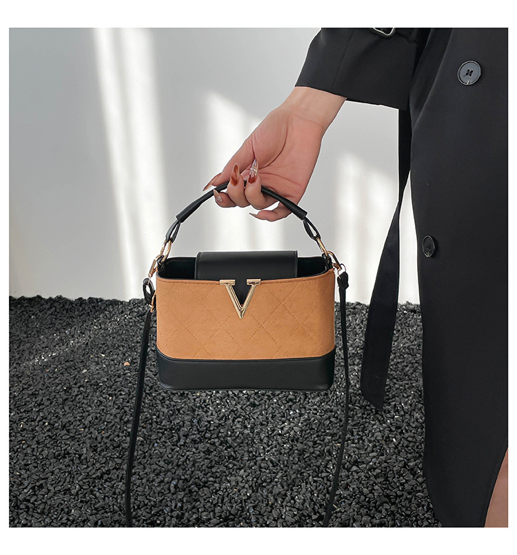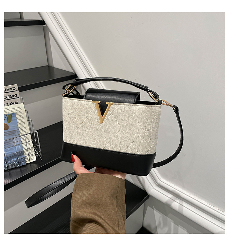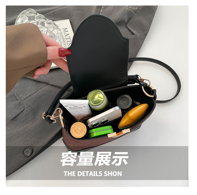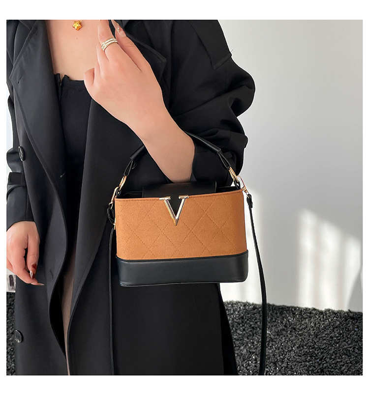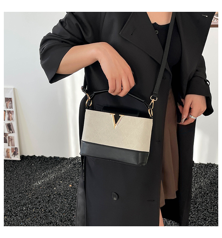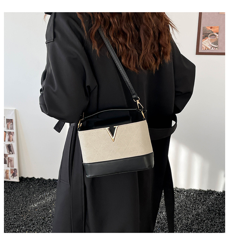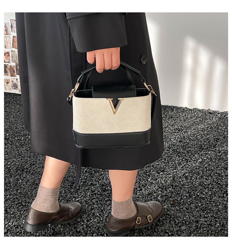 跨境2025秋冬新款高级感时尚单肩包休闲百搭水桶包撞色潮流手提包