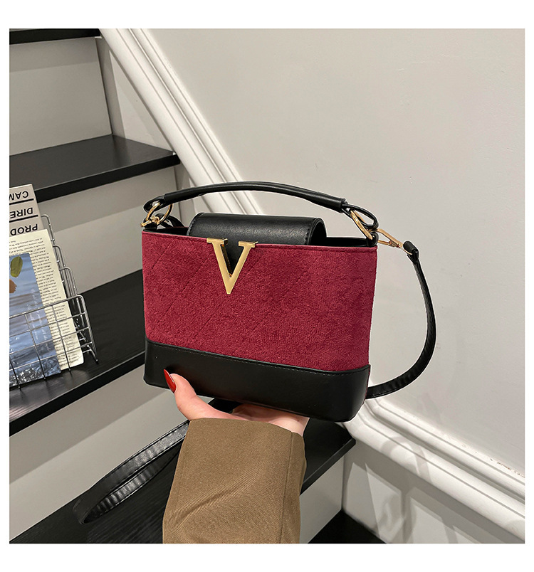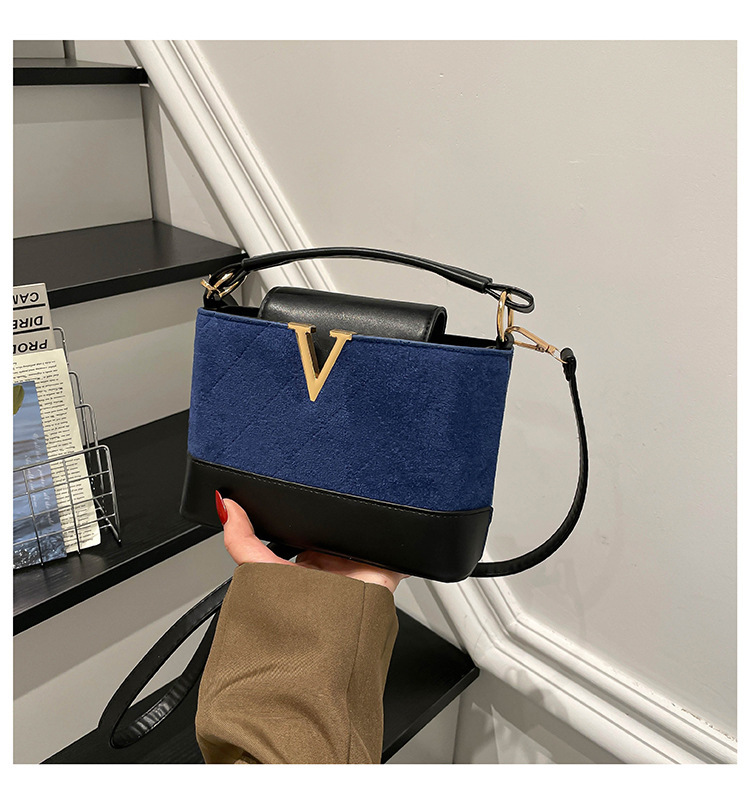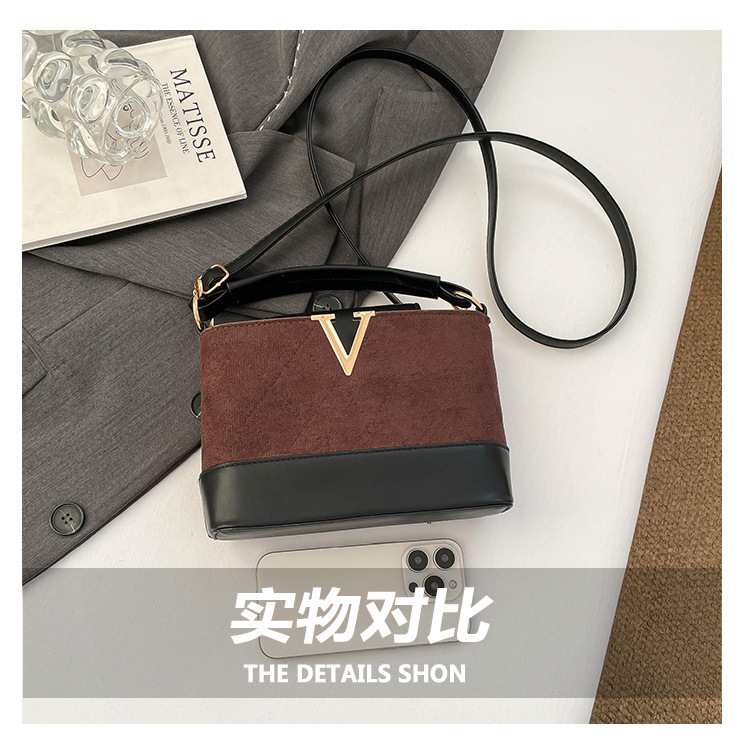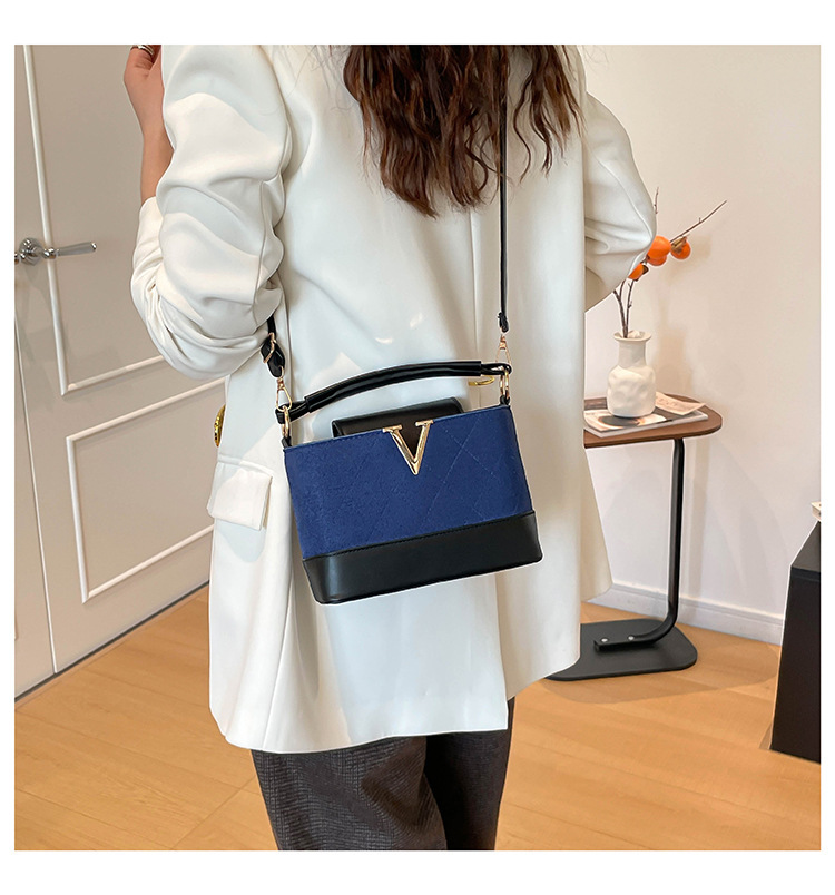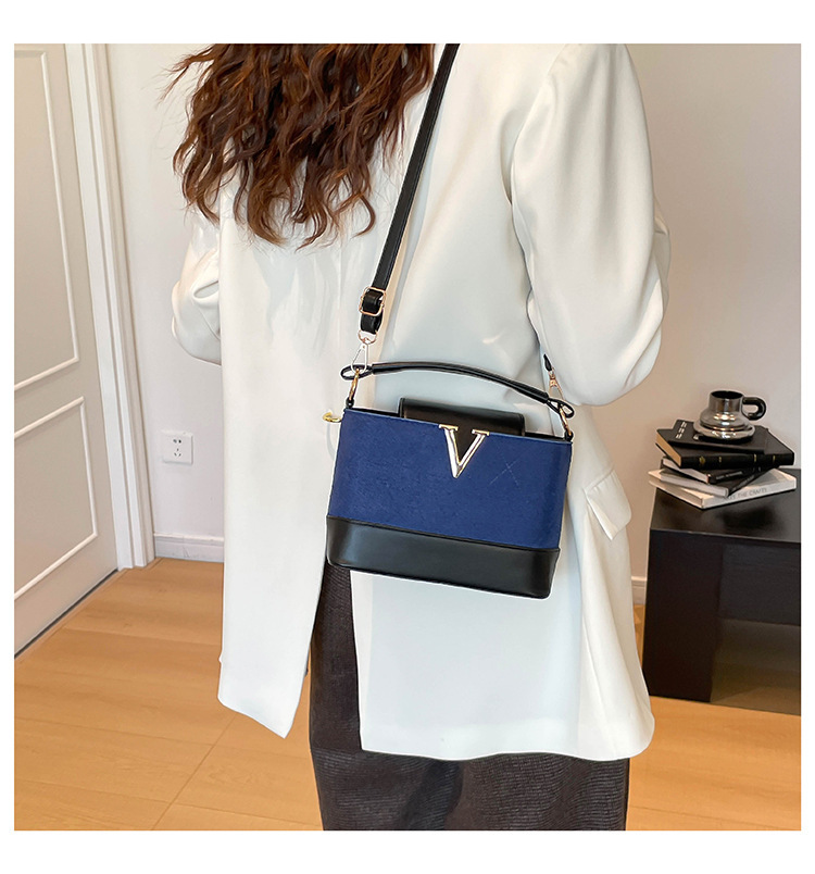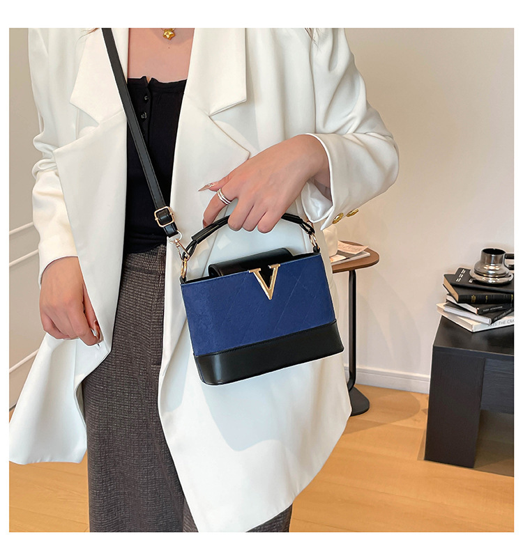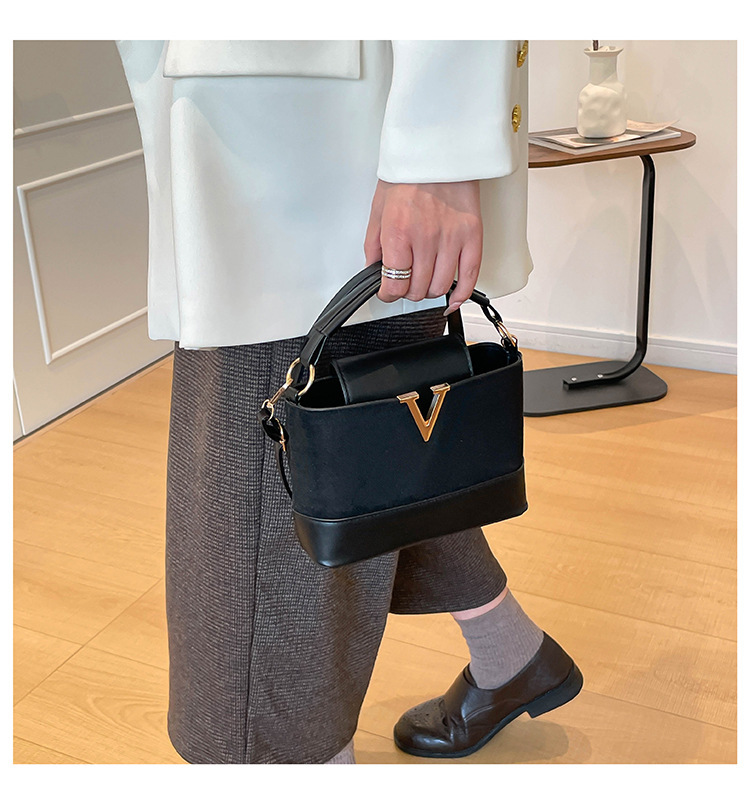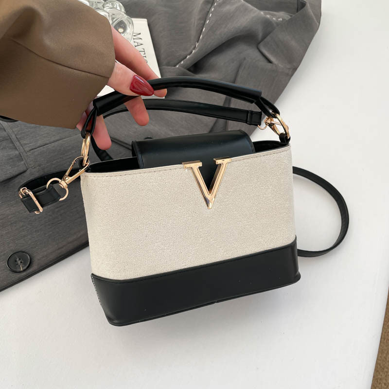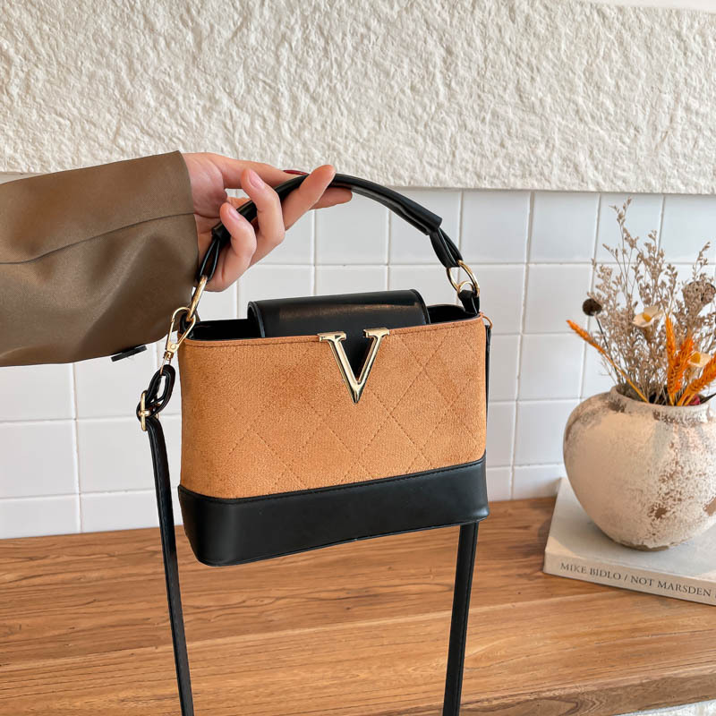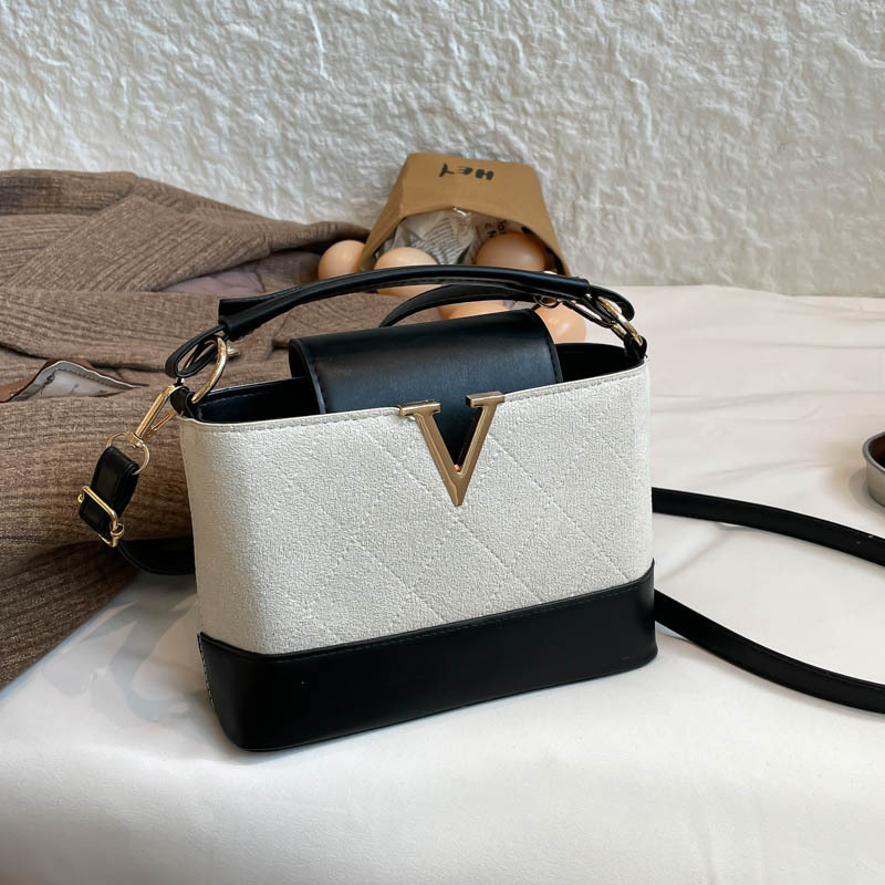 跨境2025秋冬新款高级感时尚单肩包休闲百搭水桶包撞色潮流手提包
