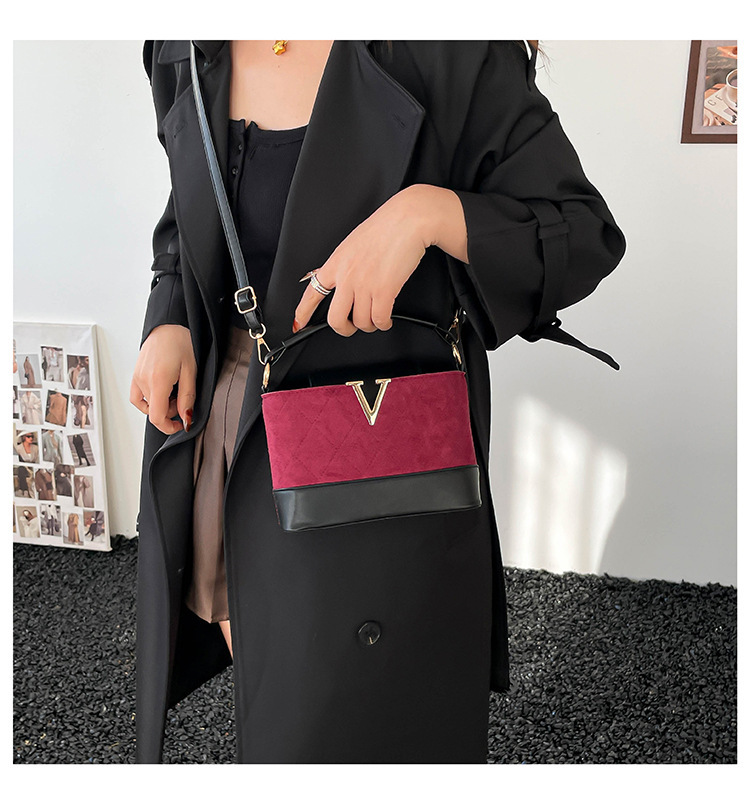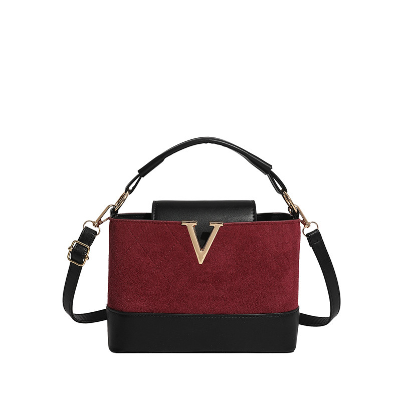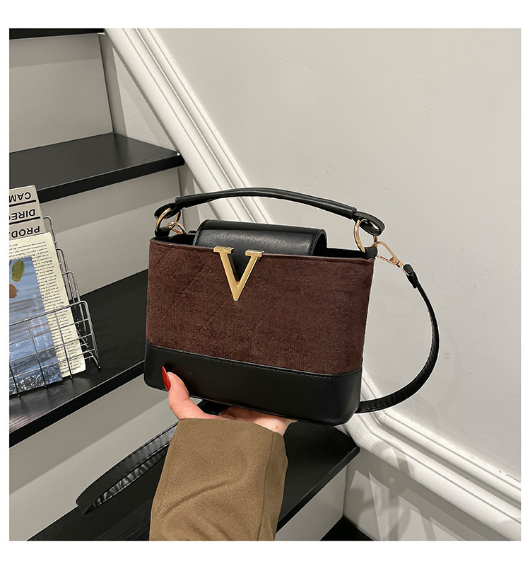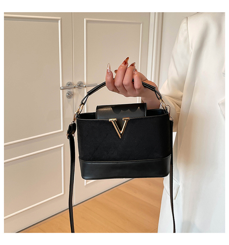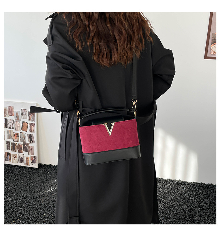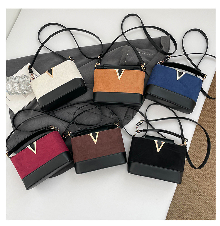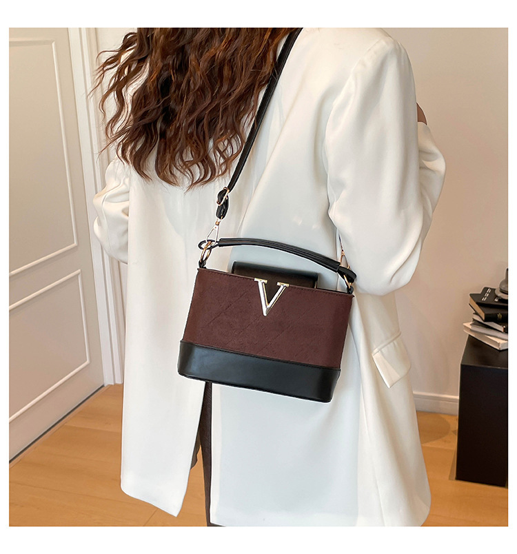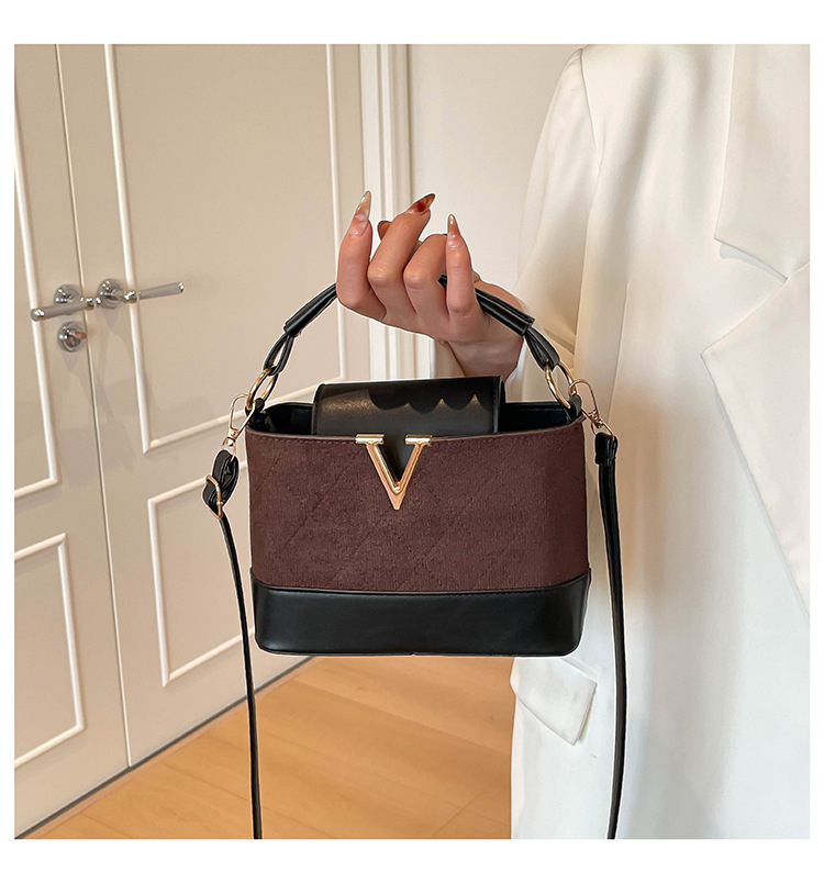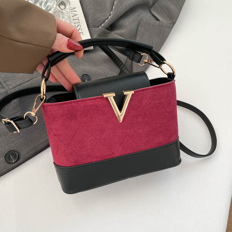跨境2025秋冬新款高级感时尚单肩包休闲百搭水桶包撞色潮流手提包