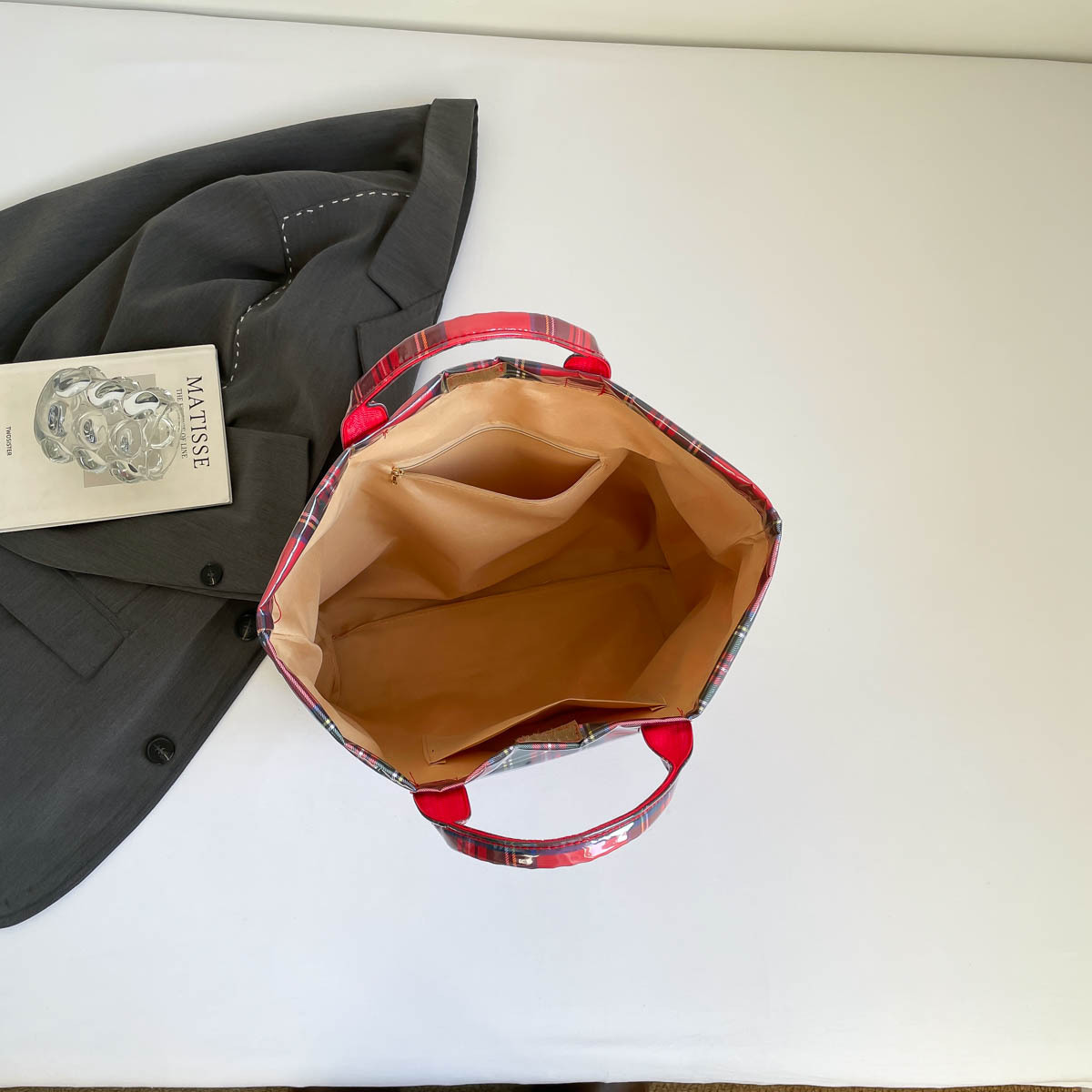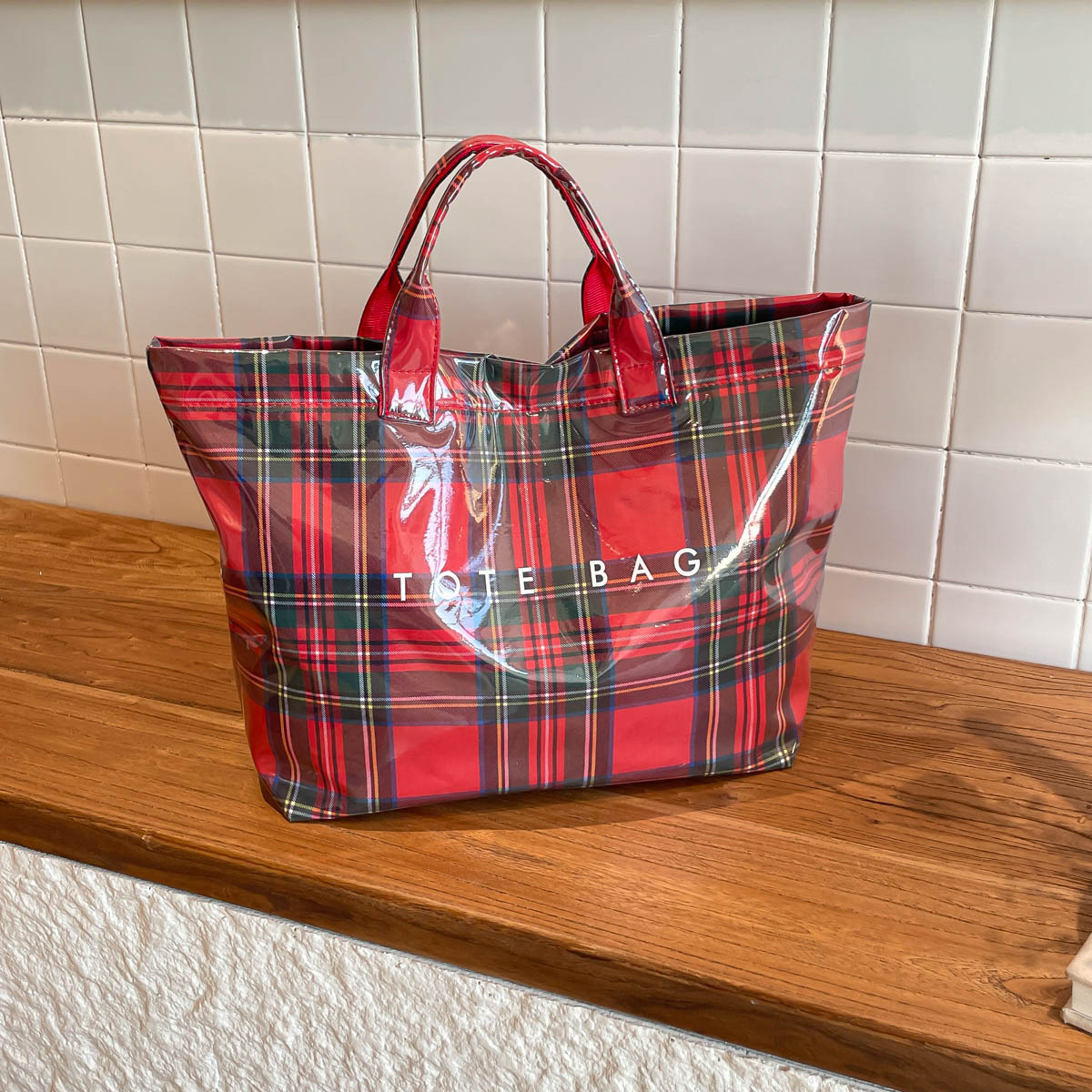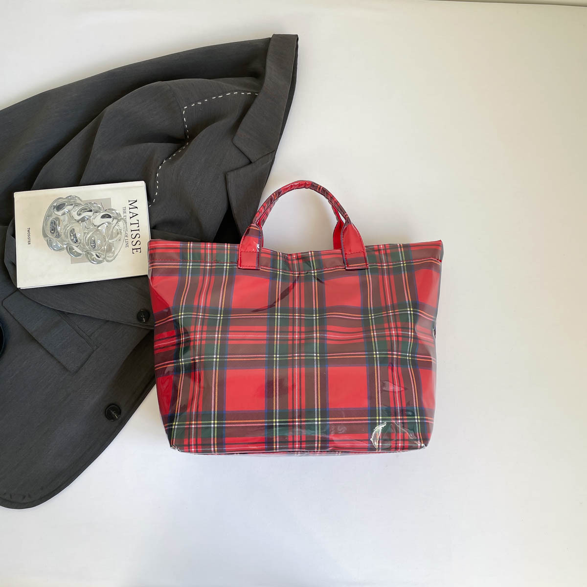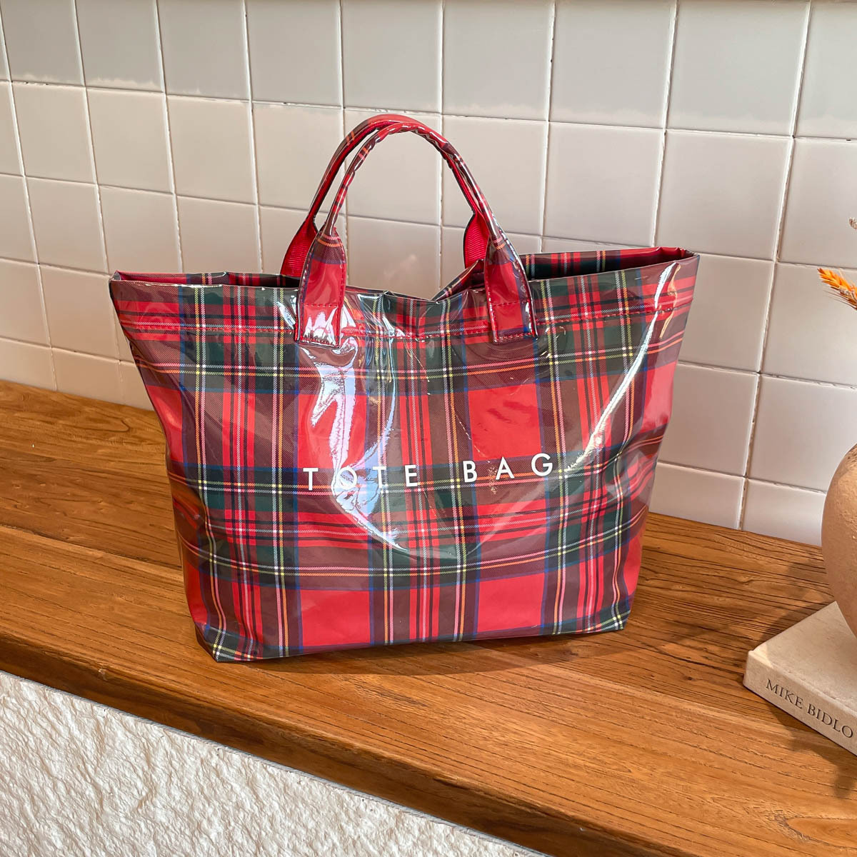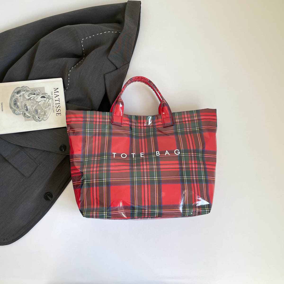 跨境爆款字母托特包2026新款透明简约大容量手提包复古格子女包