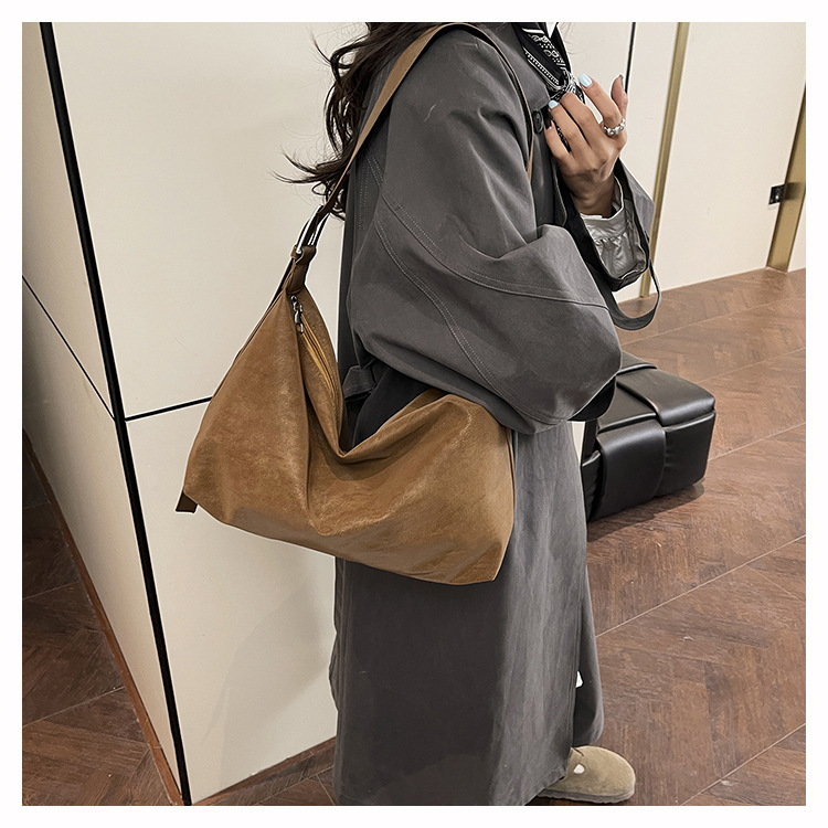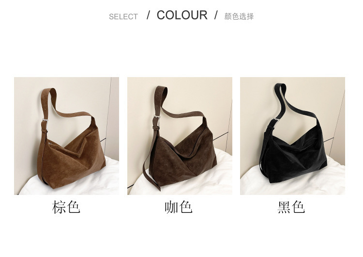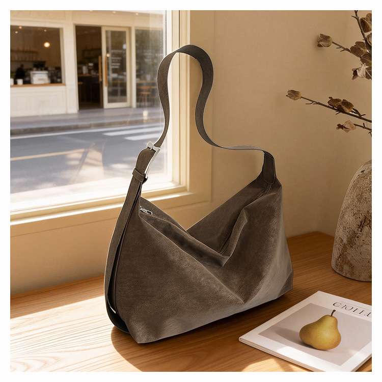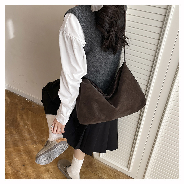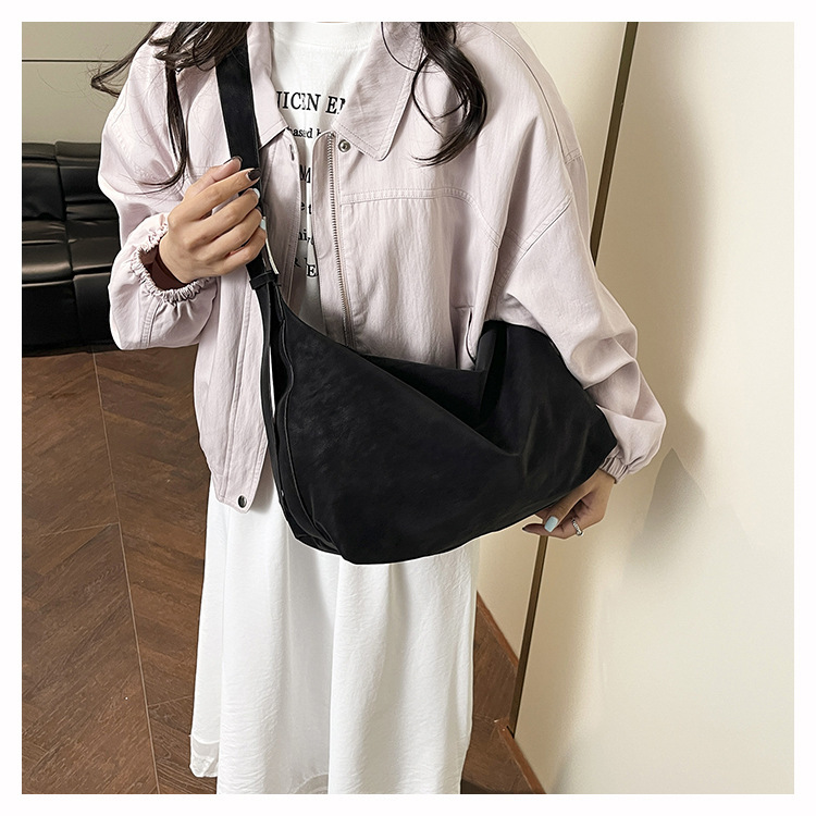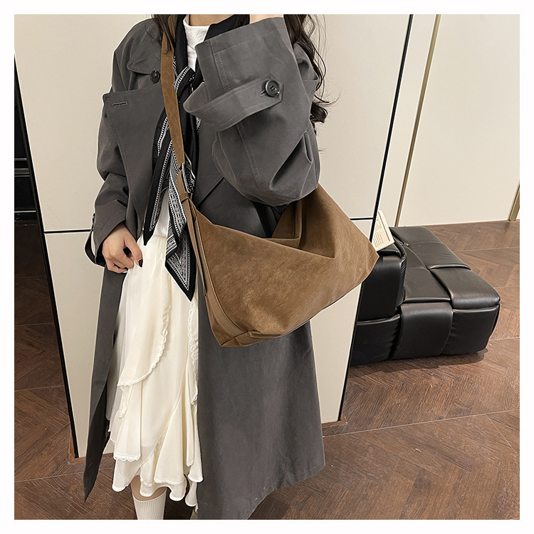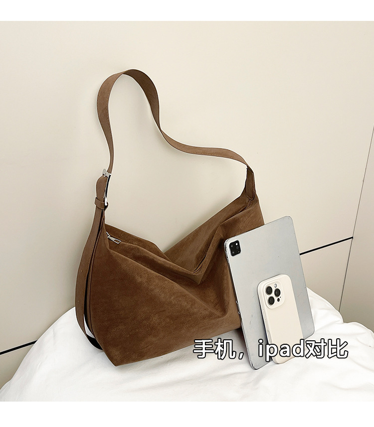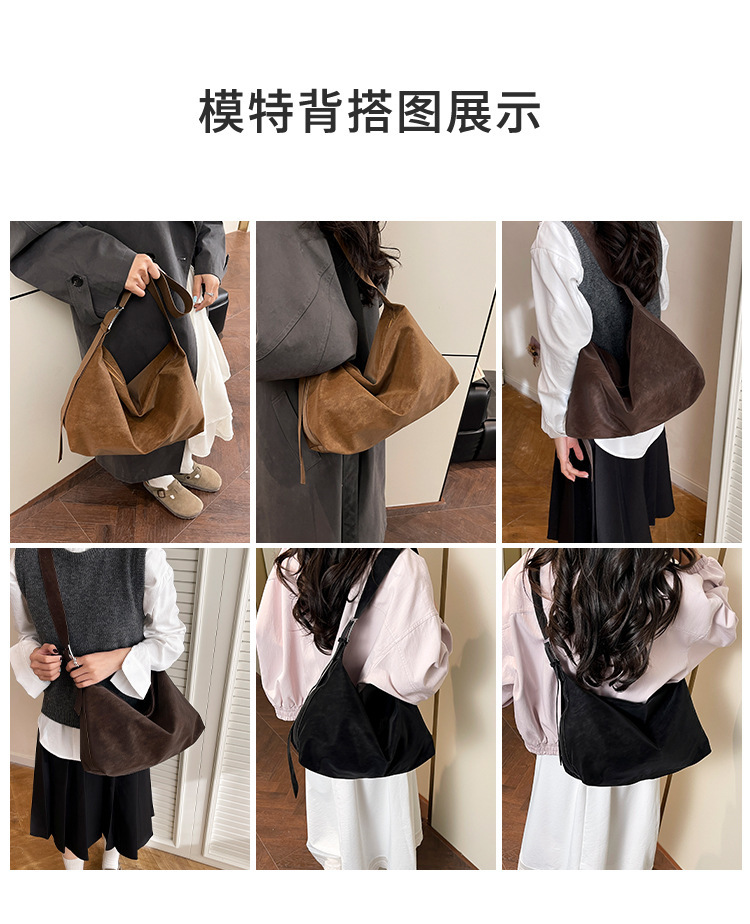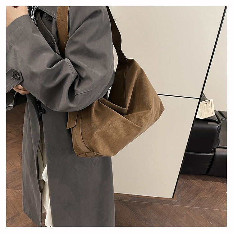 磨砂复古麂皮绒包包女2026新款单肩斜挎枕头包时尚百搭腋下托特包