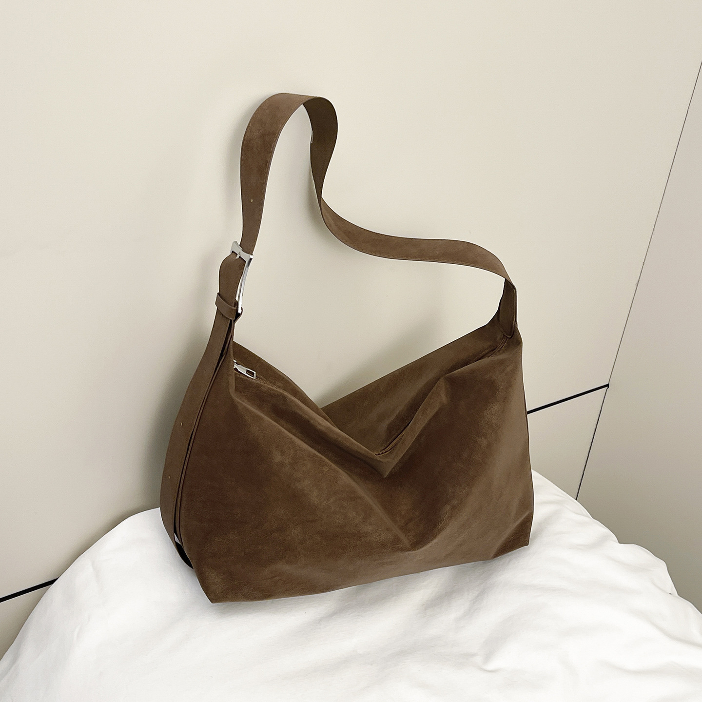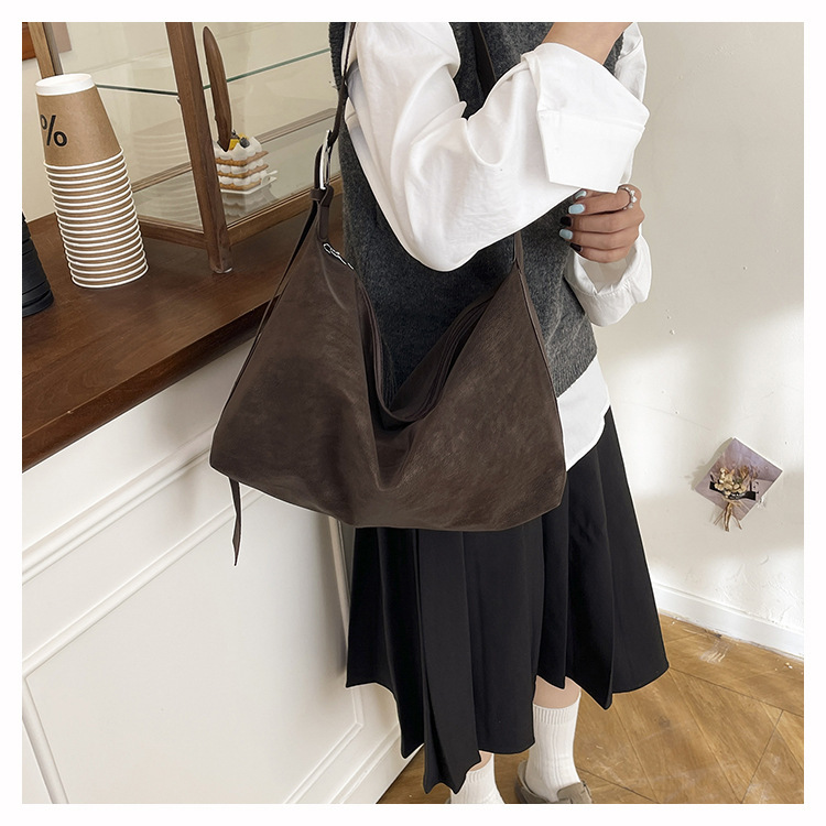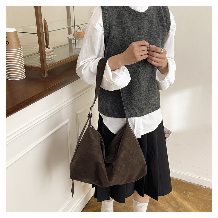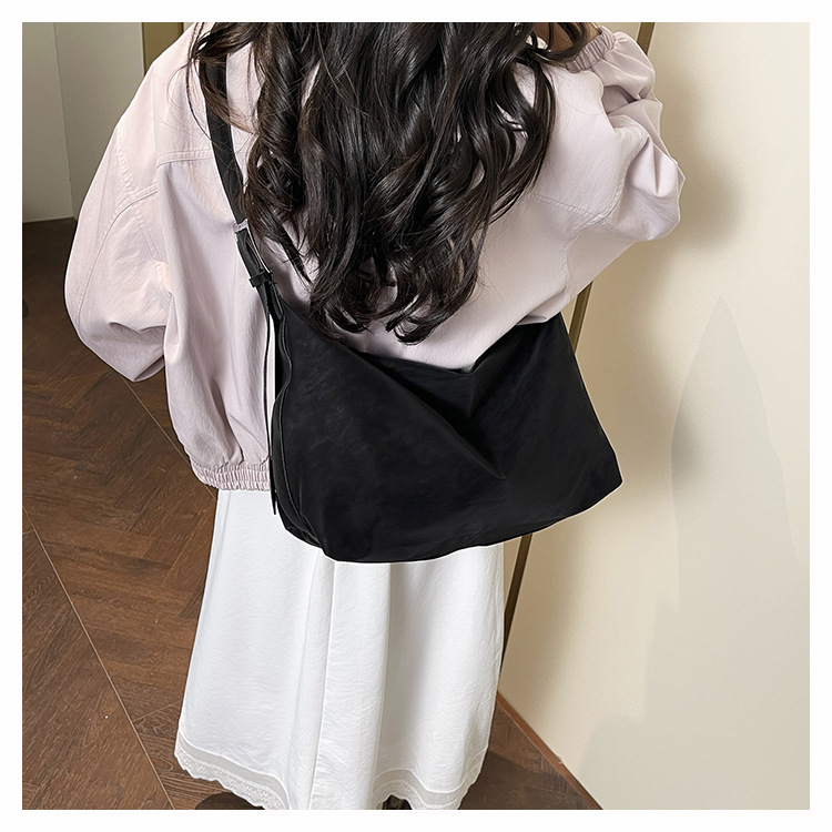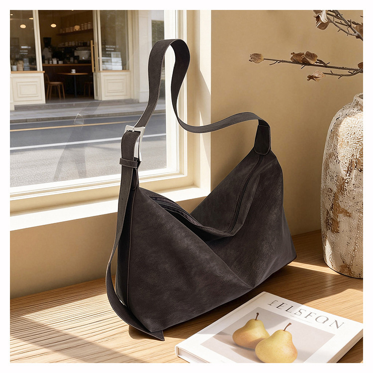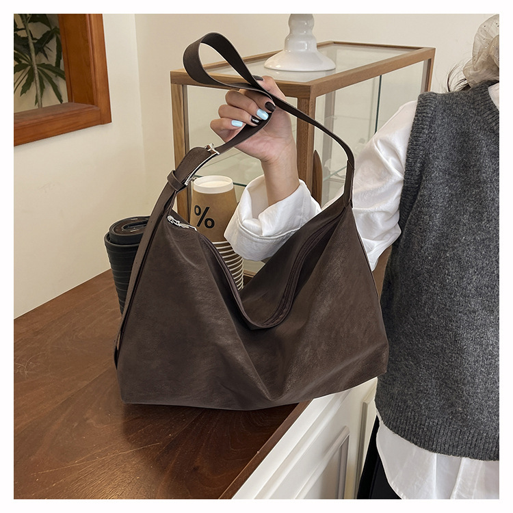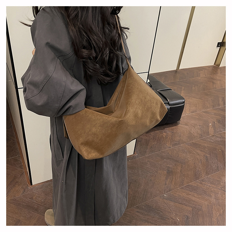 磨砂复古麂皮绒包包女2026新款单肩斜挎枕头包时尚百搭腋下托特包
