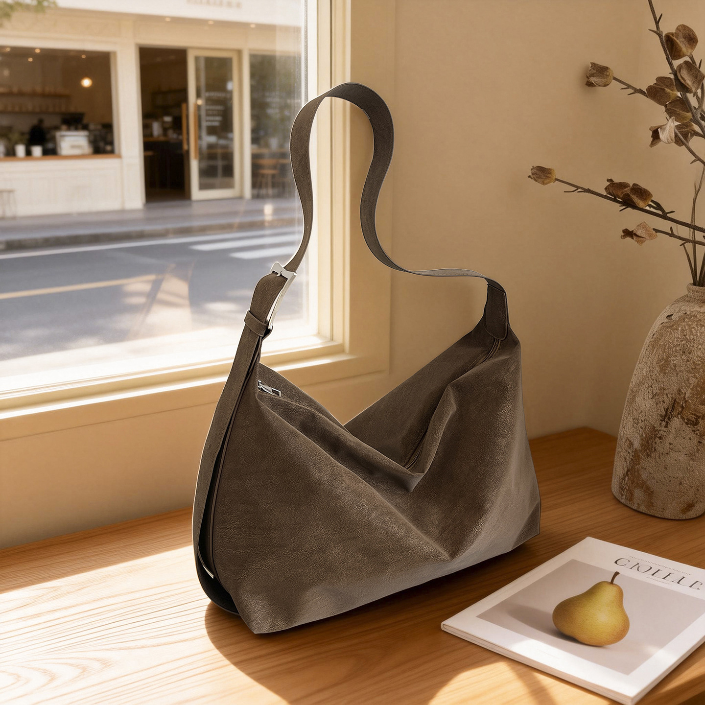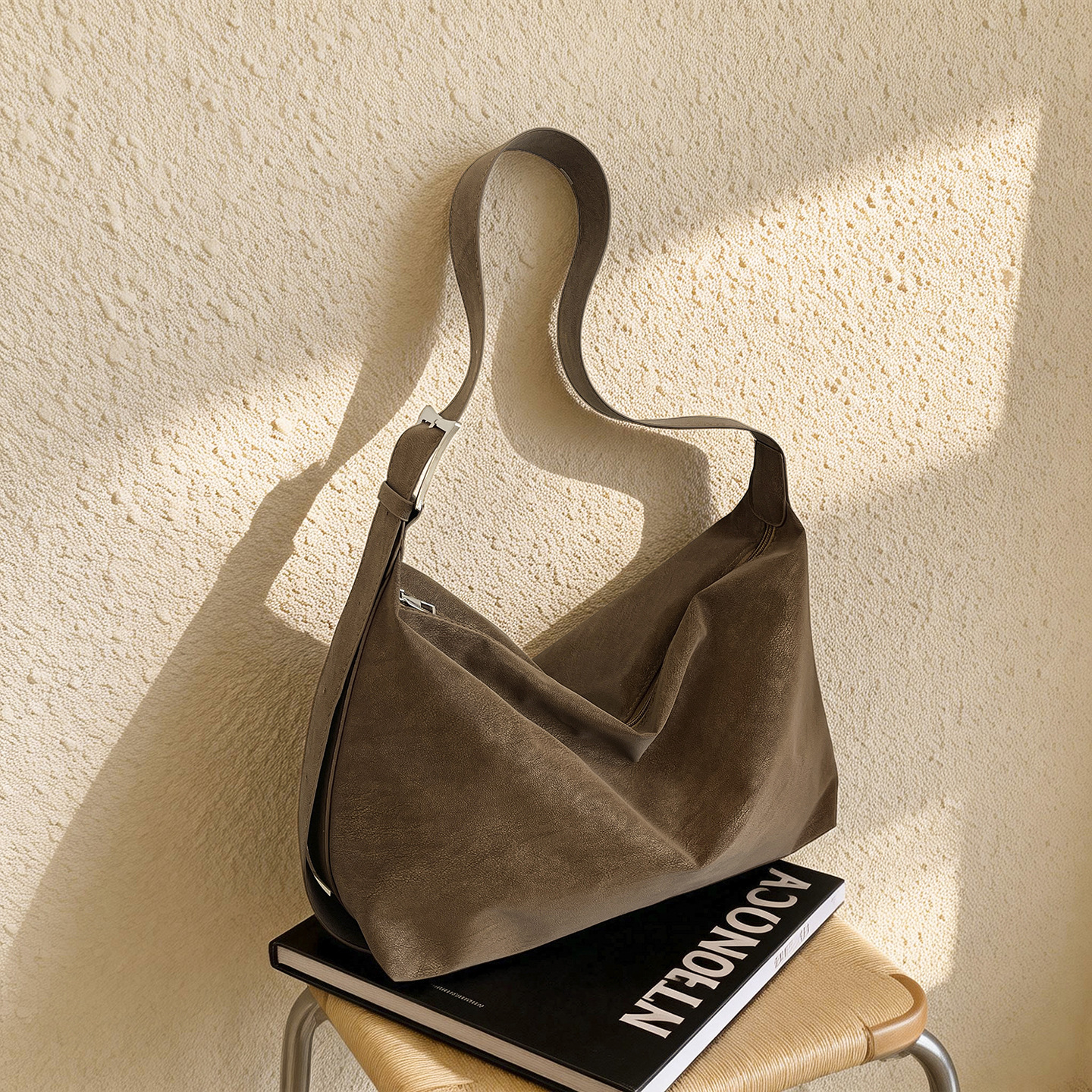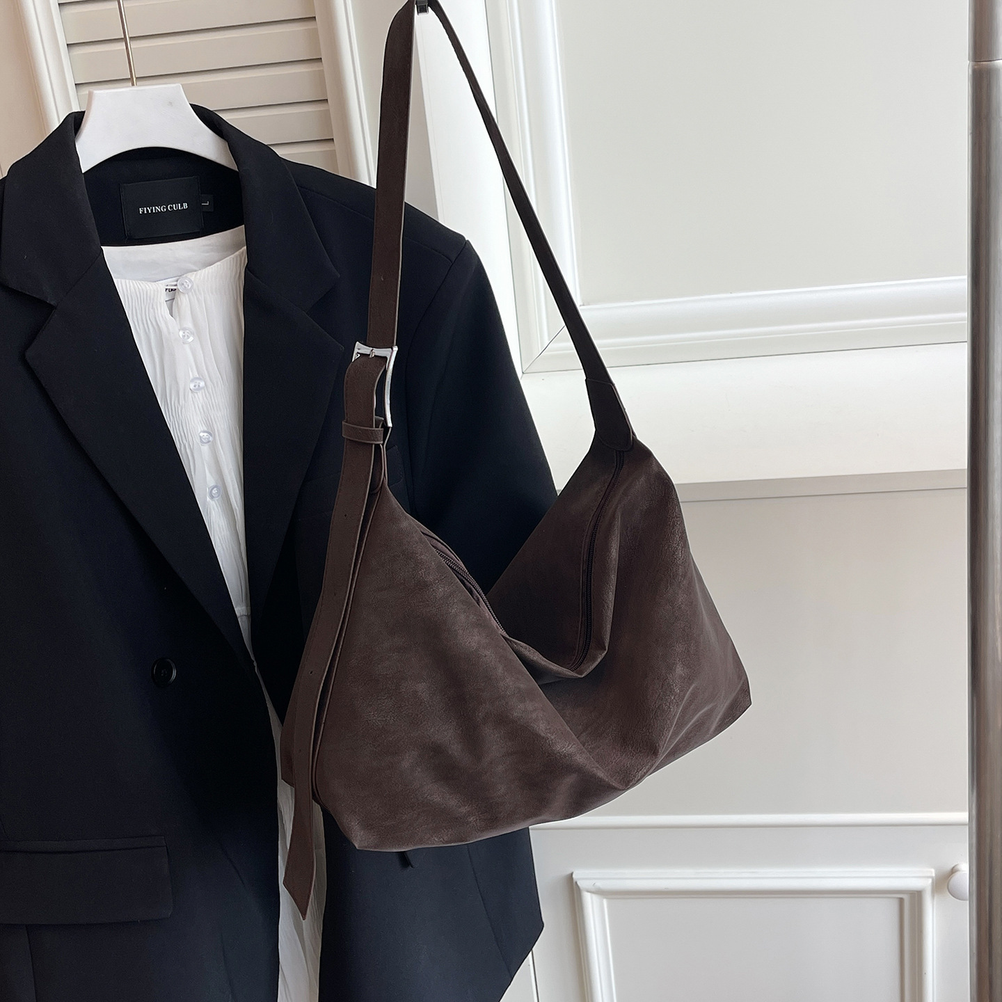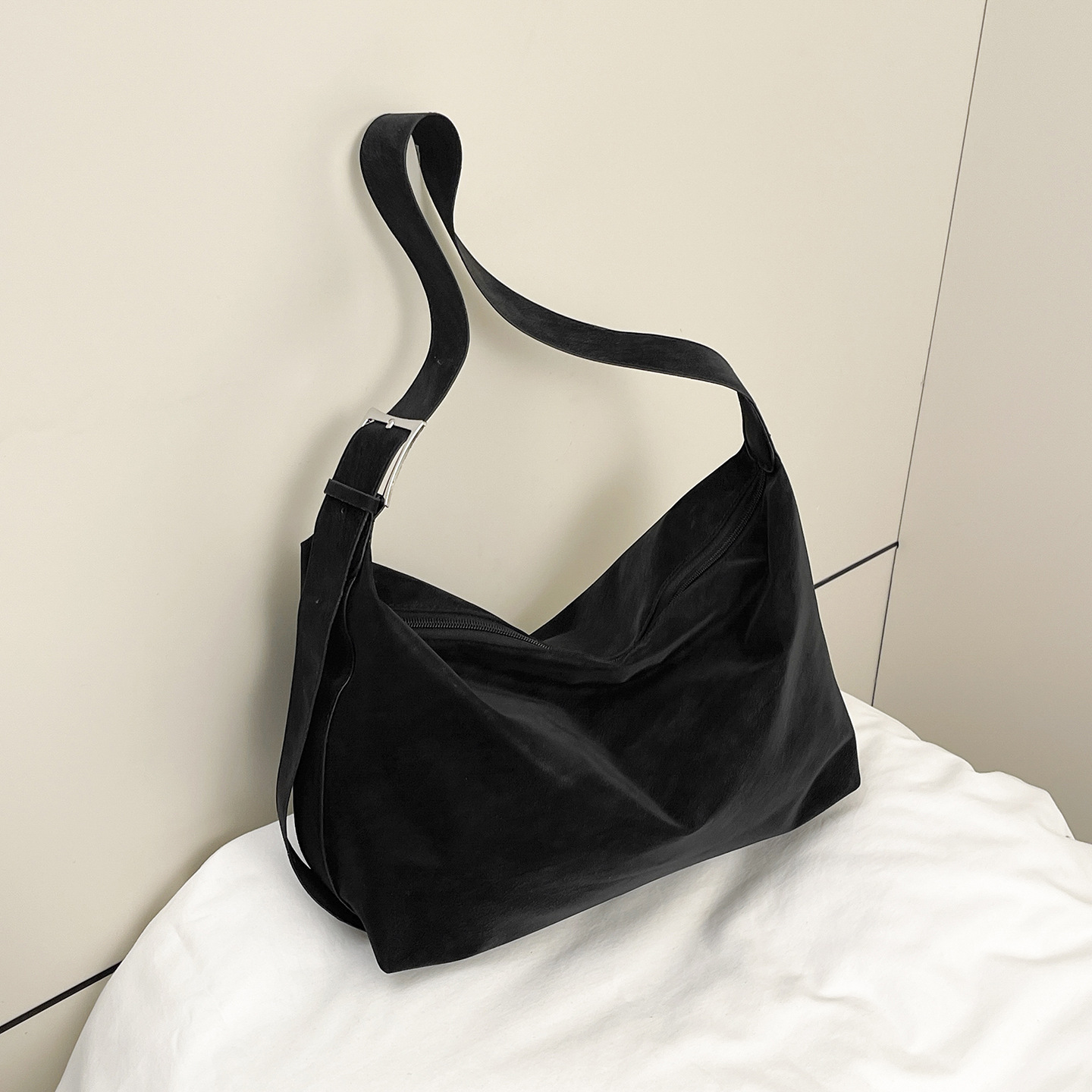 磨砂复古麂皮绒包包女2026新款单肩斜挎枕头包时尚百搭腋下托特包
