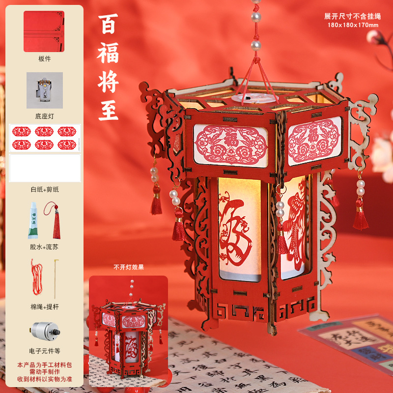 马年灯笼2026国潮马年手工diy材料包儿童手提花灯发光灯笼元宵活