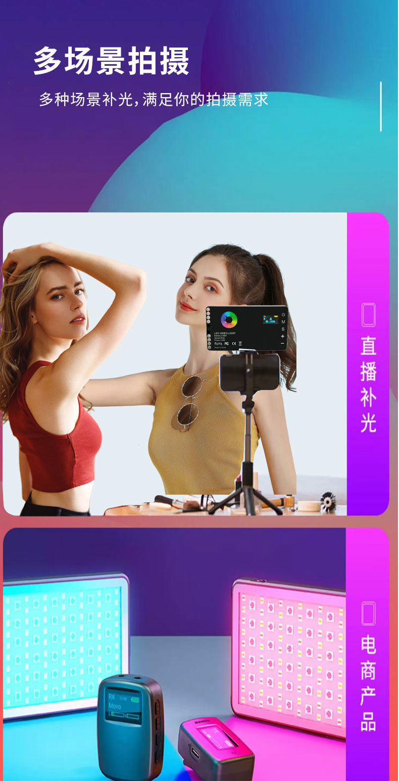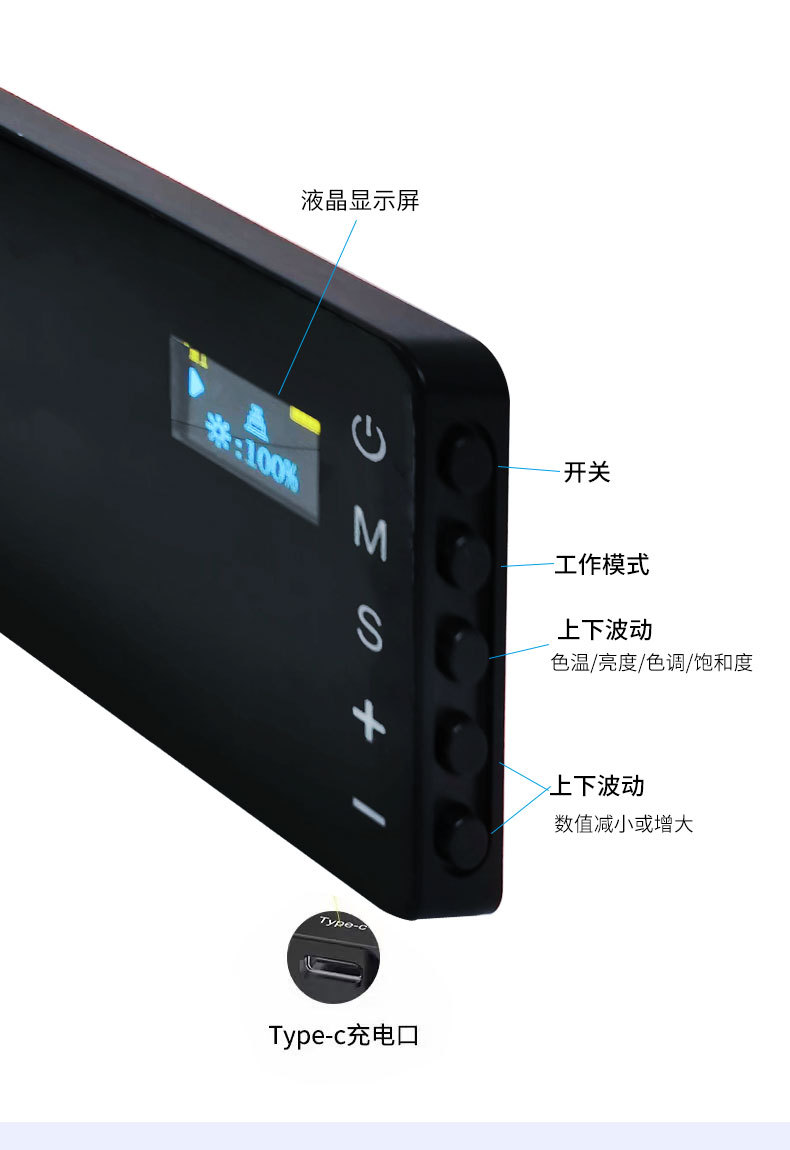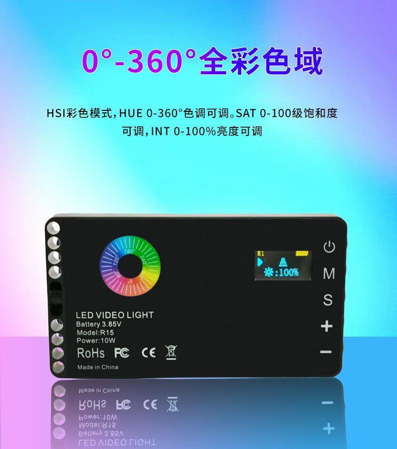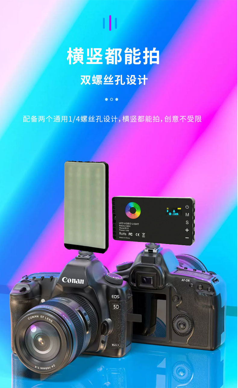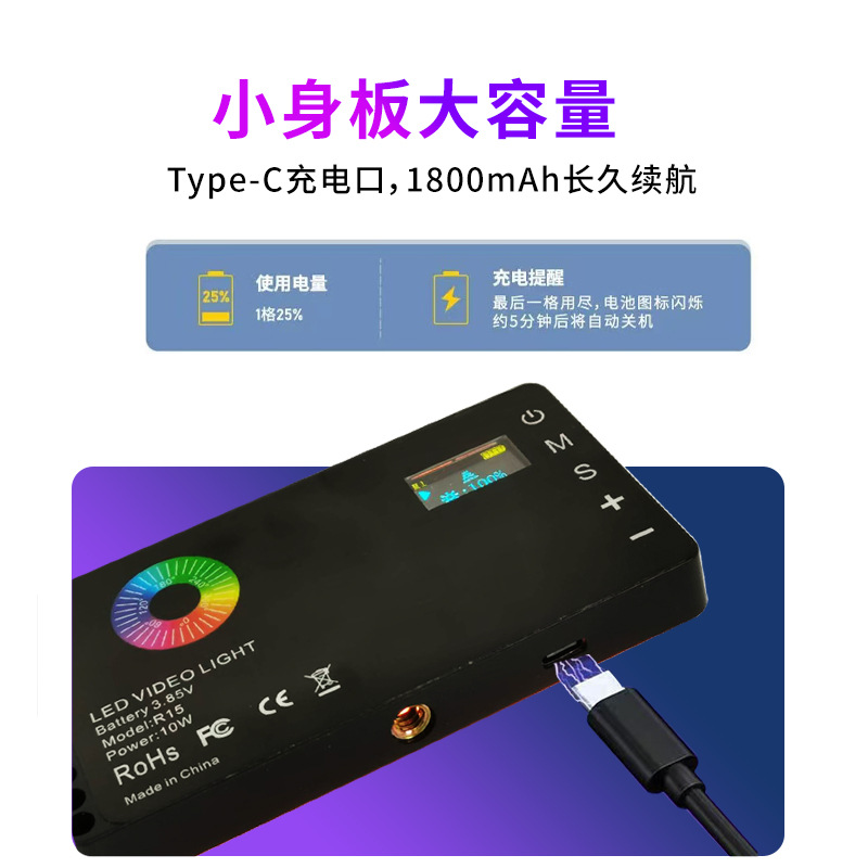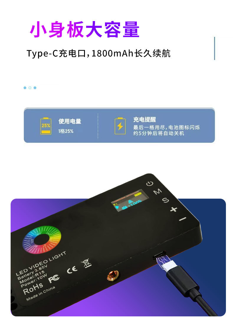 批发RGB数显口袋补光灯二代全彩便携灯抖音 摄影户外直播打光灯