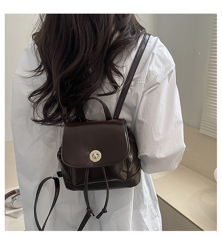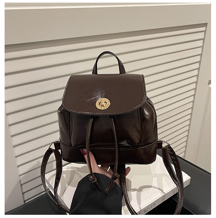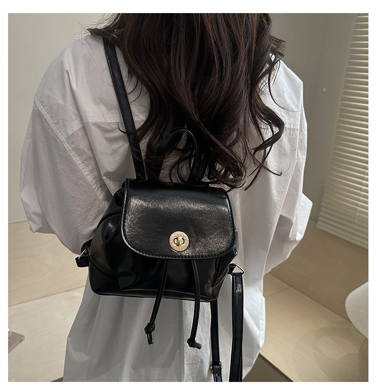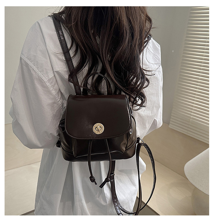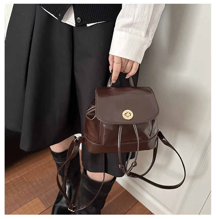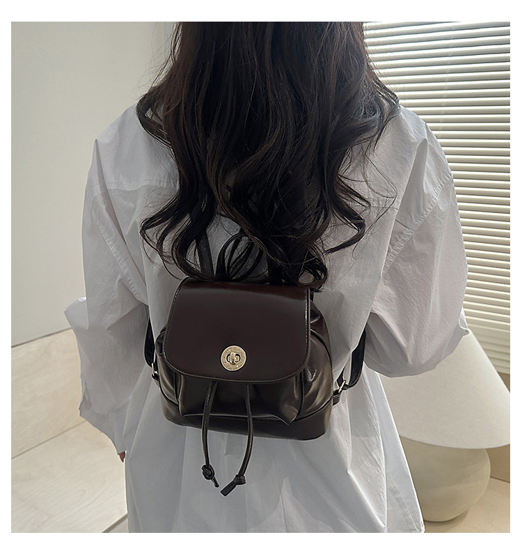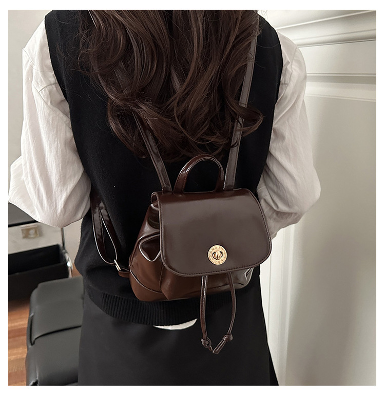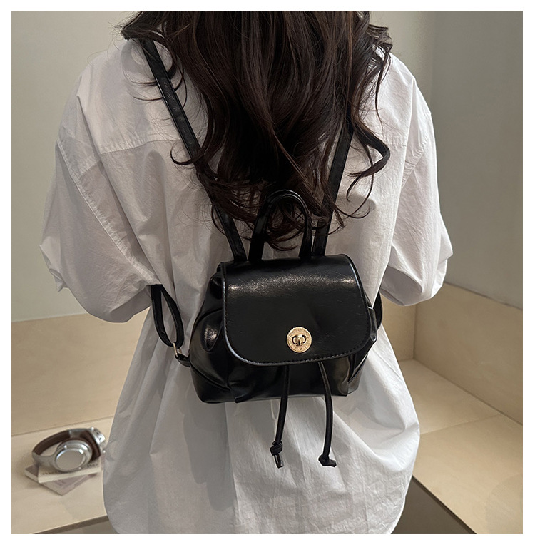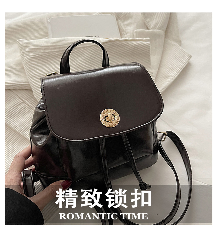 韩系休闲纯色质感外出2026新款大容量学院锁扣单肩双肩小背包