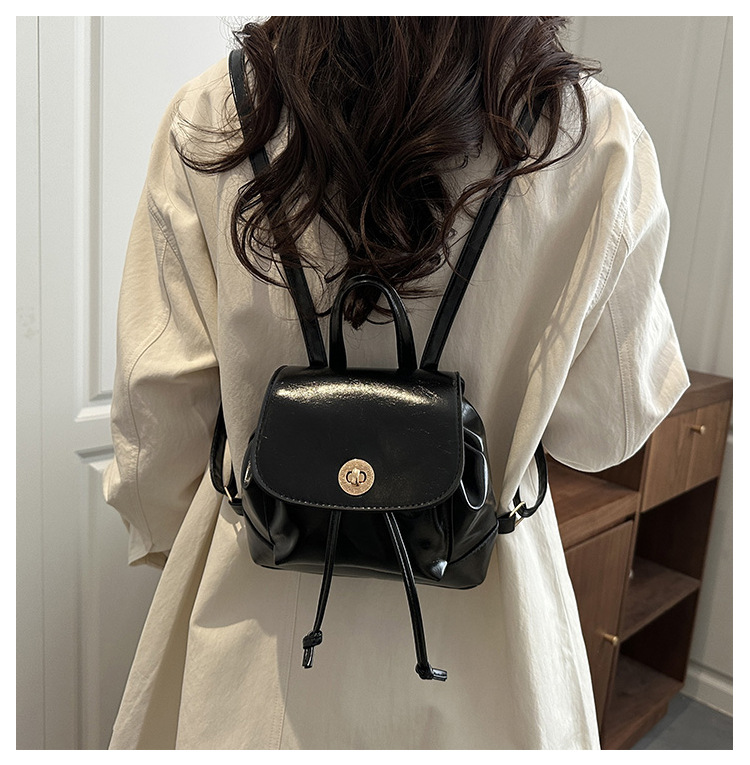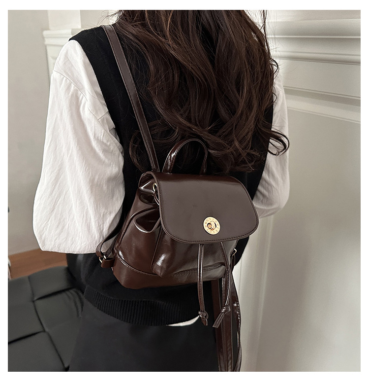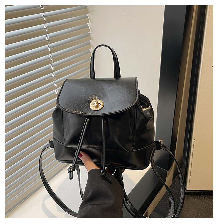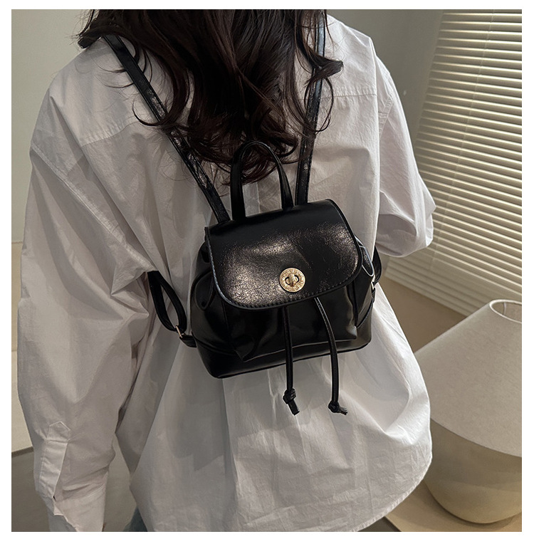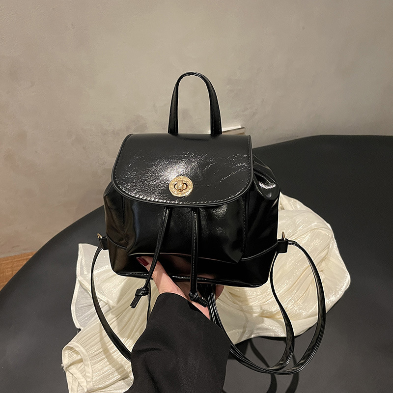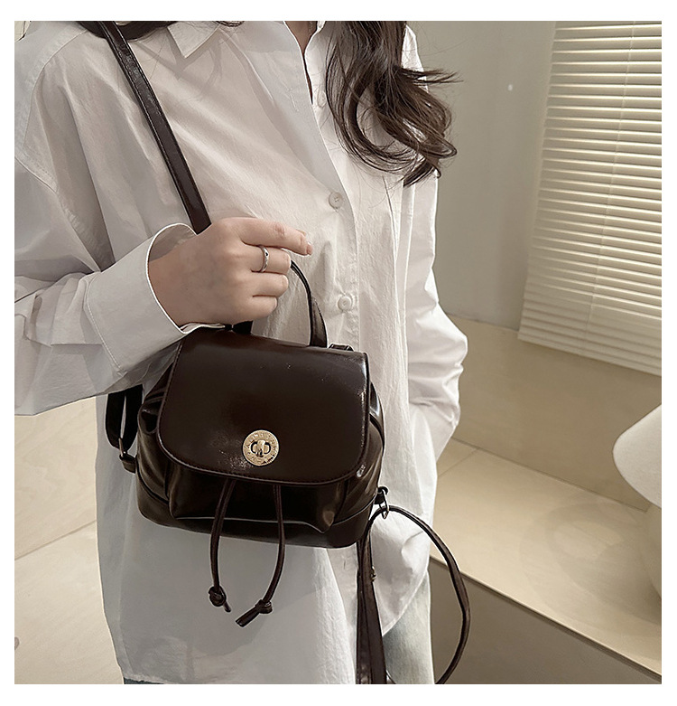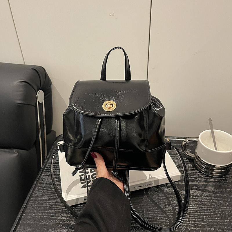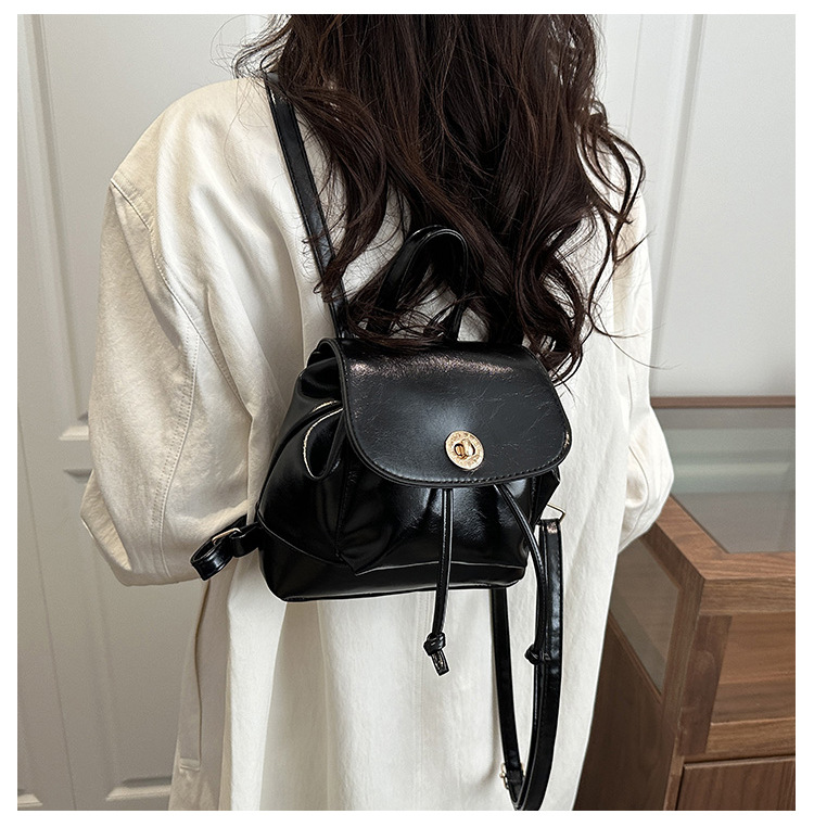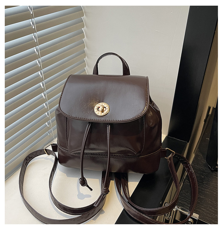 韩系休闲纯色质感外出2026新款大容量学院锁扣单肩双肩小背包