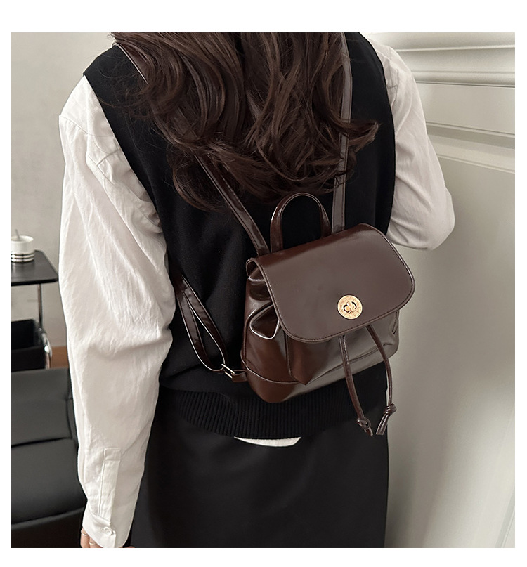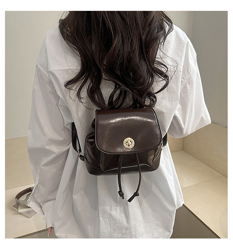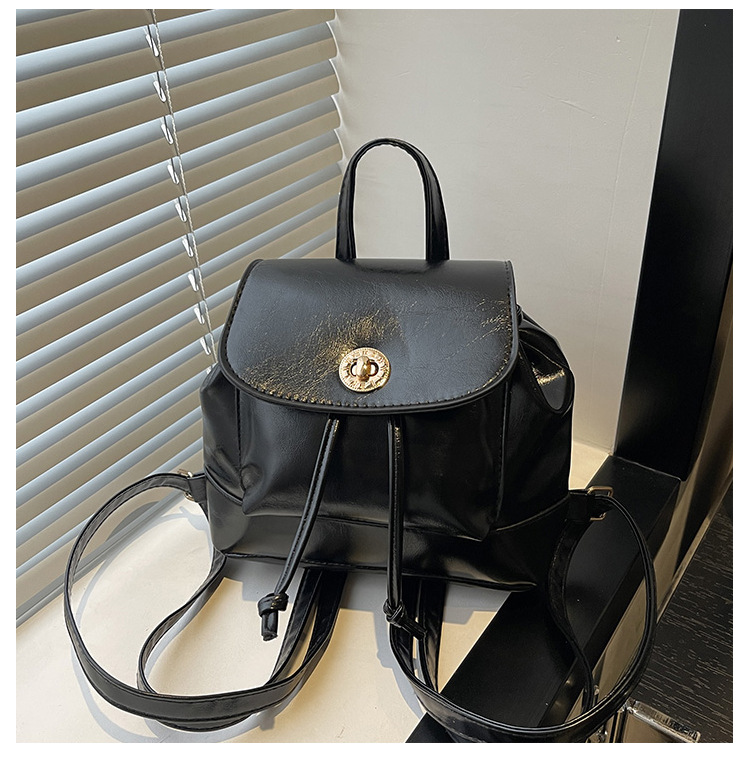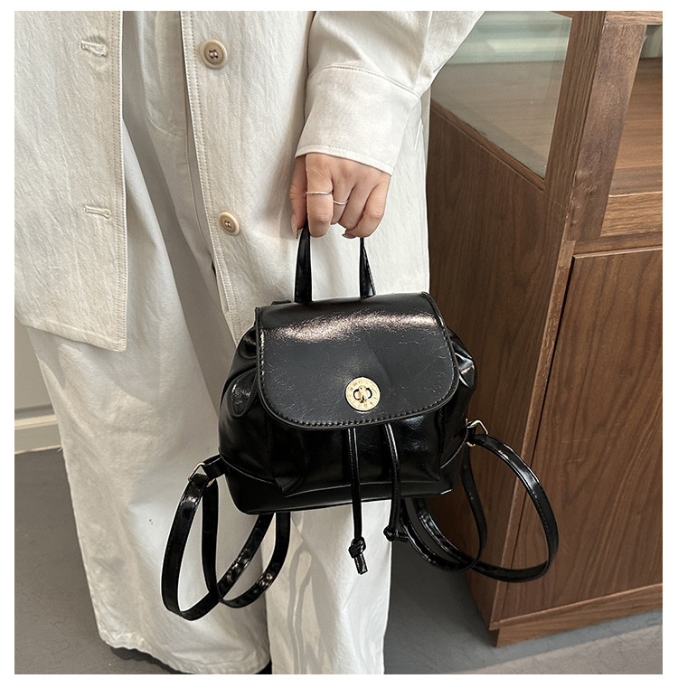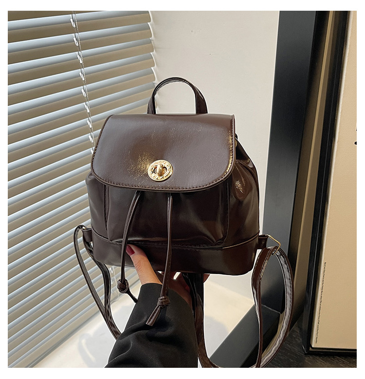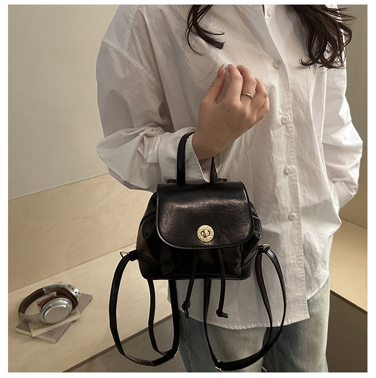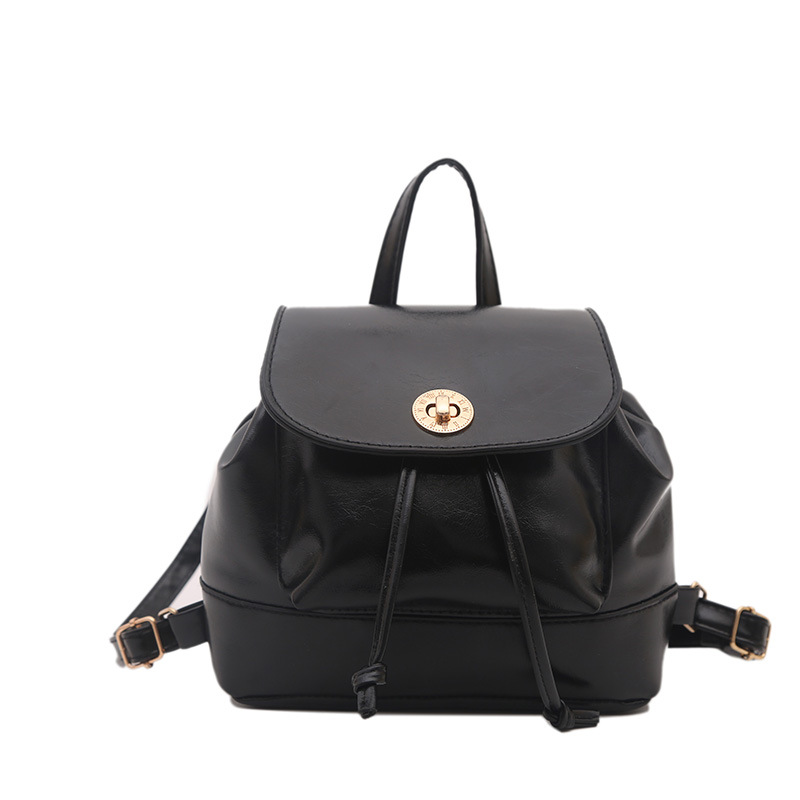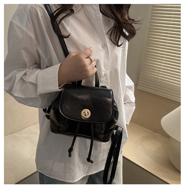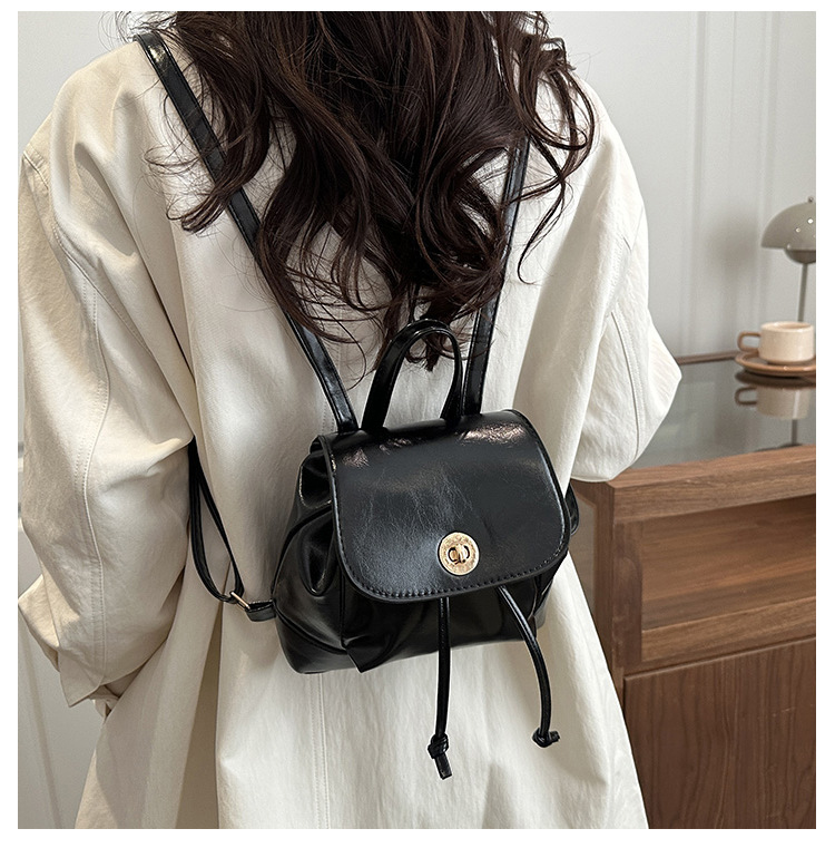 韩系休闲纯色质感外出2026新款大容量学院锁扣单肩双肩小背包
