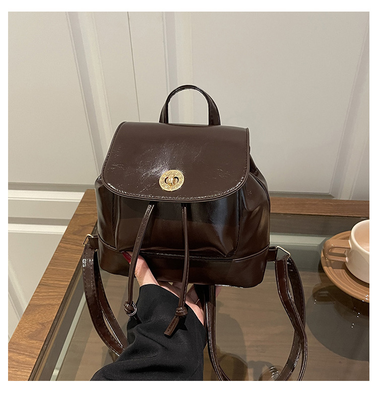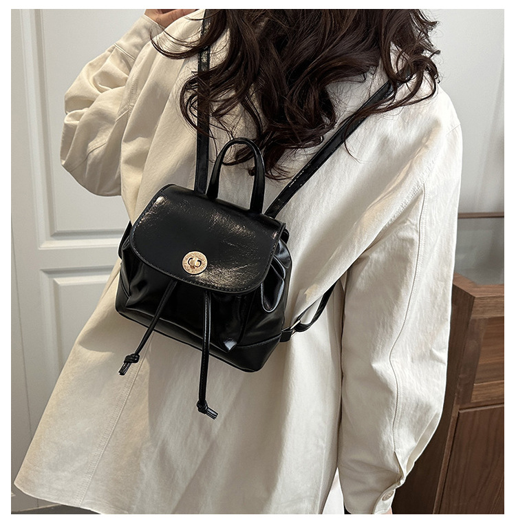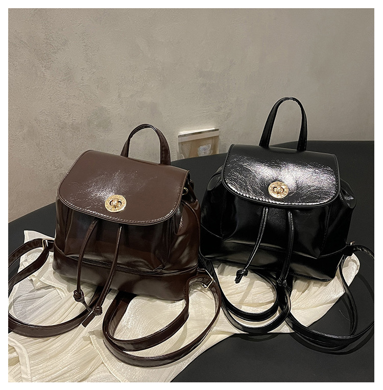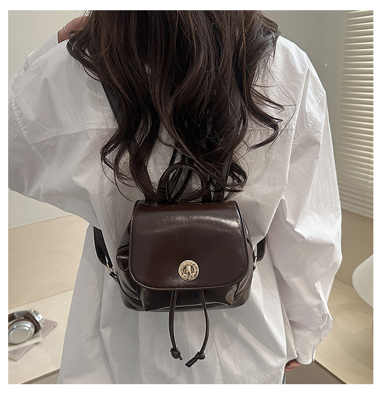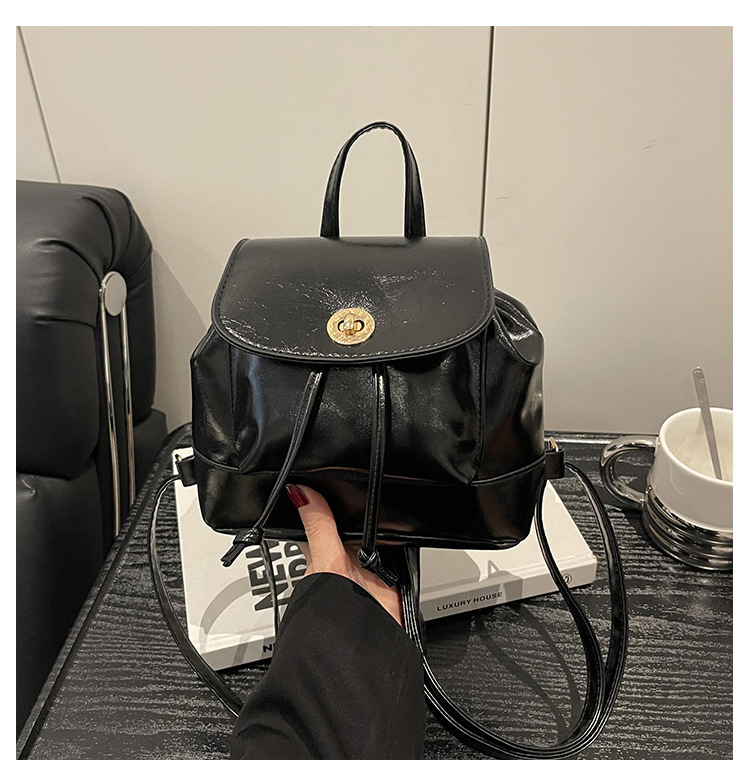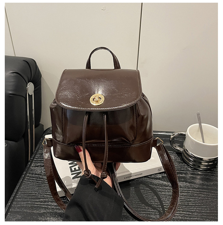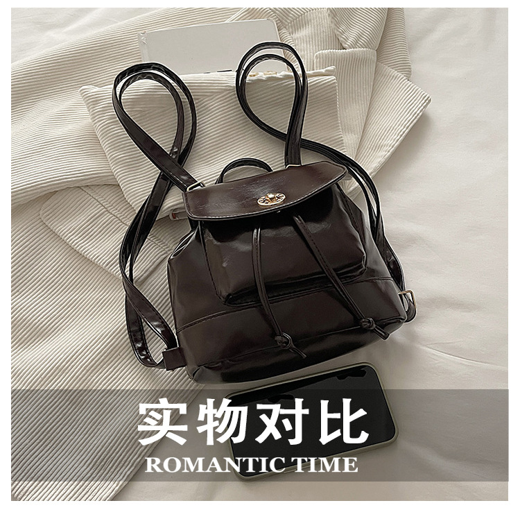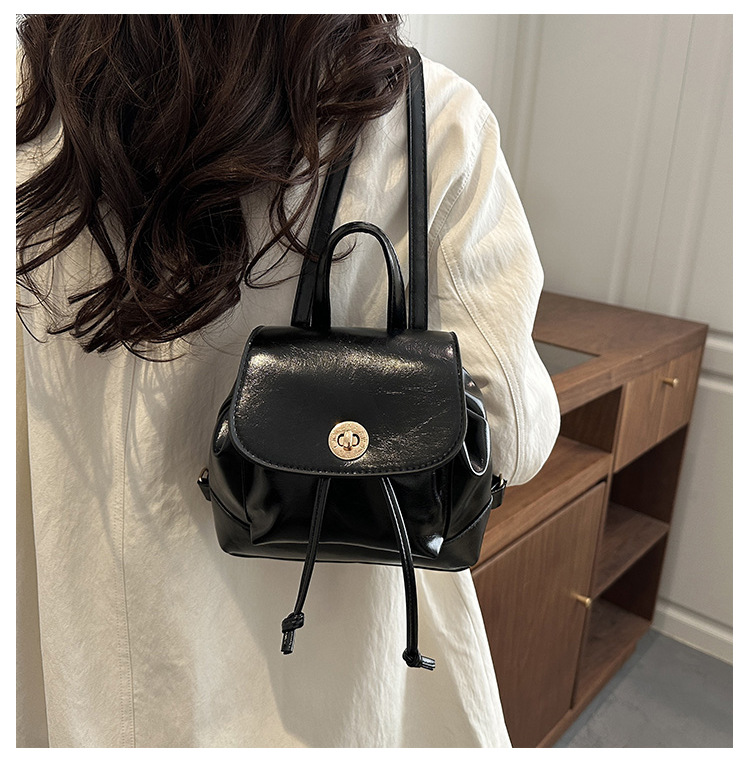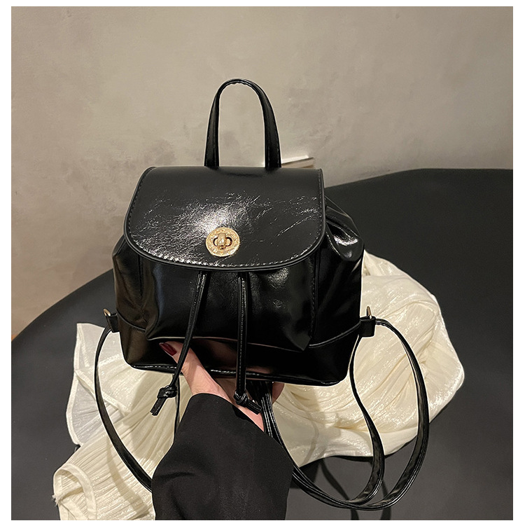 韩系休闲纯色质感外出2026新款大容量学院锁扣单肩双肩小背包