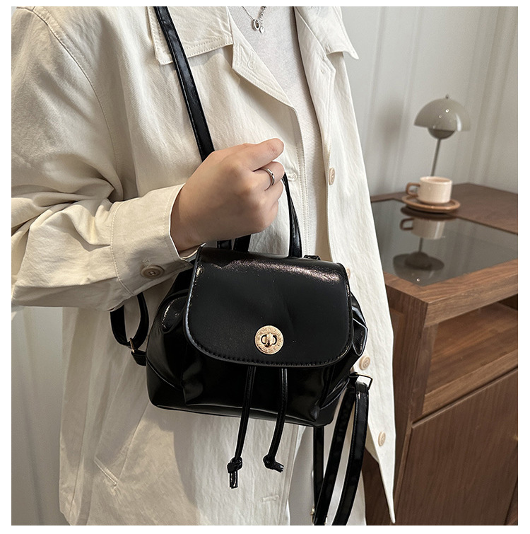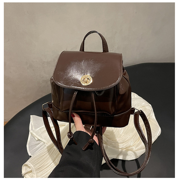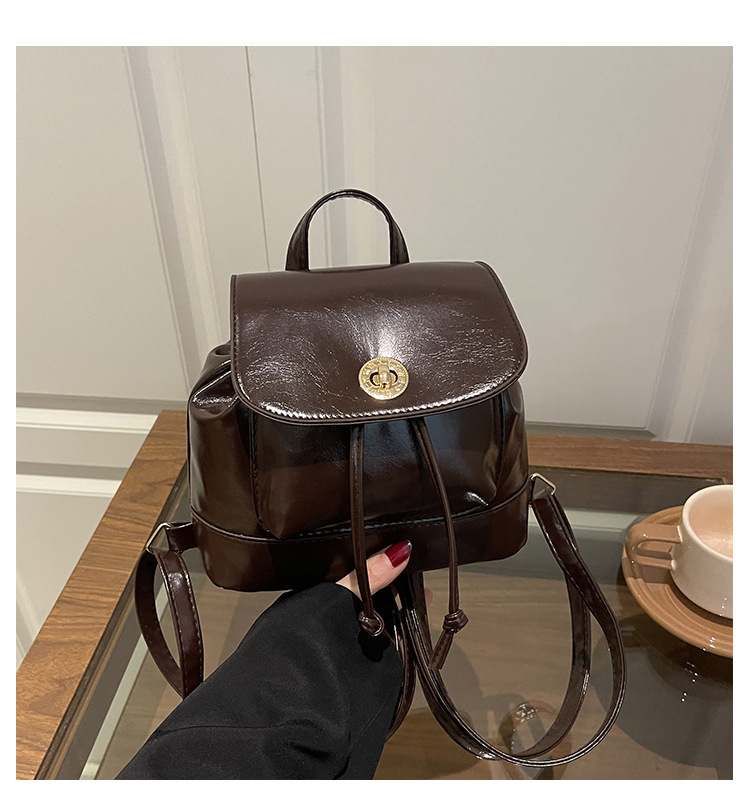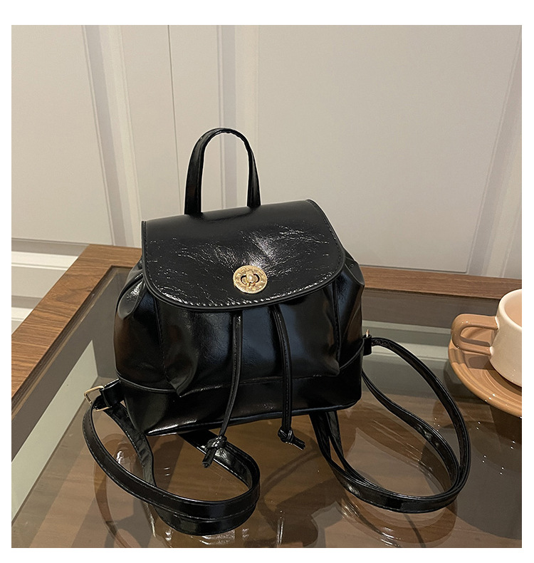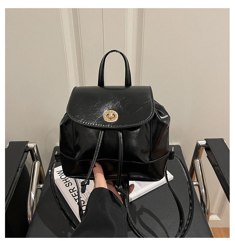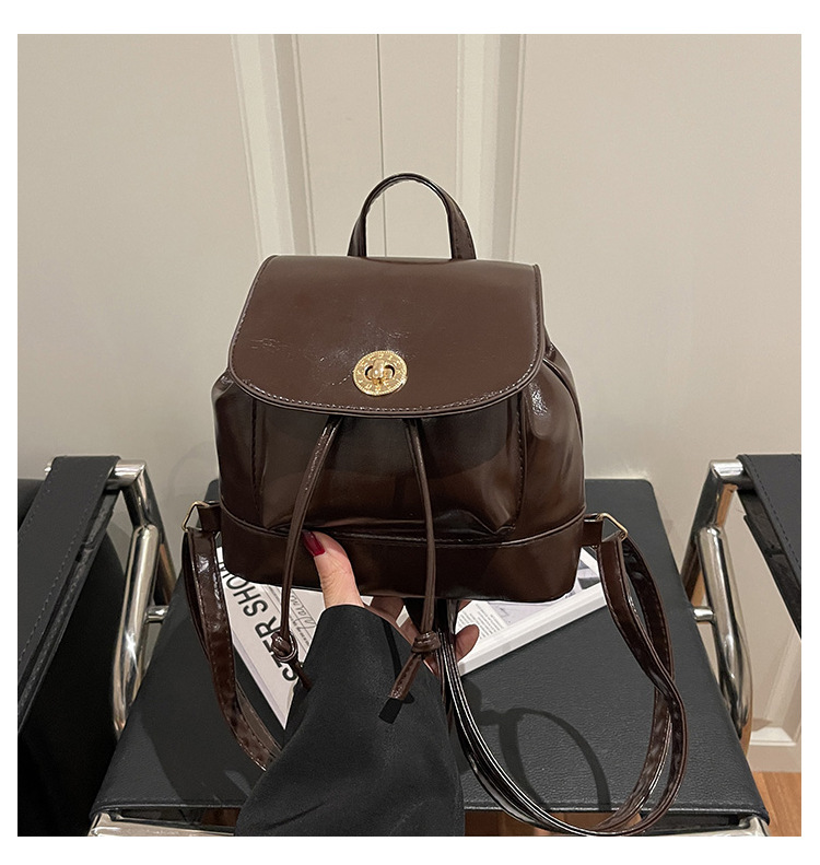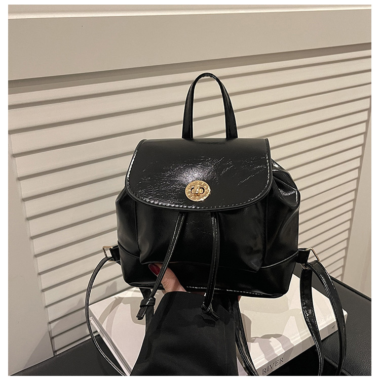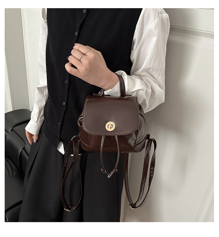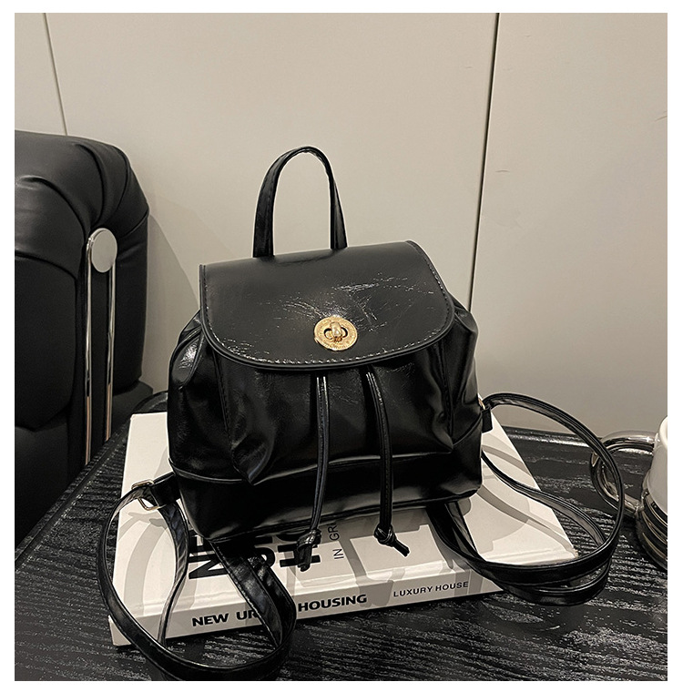 韩系休闲纯色质感外出2026新款大容量学院锁扣单肩双肩小背包