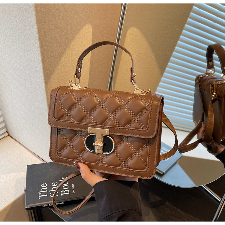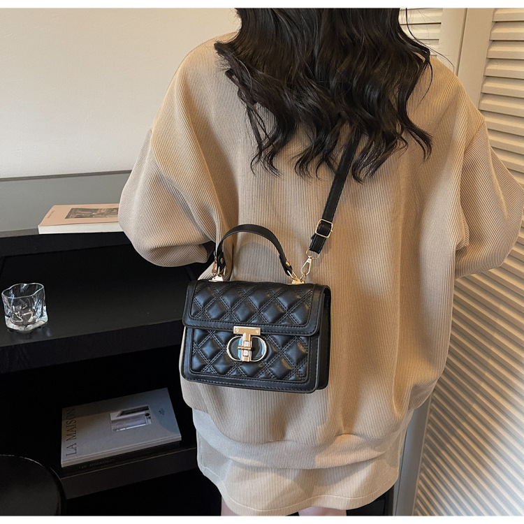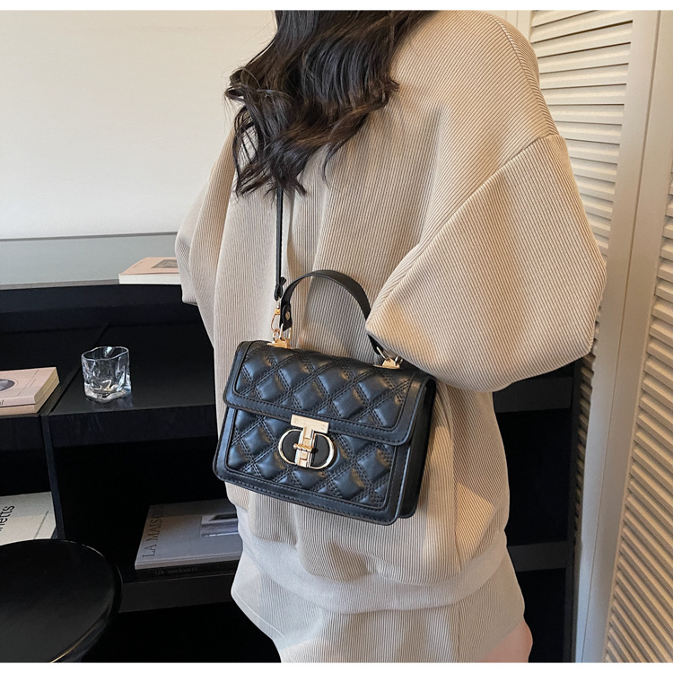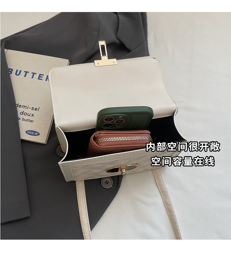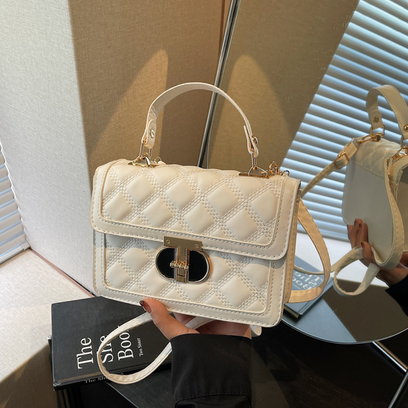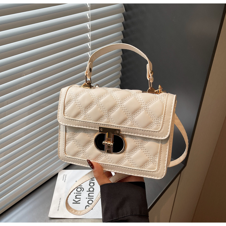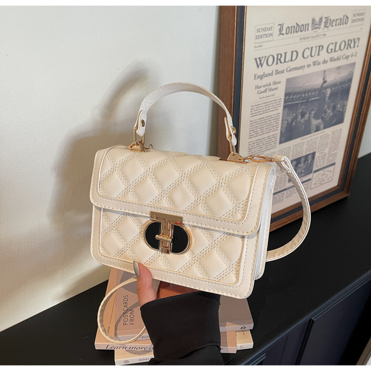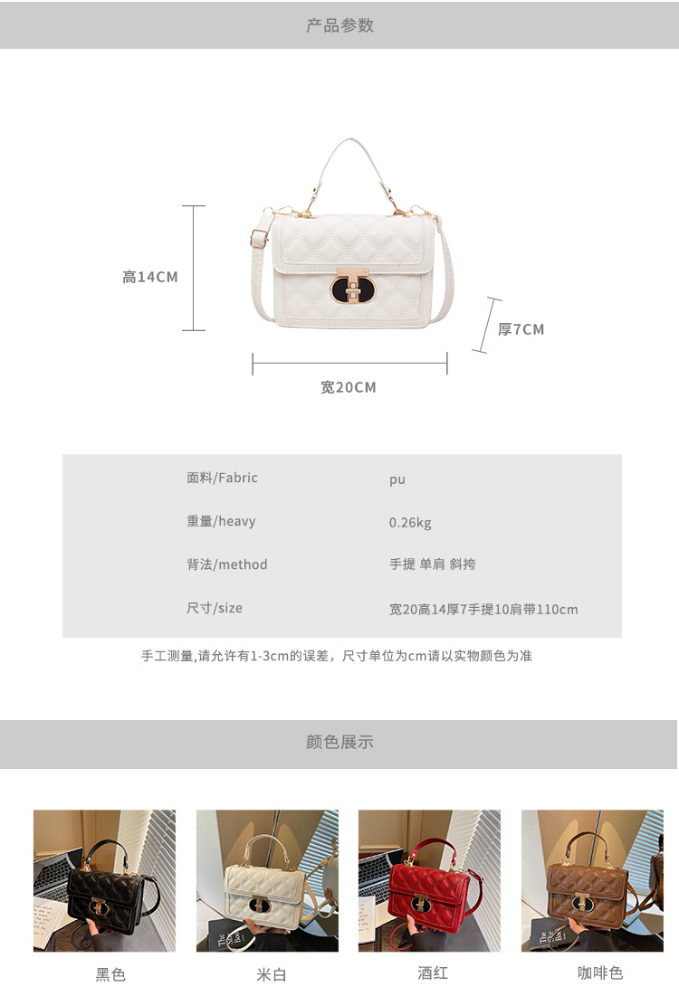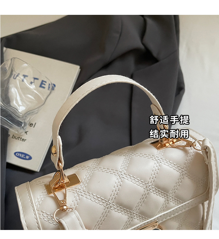 高级简约小包包女2026新款菱格绣线手提包百搭通勤斜挎小方包