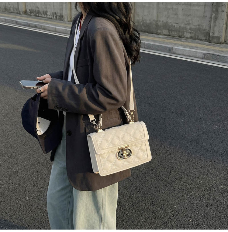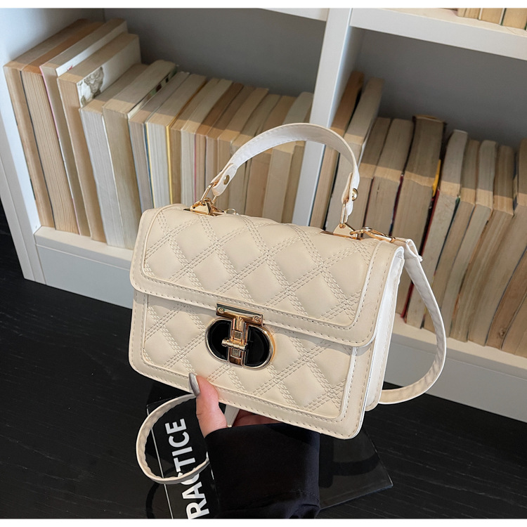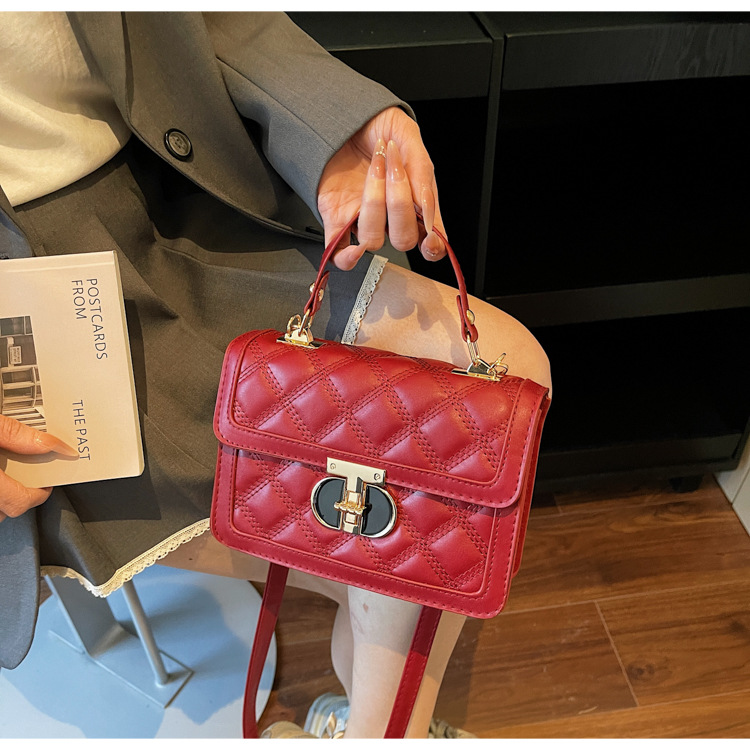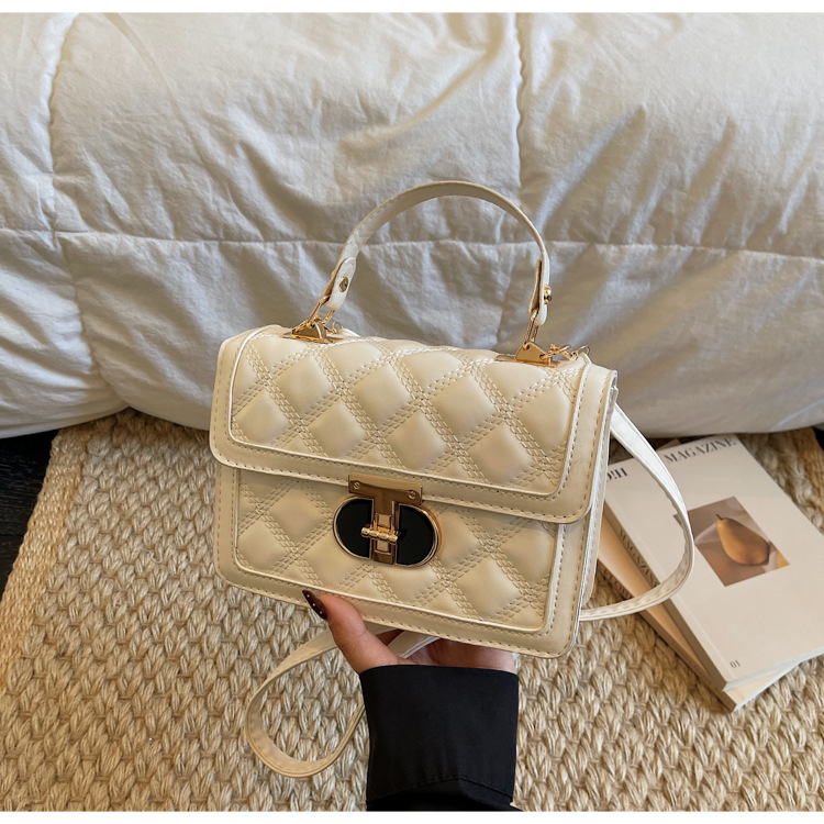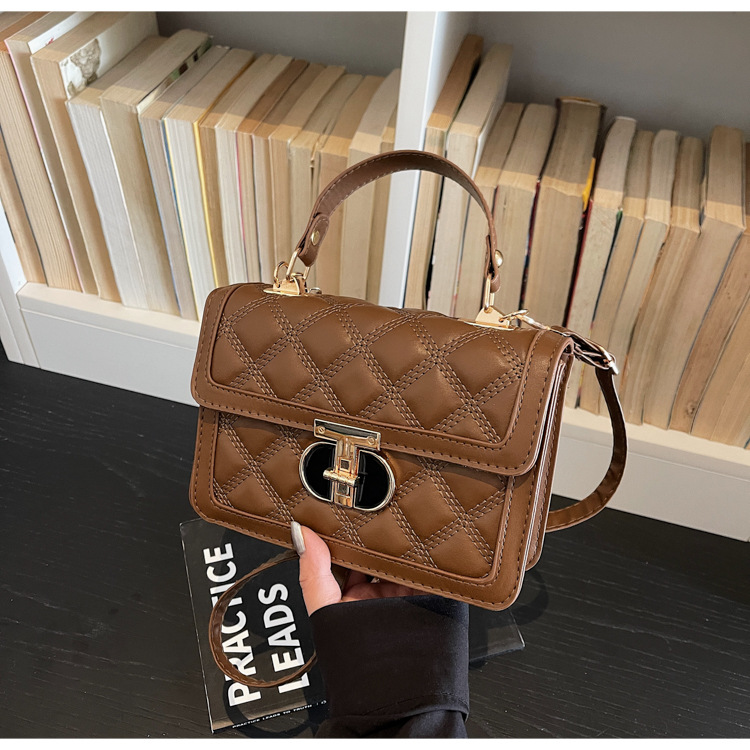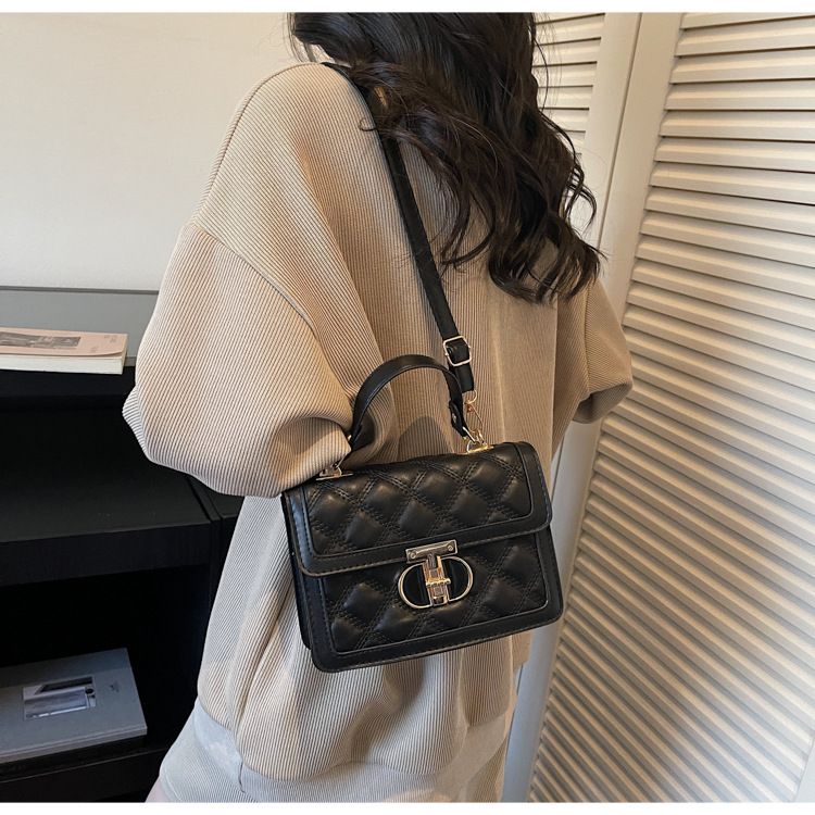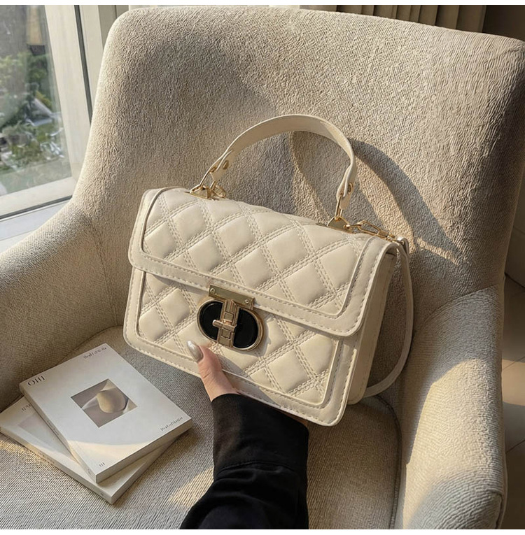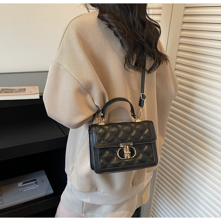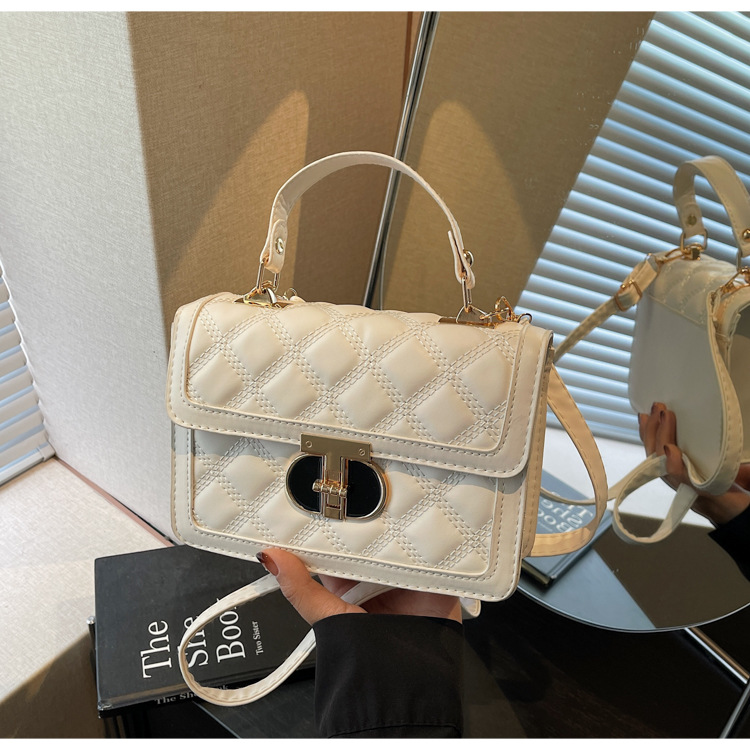 高级简约小包包女2026新款菱格绣线手提包百搭通勤斜挎小方包