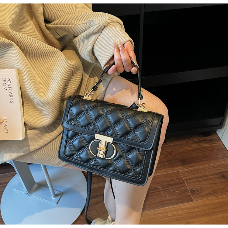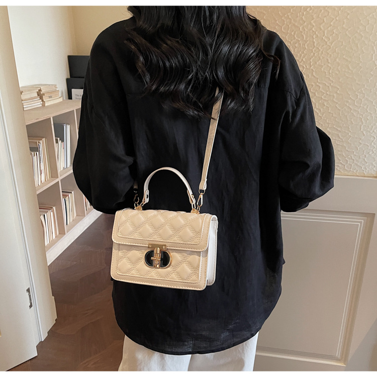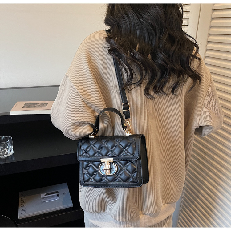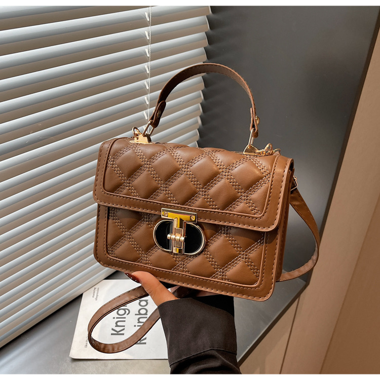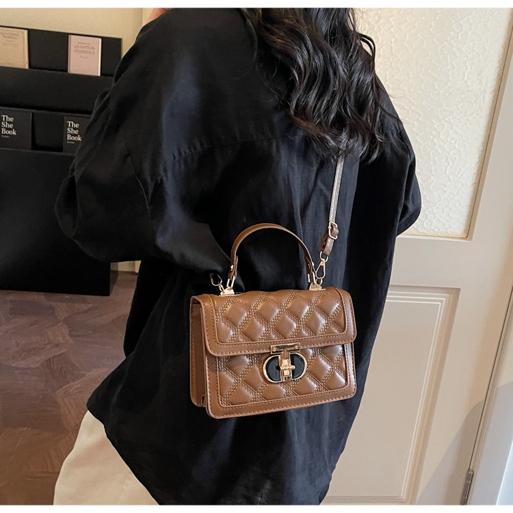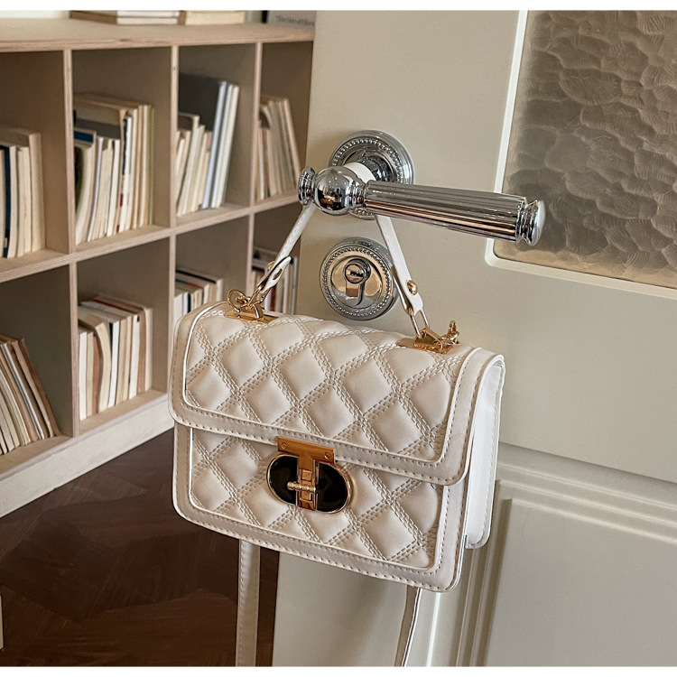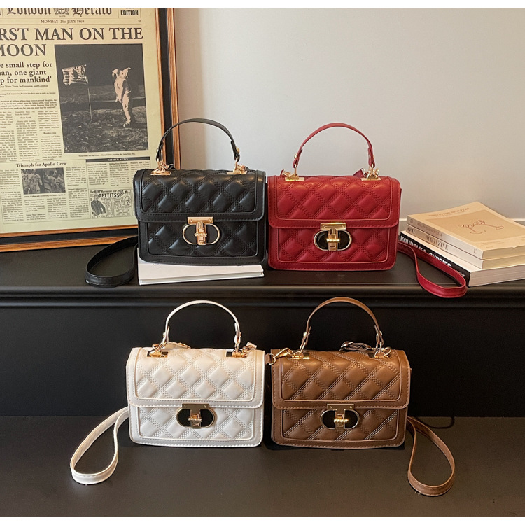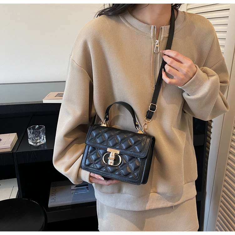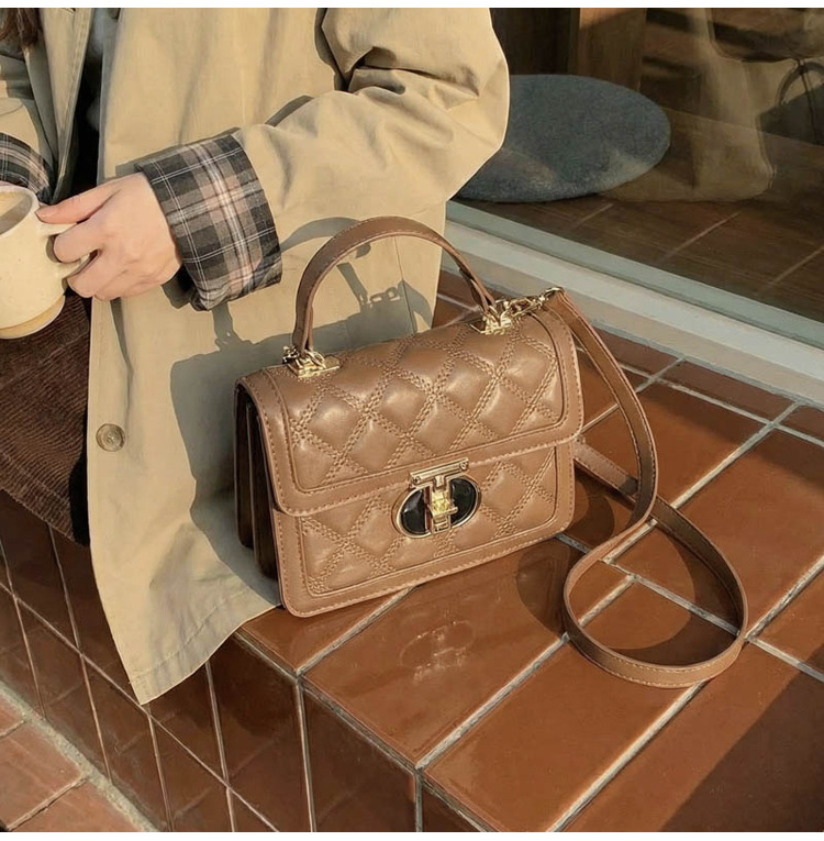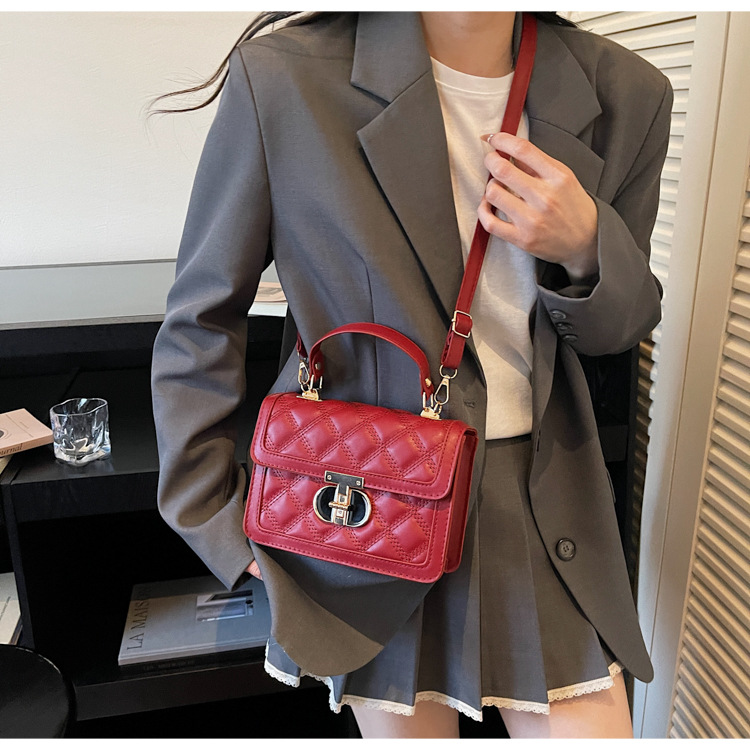 高级简约小包包女2026新款菱格绣线手提包百搭通勤斜挎小方包