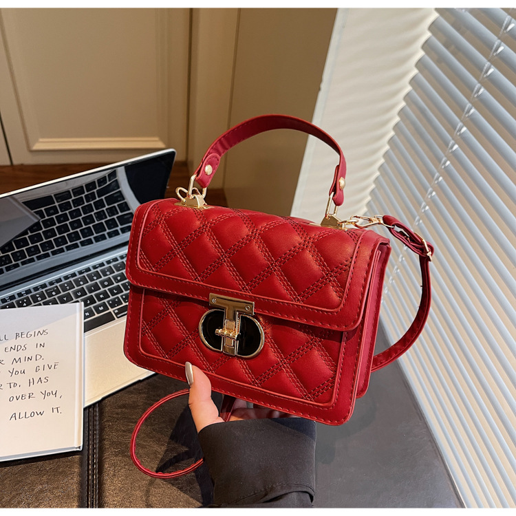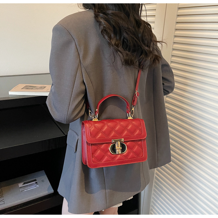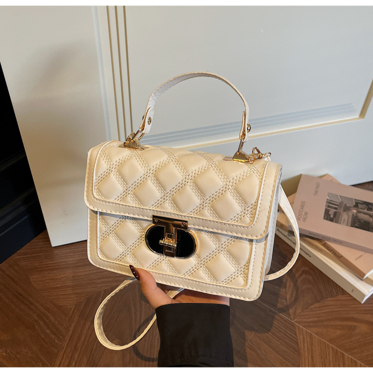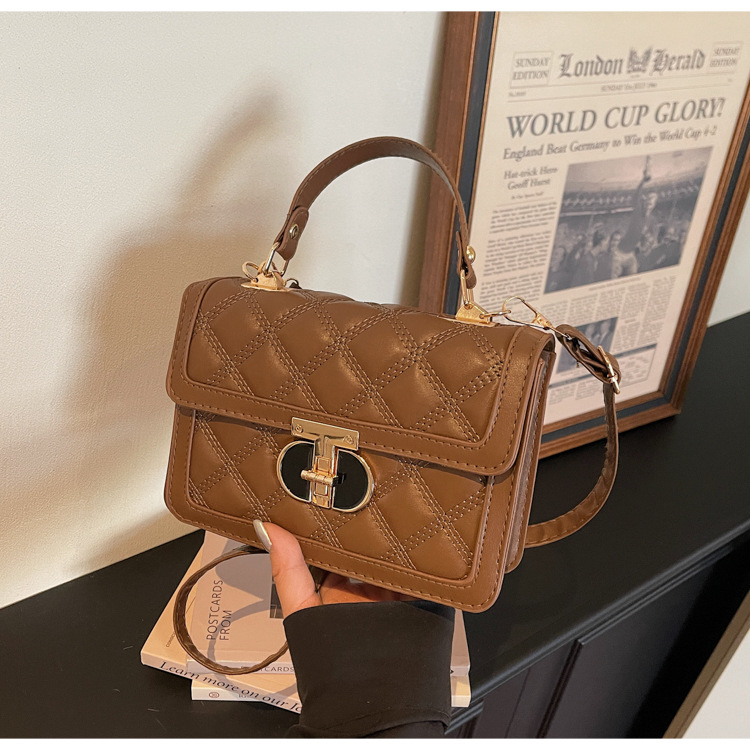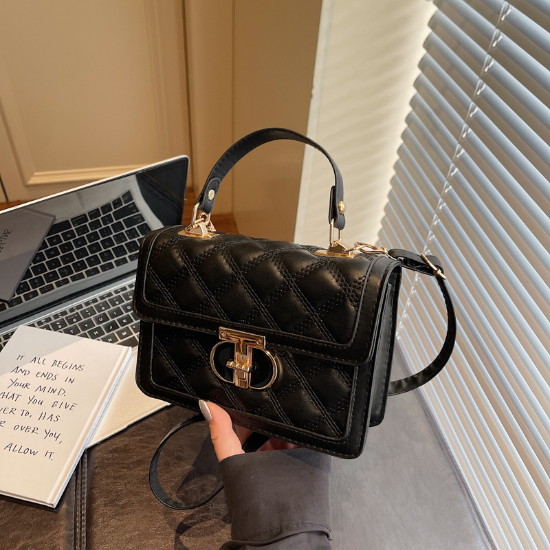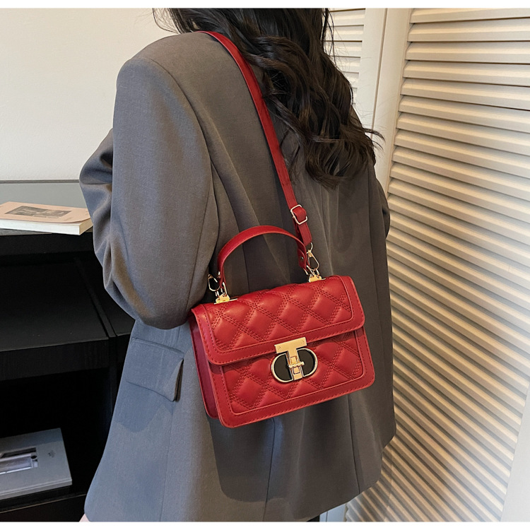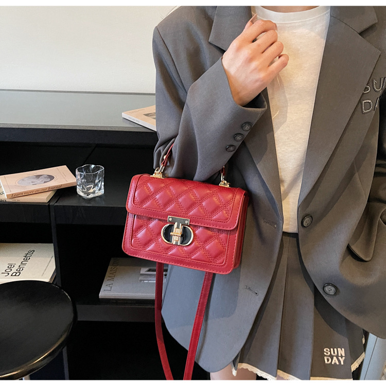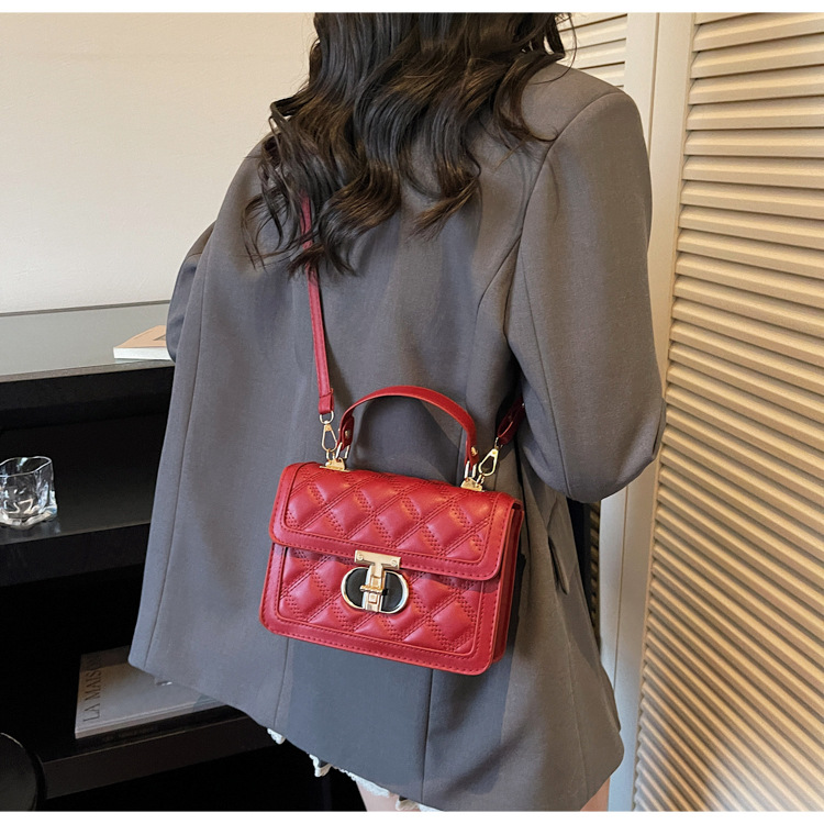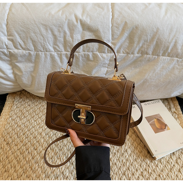 高级简约小包包女2026新款菱格绣线手提包百搭通勤斜挎小方包