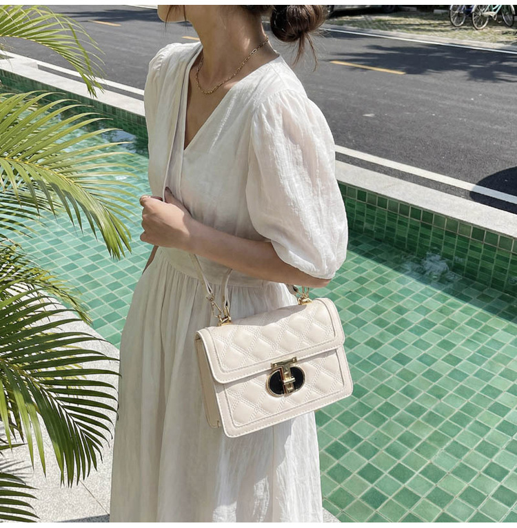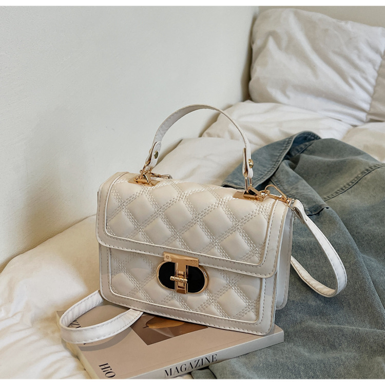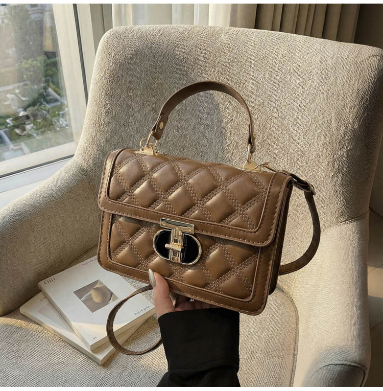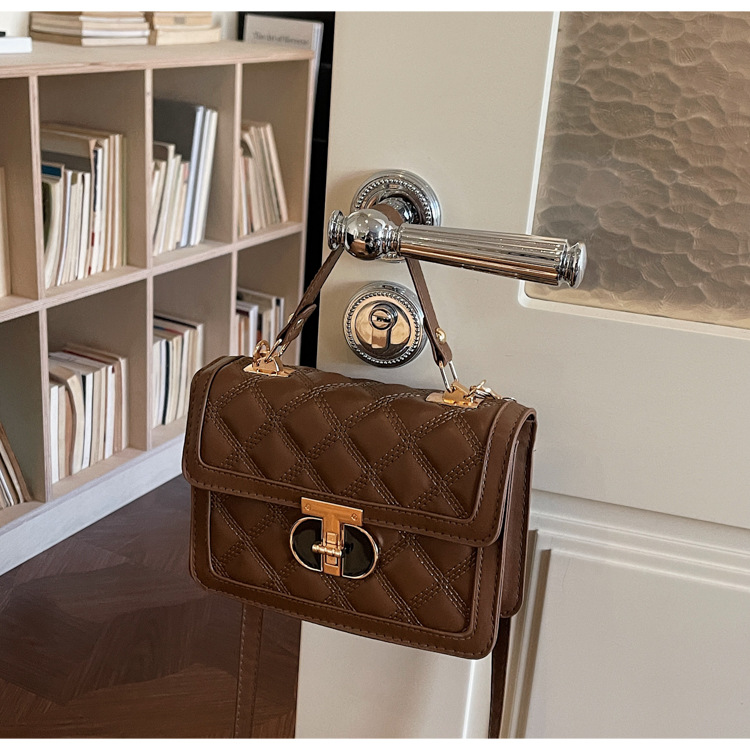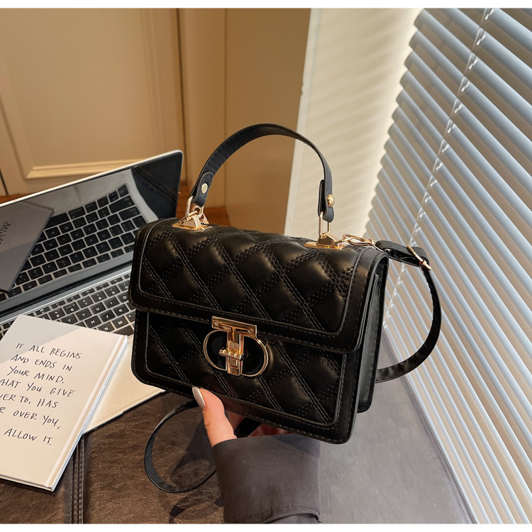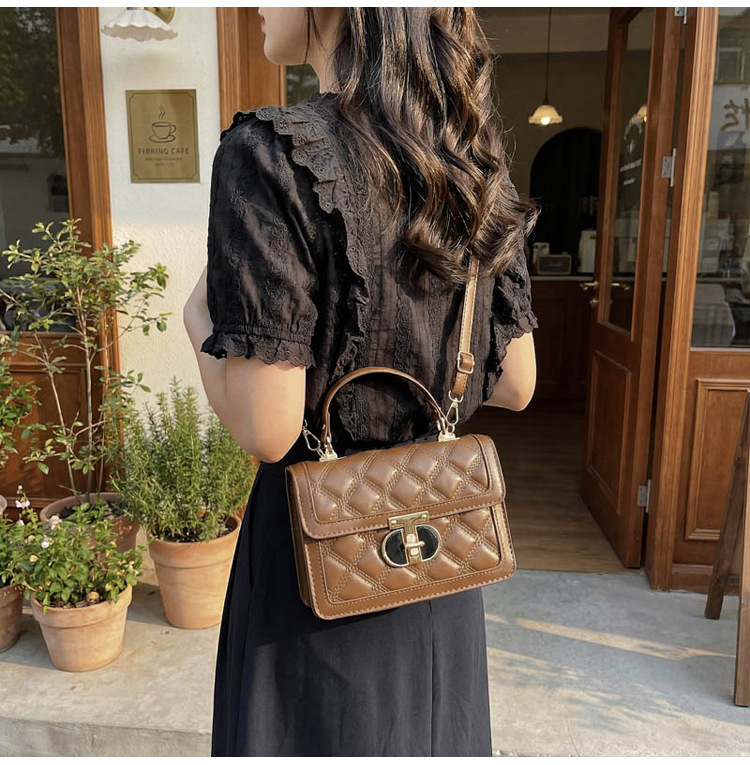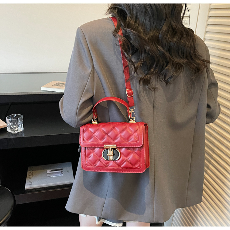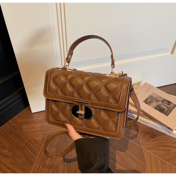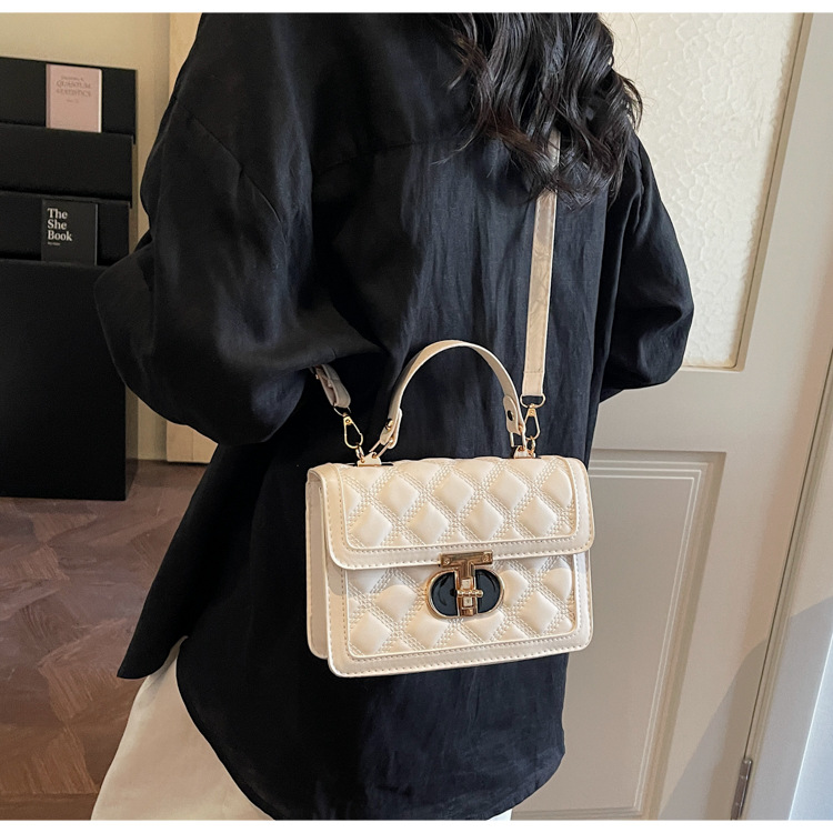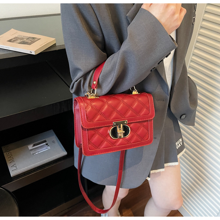 高级简约小包包女2026新款菱格绣线手提包百搭通勤斜挎小方包