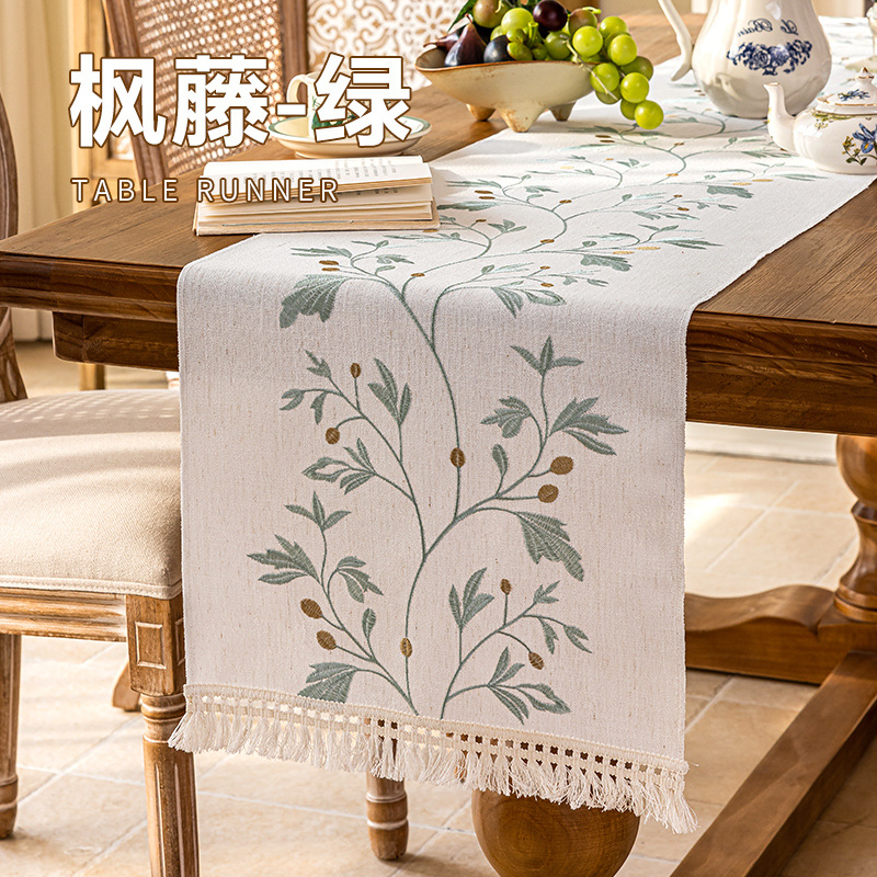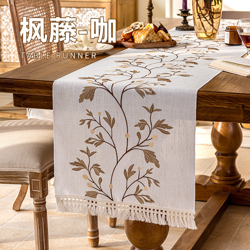 跨境新款绣花桌旗轻奢高级感茶几电视柜五斗柜长条茶桌巾家用代发