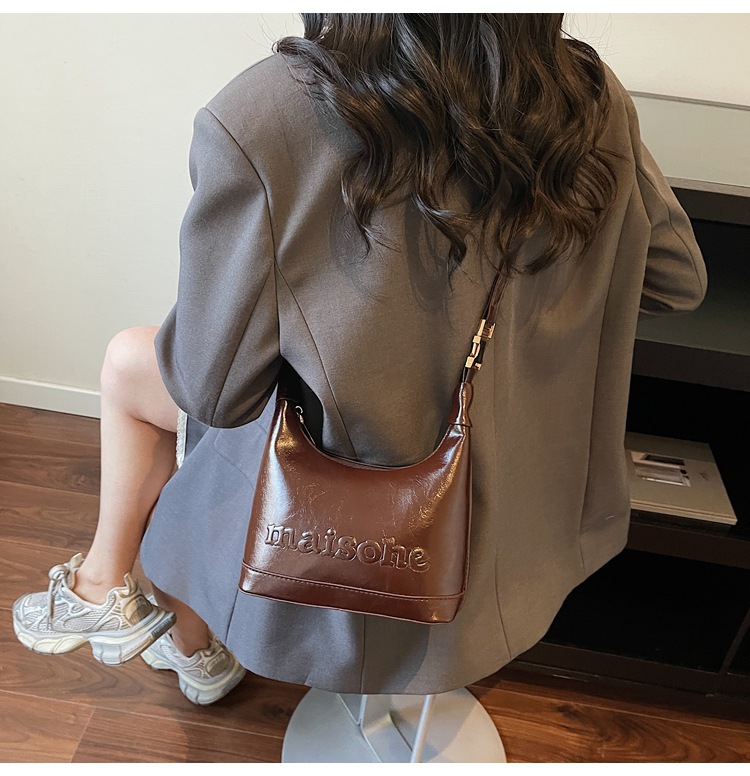 美拉德手提水桶包包女高级感纯色时尚单肩包洋气休闲通勤斜挎女包