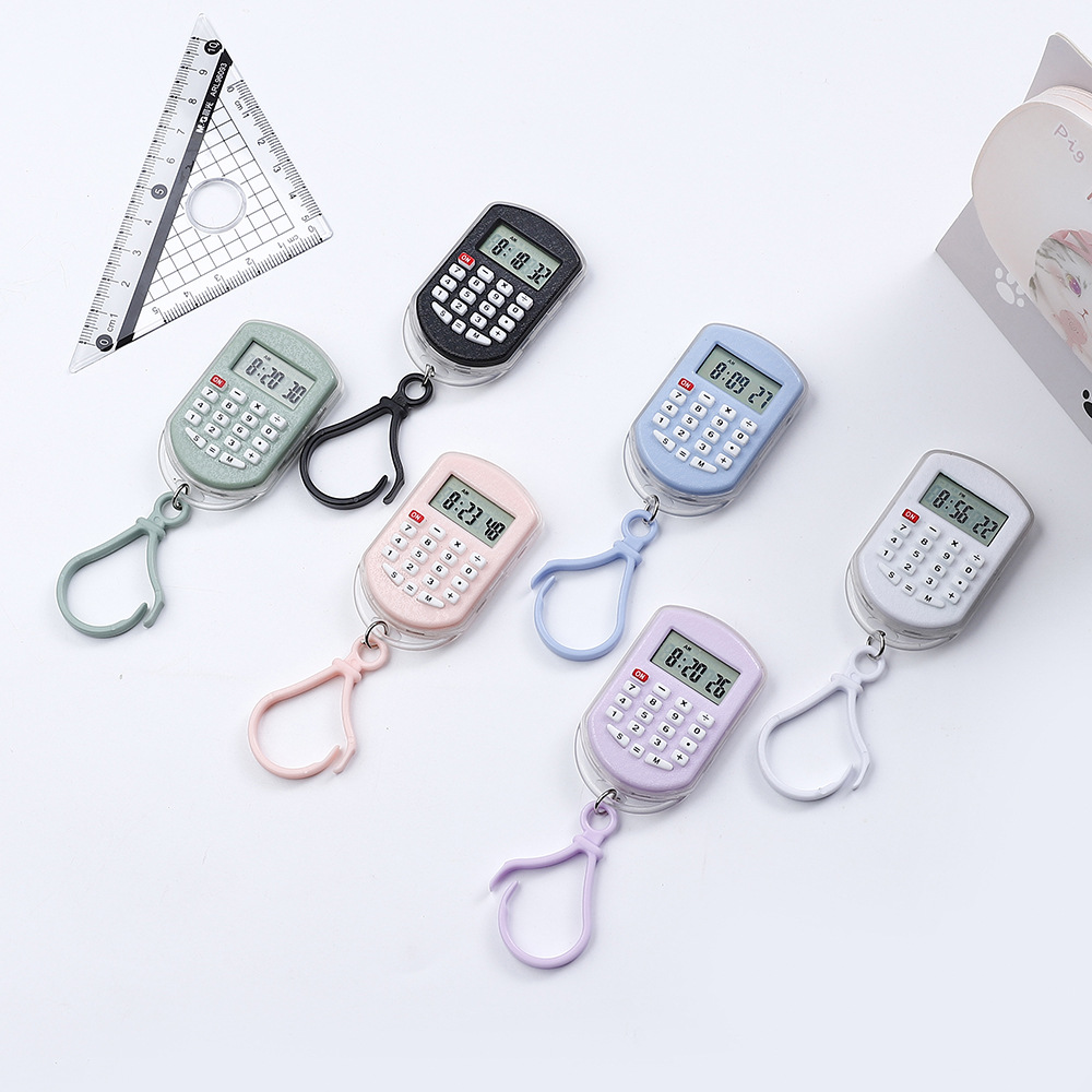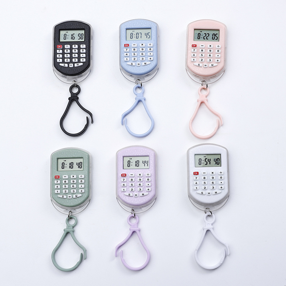 批发小型计算器时尚创意学生儿童掌上看时间便携马卡龙色计算机