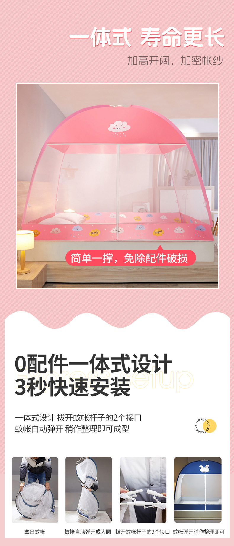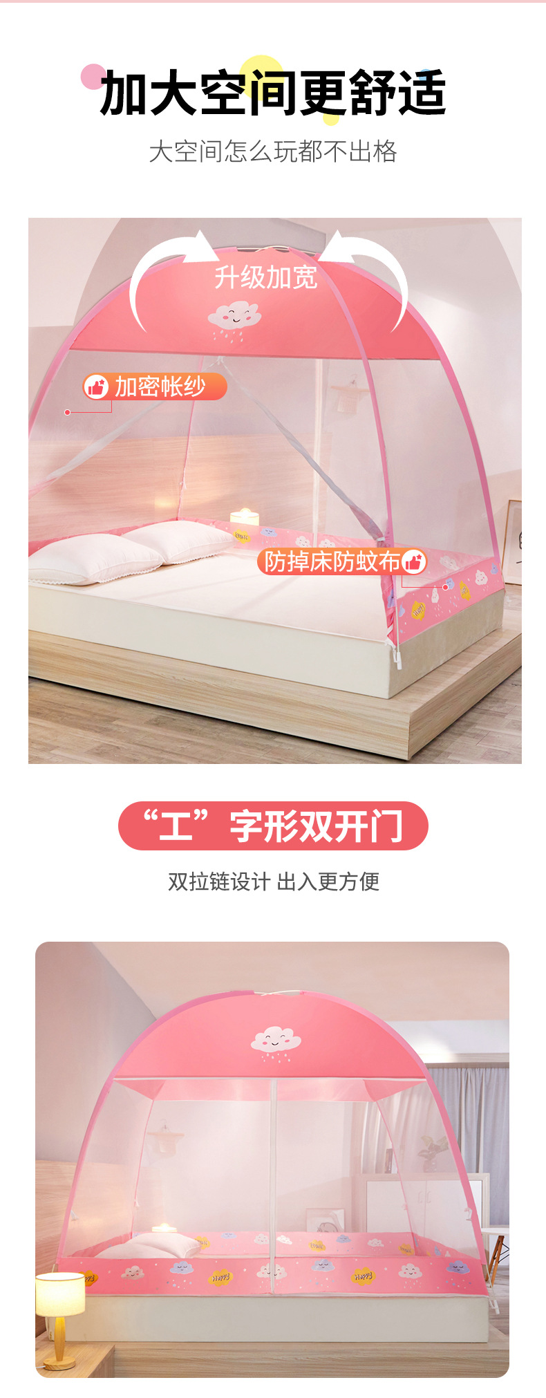 新款蒙古包蚊帐家用免安装蚊帐1米5床1米8床折叠防摔蚊帐2米双人