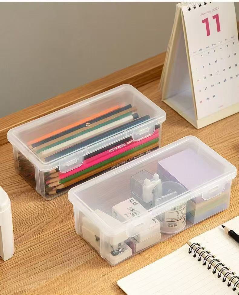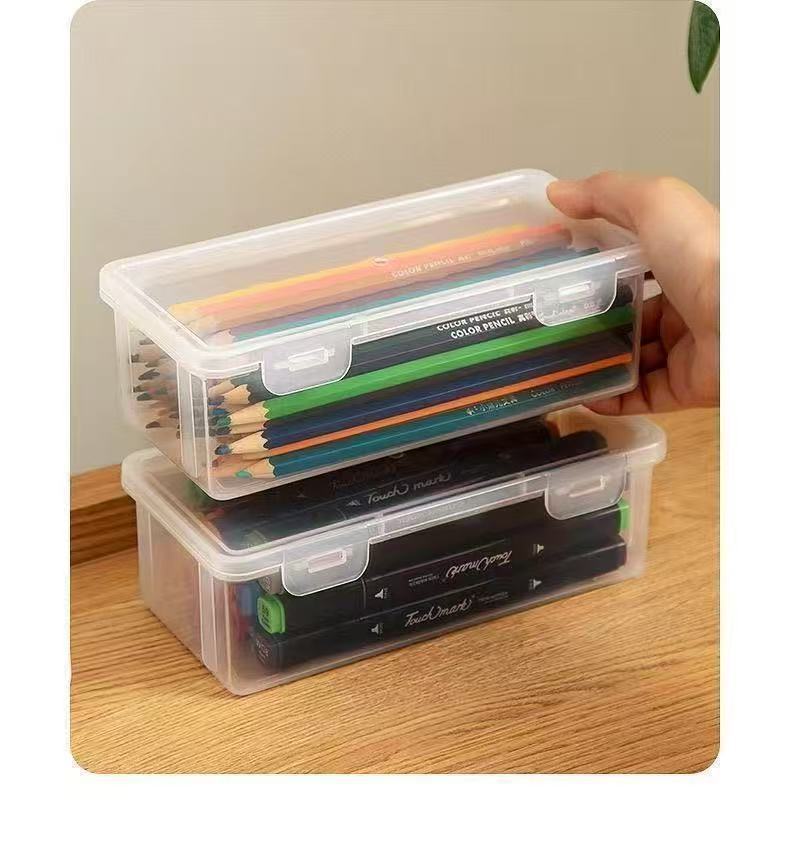 铅笔收纳盒大容量透明文具盒收纳笔筒装彩铅儿童蜡笔绘桌面收纳盒