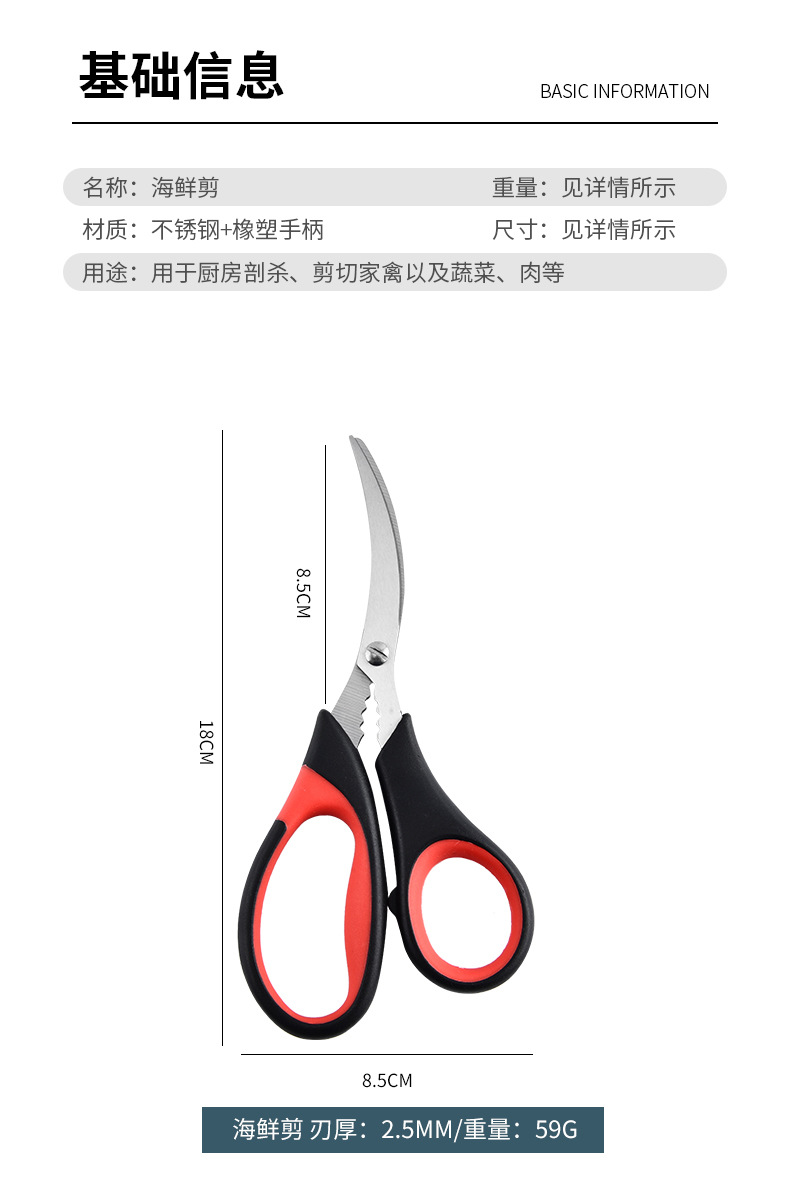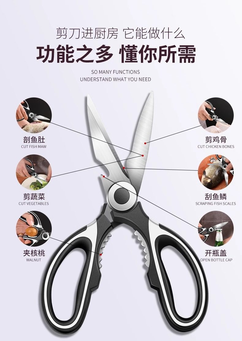 锋利家用剪刀三件套 多功能食品级剪烤肉剪食物不锈钢厨房剪刀