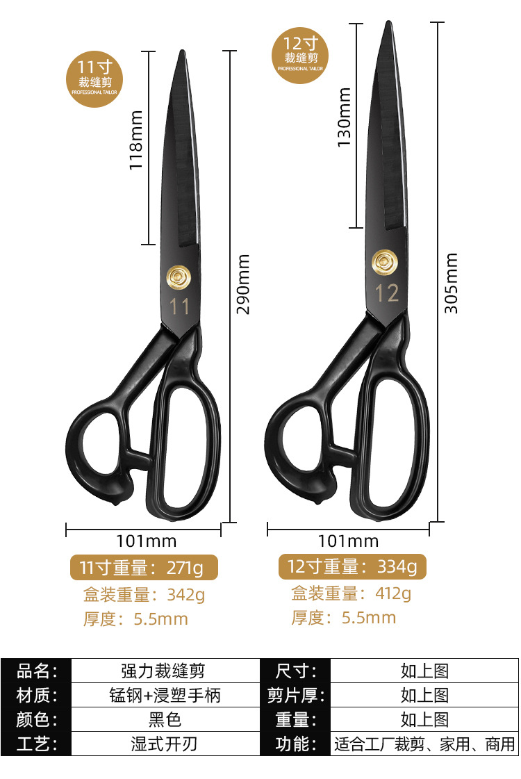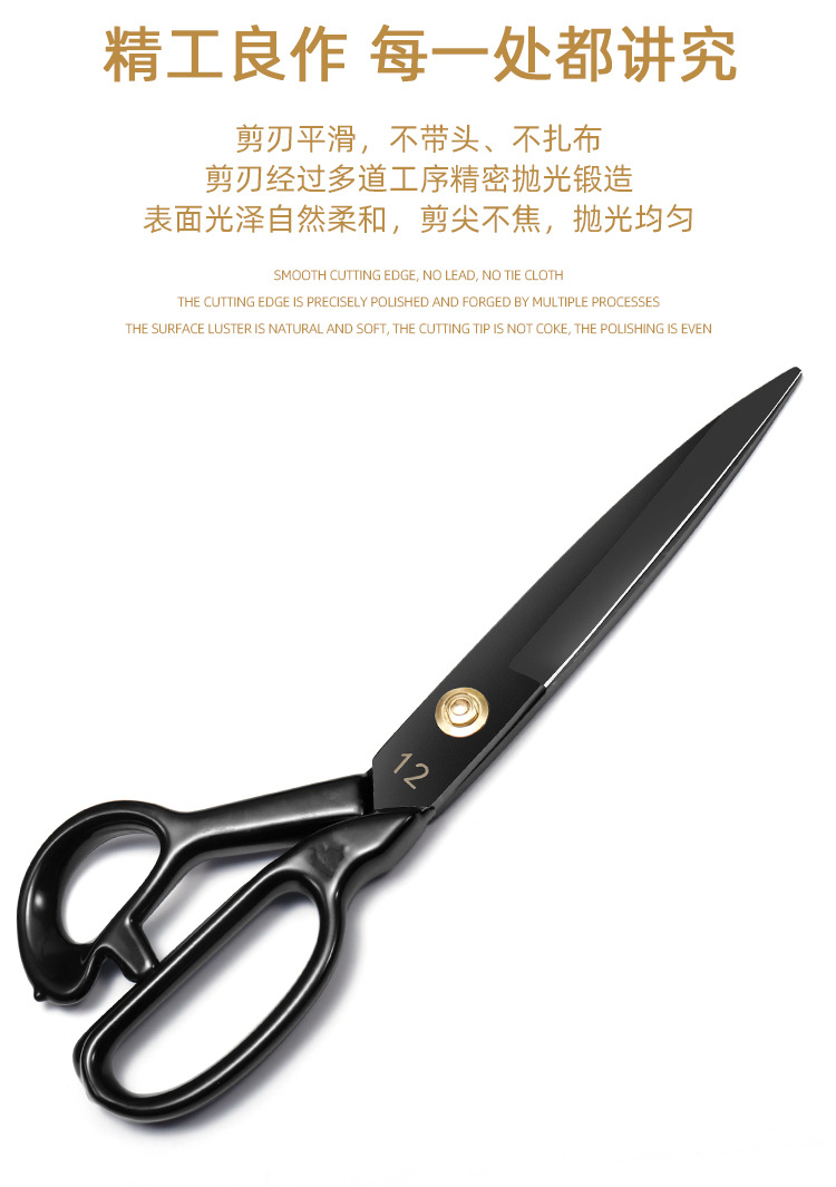 厂家现货多尺寸发黑裁缝剪刀不锈钢钢材质布料剪刀 裁缝剪批发