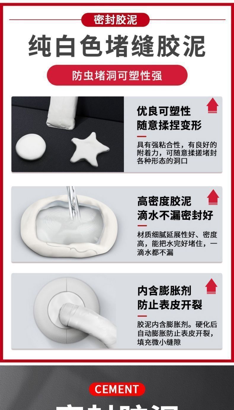 空调孔密封胶泥填缝堵洞防虫防水耐高温家用下水道填充修补堵墙泥