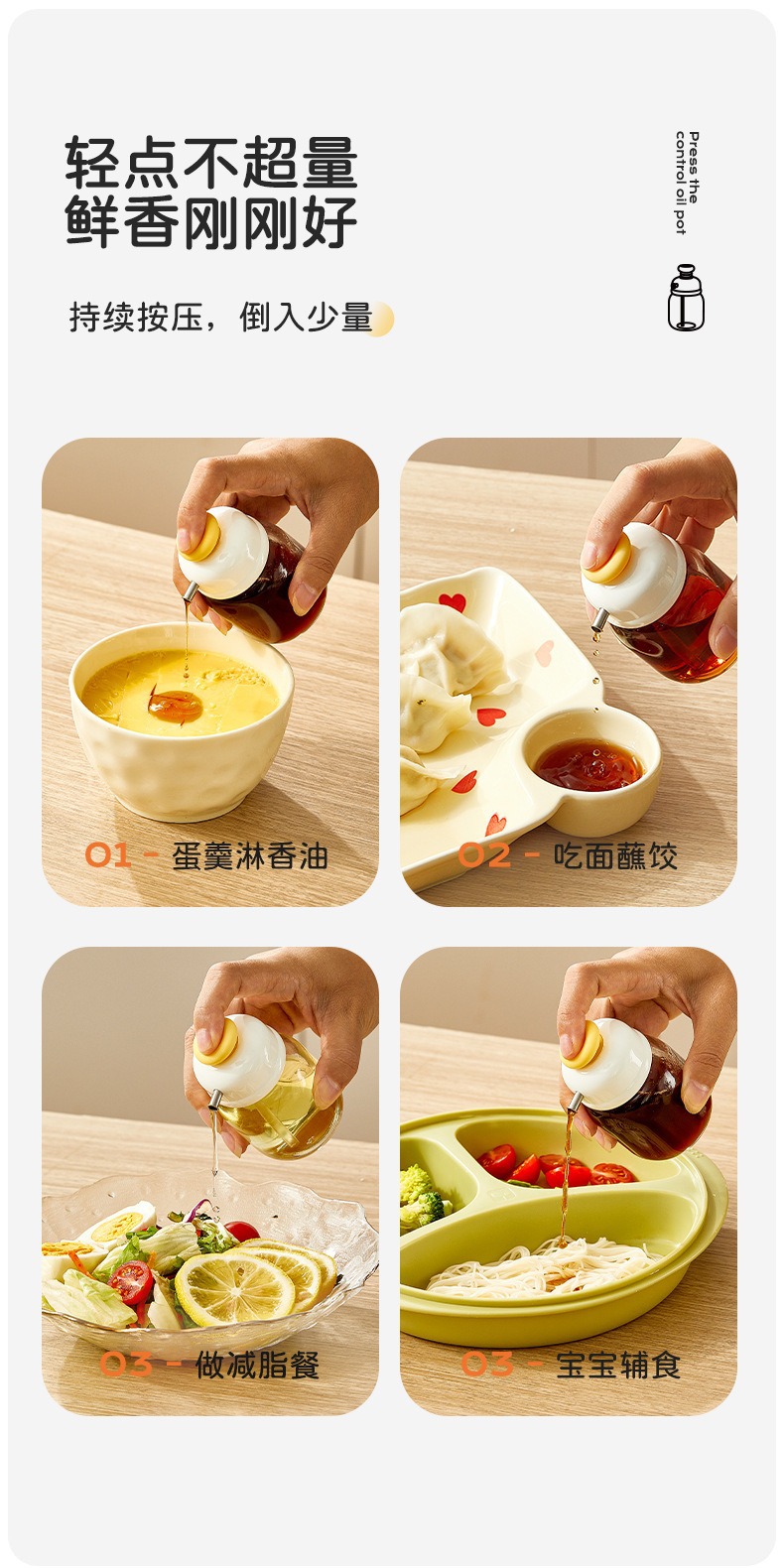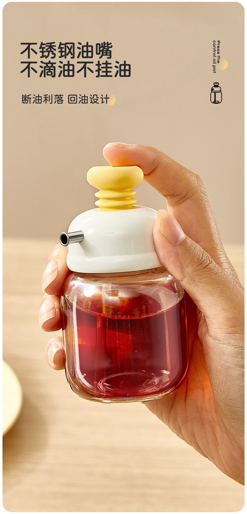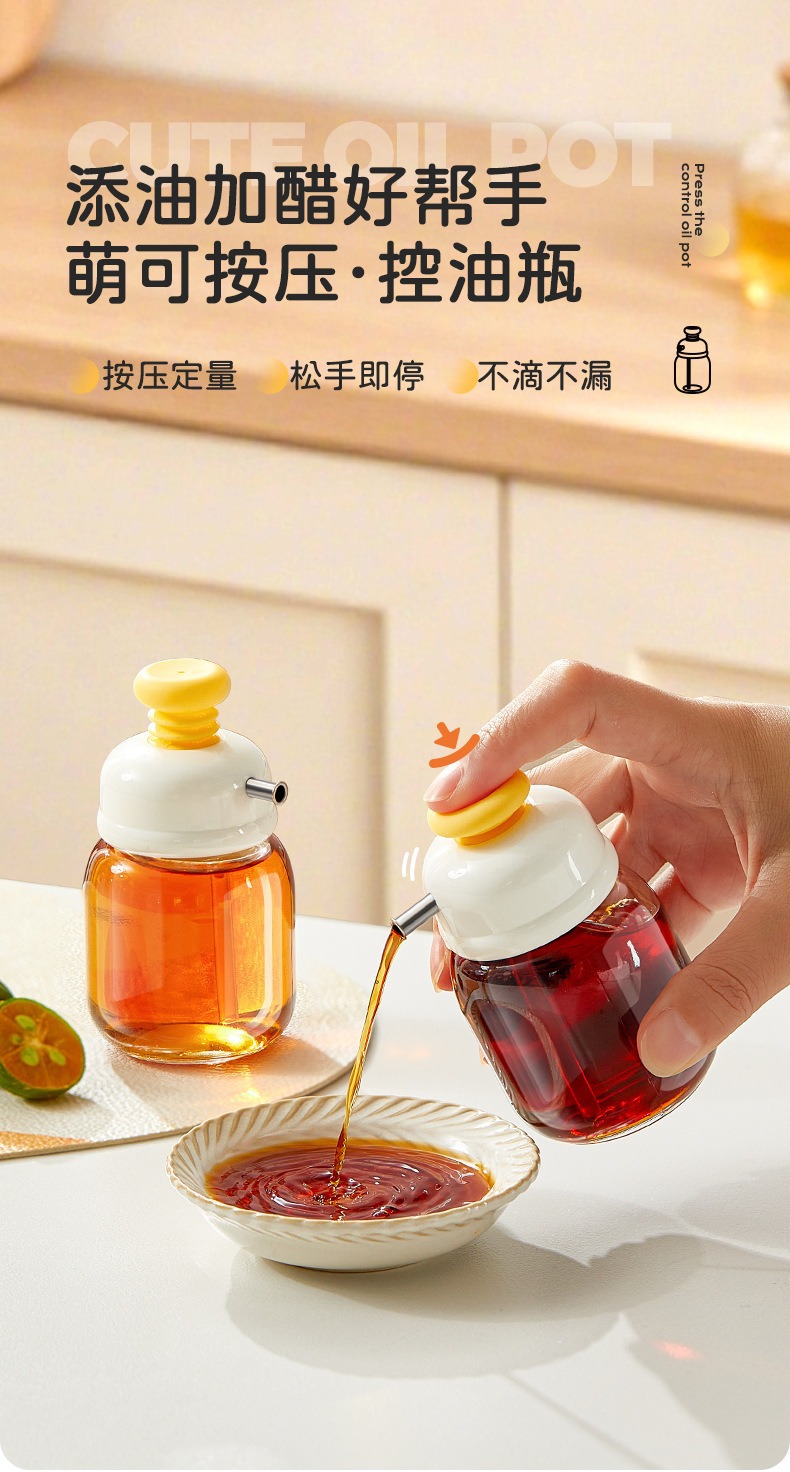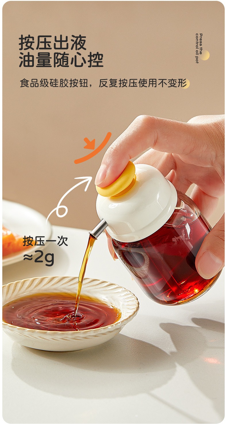 按压定量控油壶香油醋分装调料瓶玻璃小油瓶不挂油饺子醋壶餐厅