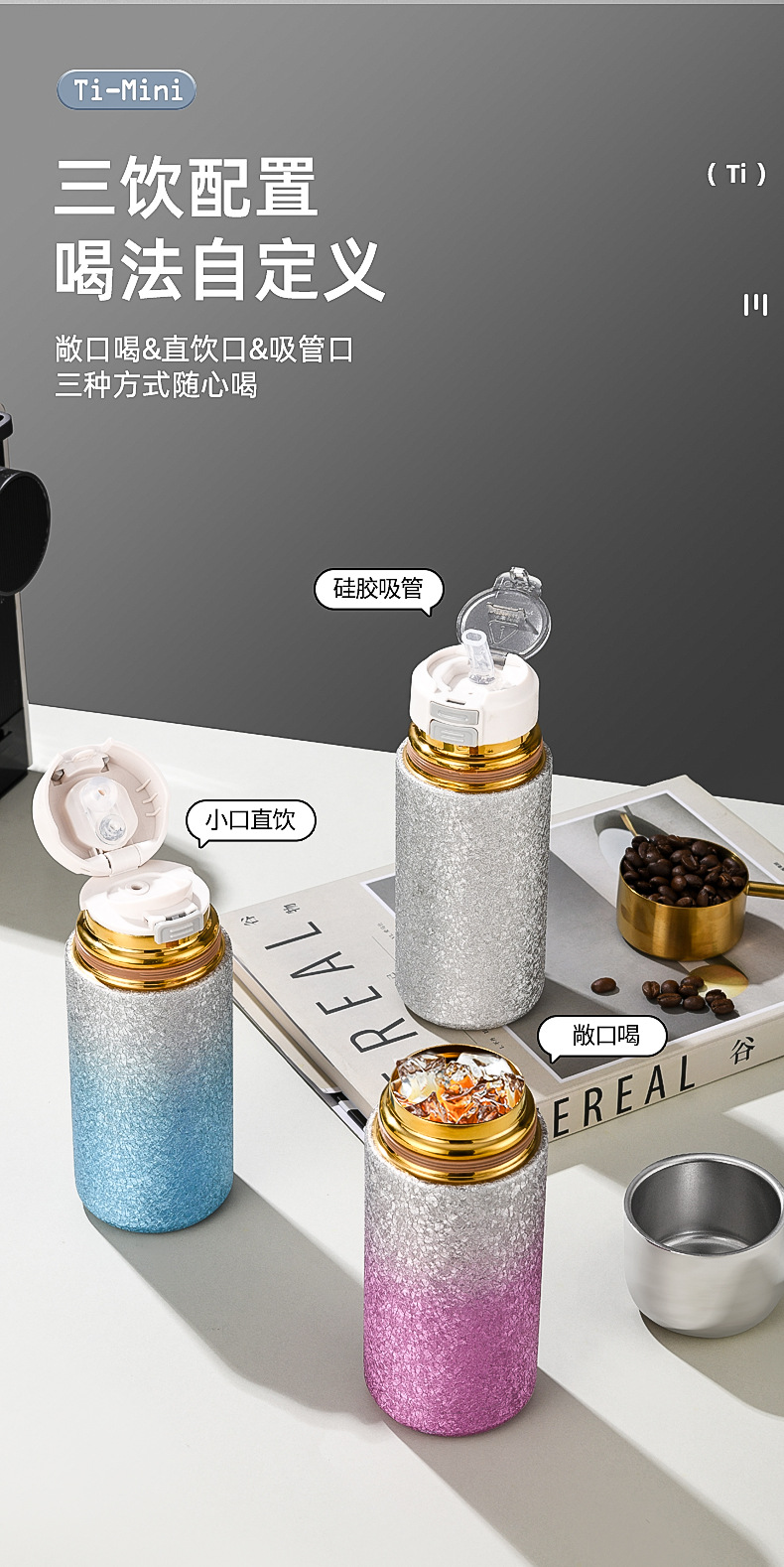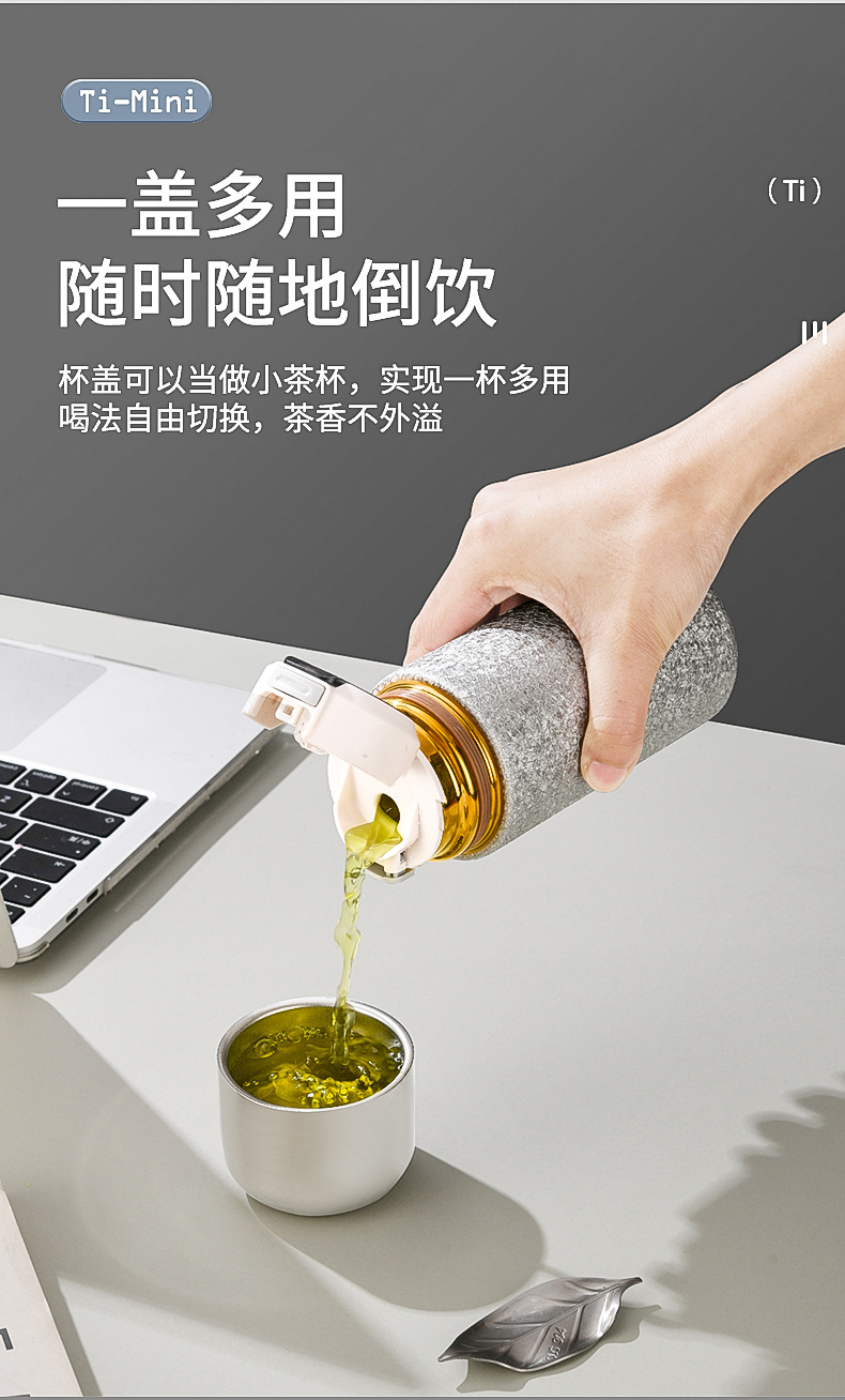 覆钛渐变胶囊口袋杯焖茶一杯三饮茶水分离水杯迷你便携户外保温杯