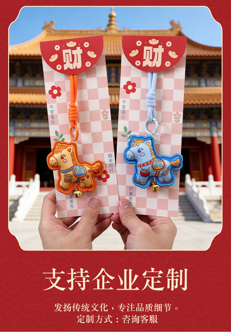 新款马年香囊挂件钥匙扣 过年刺绣小马福袋 马年文创礼品香包福袋
