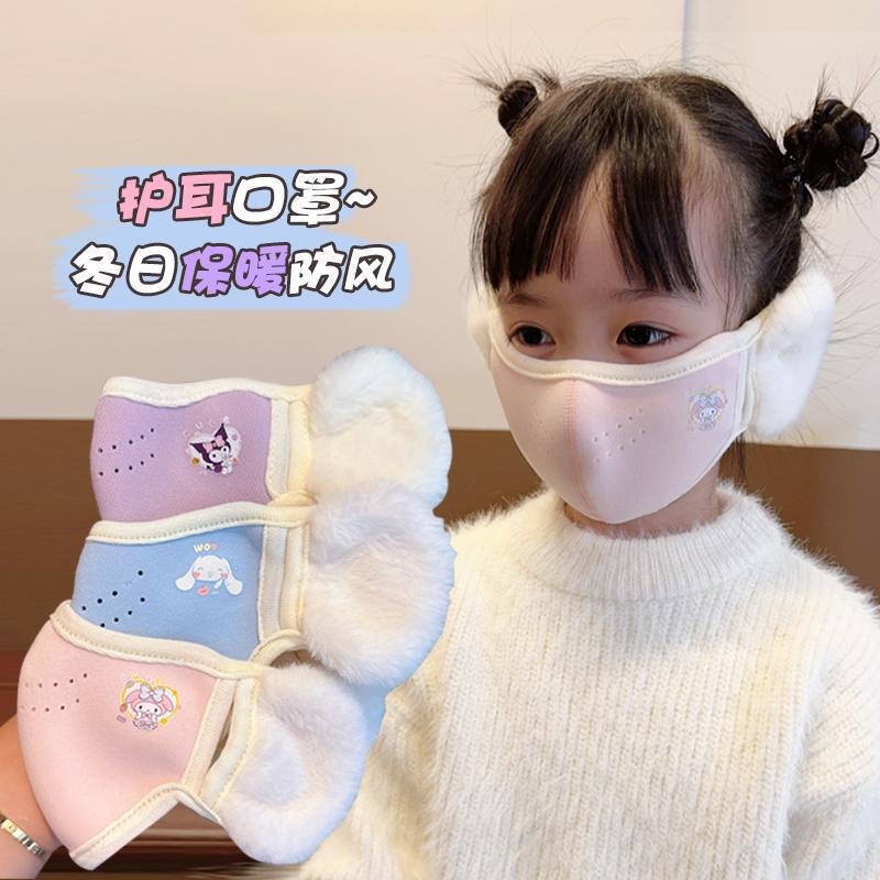 卡通儿童保暖口罩护耳一体冬季毛绒男女儿童防尘防冻护耳防寒面罩