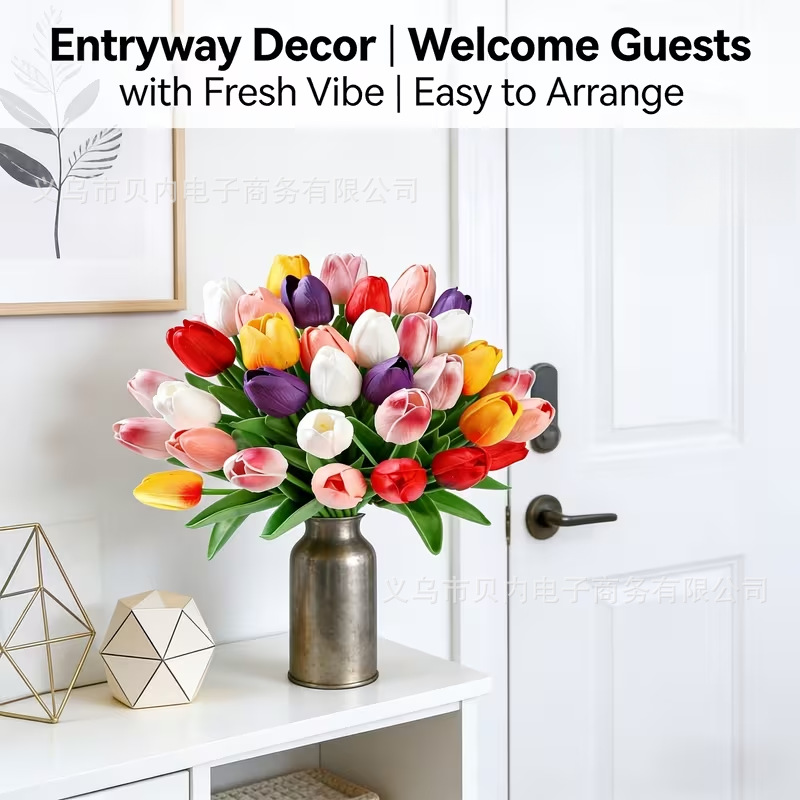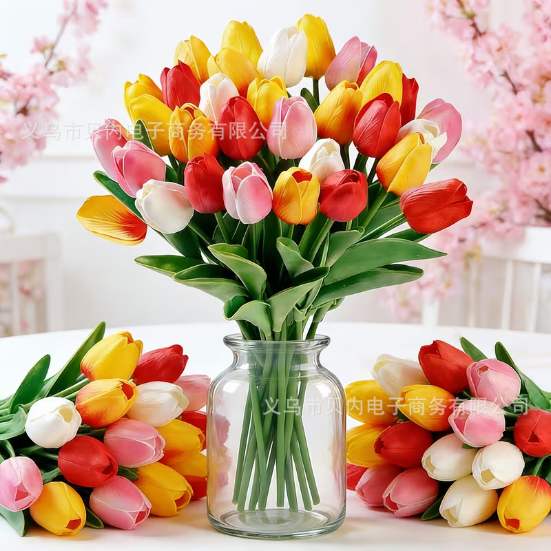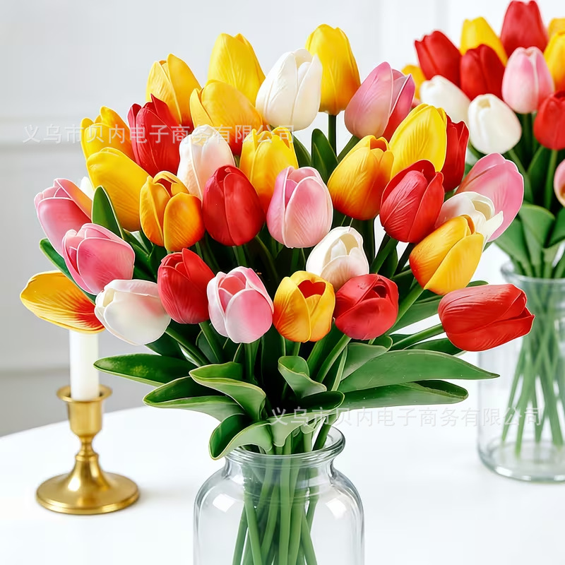 PU迷你郁金香仿真花手捧花跨境假花家居装饰拍照欧式摆件工厂直销