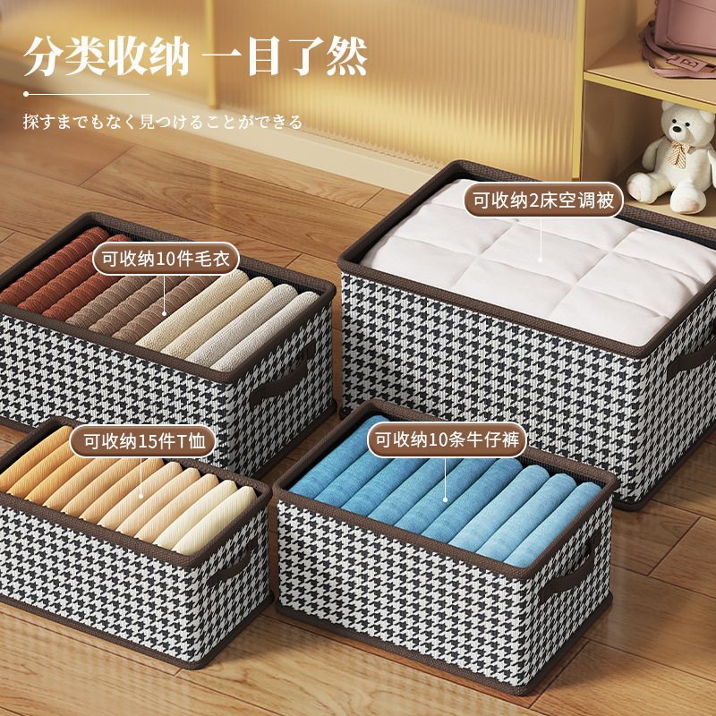千鸟格隔层衣物裤子多功能收纳盒抽屉式宿舍整理玩具衣服收纳筐